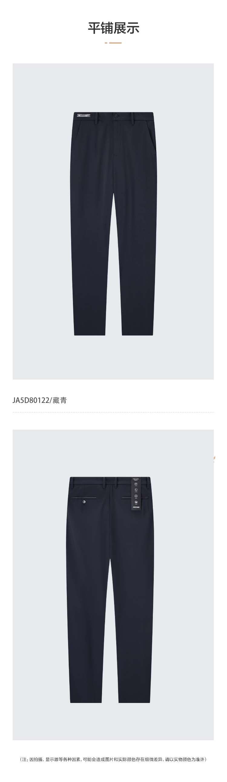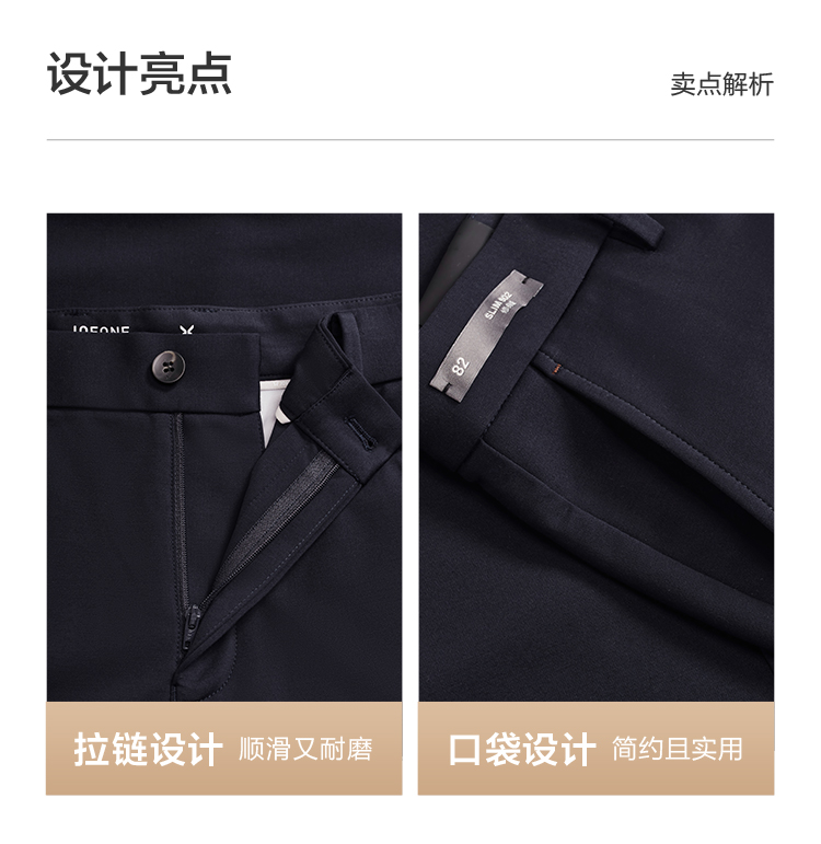九牧王 旅途疗愈 春夏修身版无褶藏青罗马针织休闲裤JA5D80122
