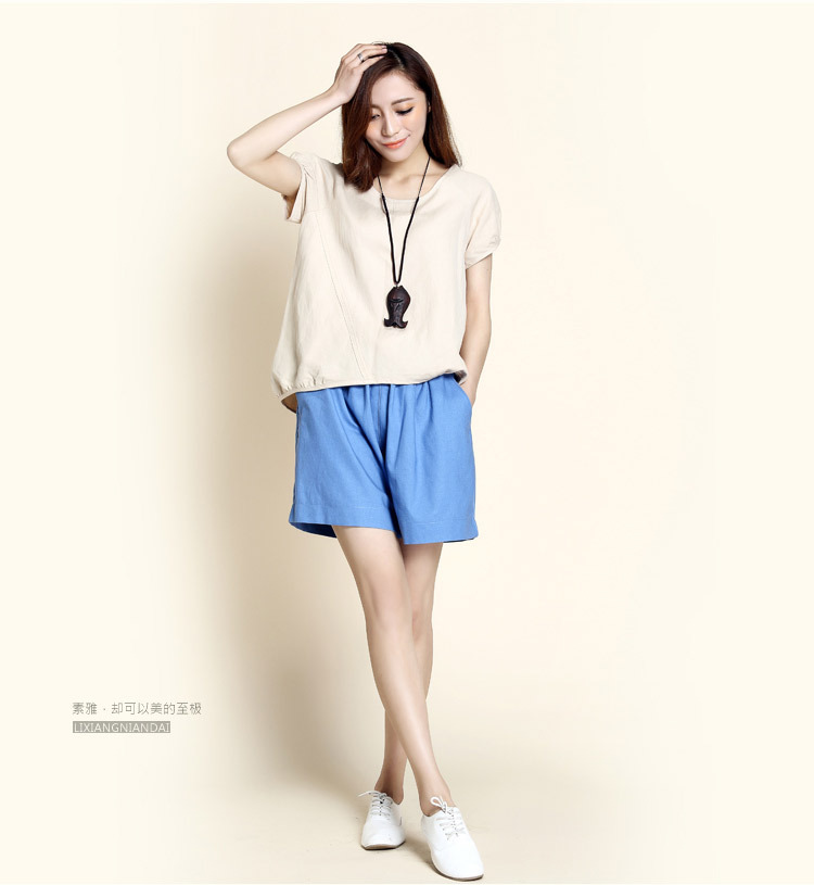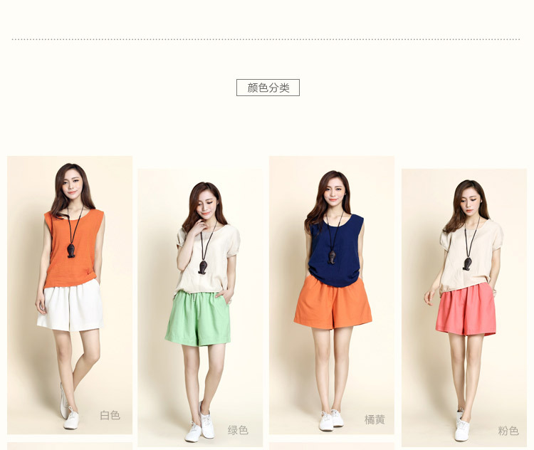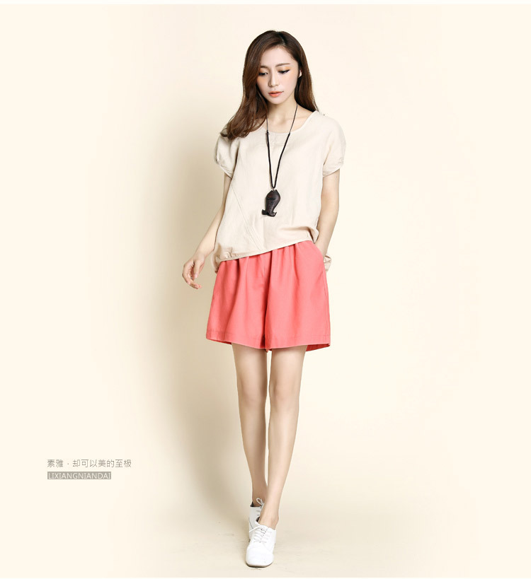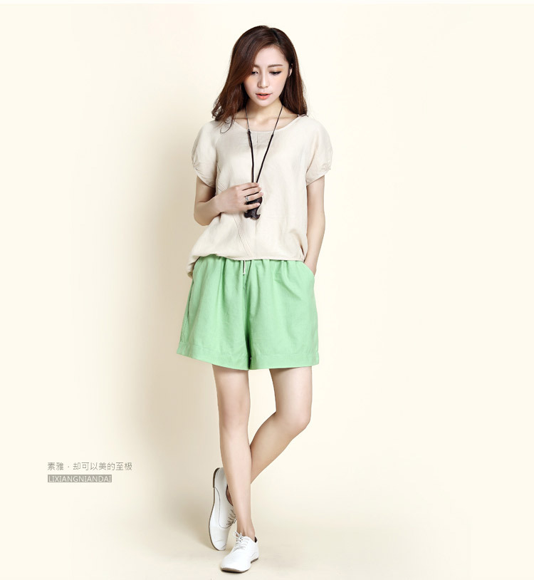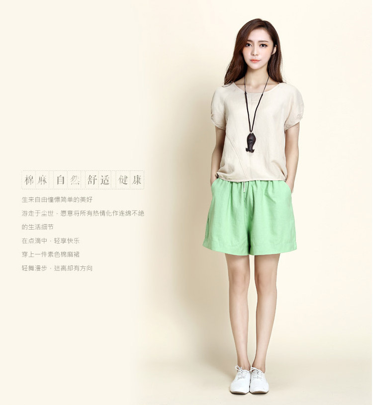 百媚生 【2条】】棉麻松紧腰女士三分短裤春夏阔腿亚麻短裤