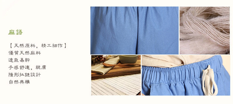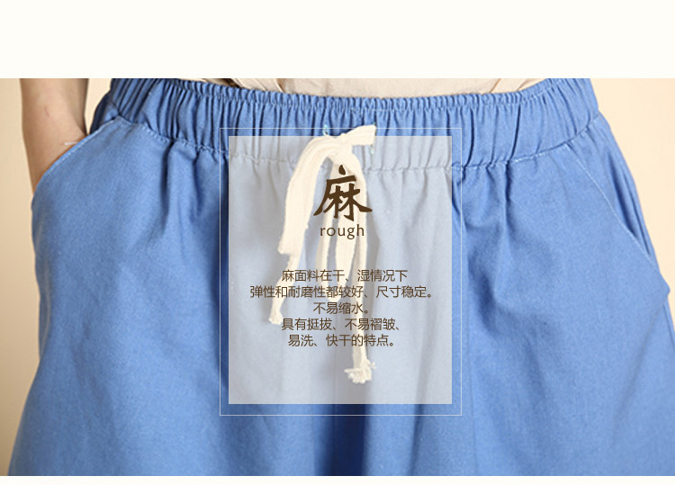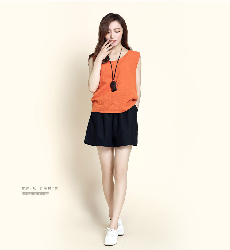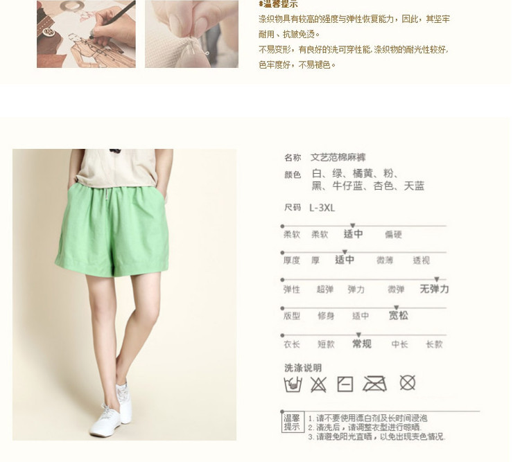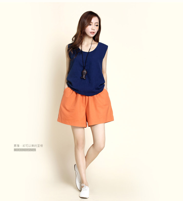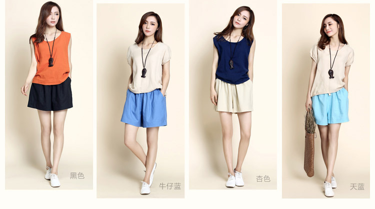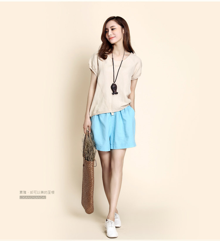 百媚生 【2条】】棉麻松紧腰女士三分短裤春夏阔腿亚麻短裤