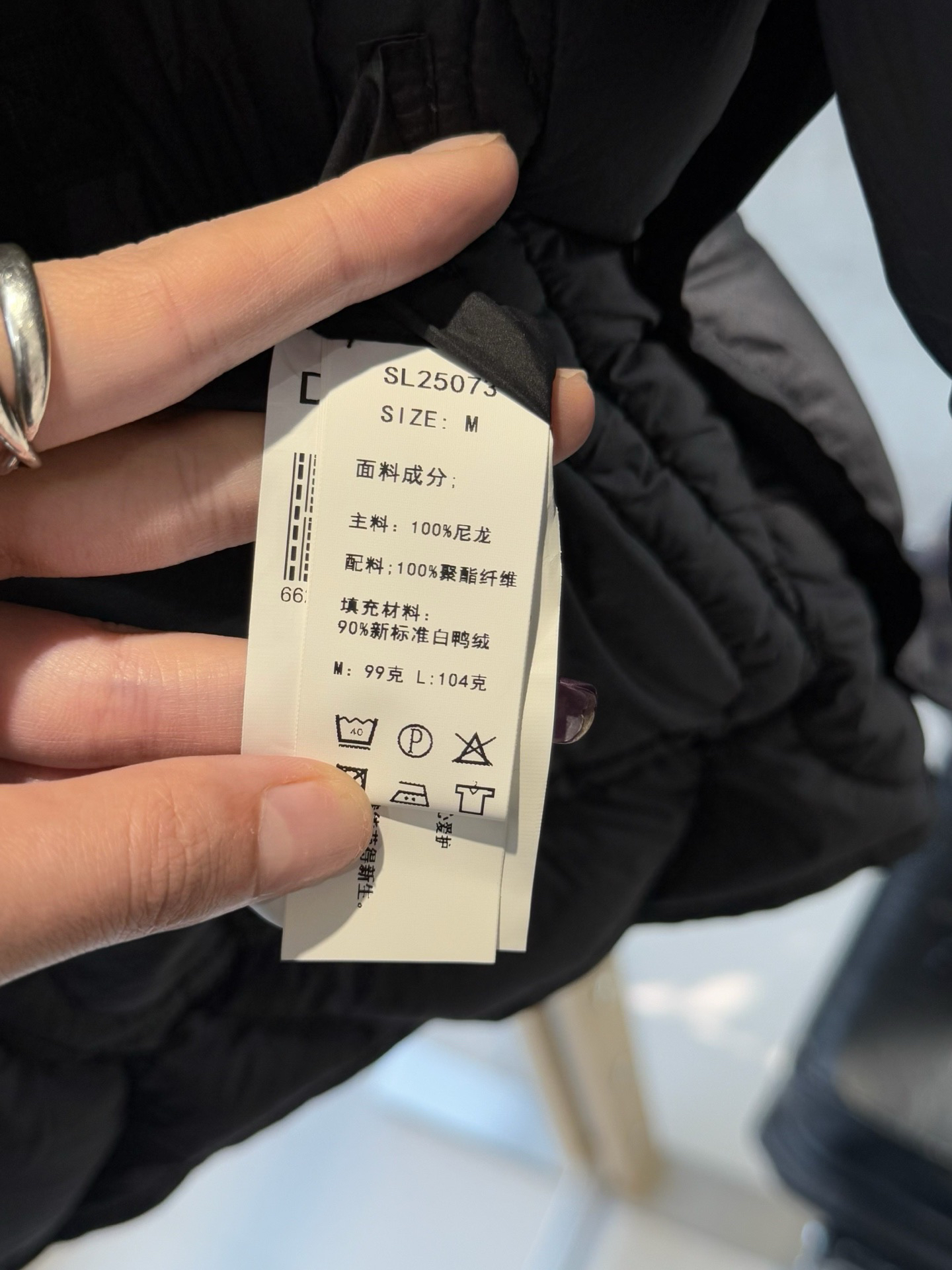 吊牌洗标都齐全!每一件羽绒服都带有溯源码哦⚠️