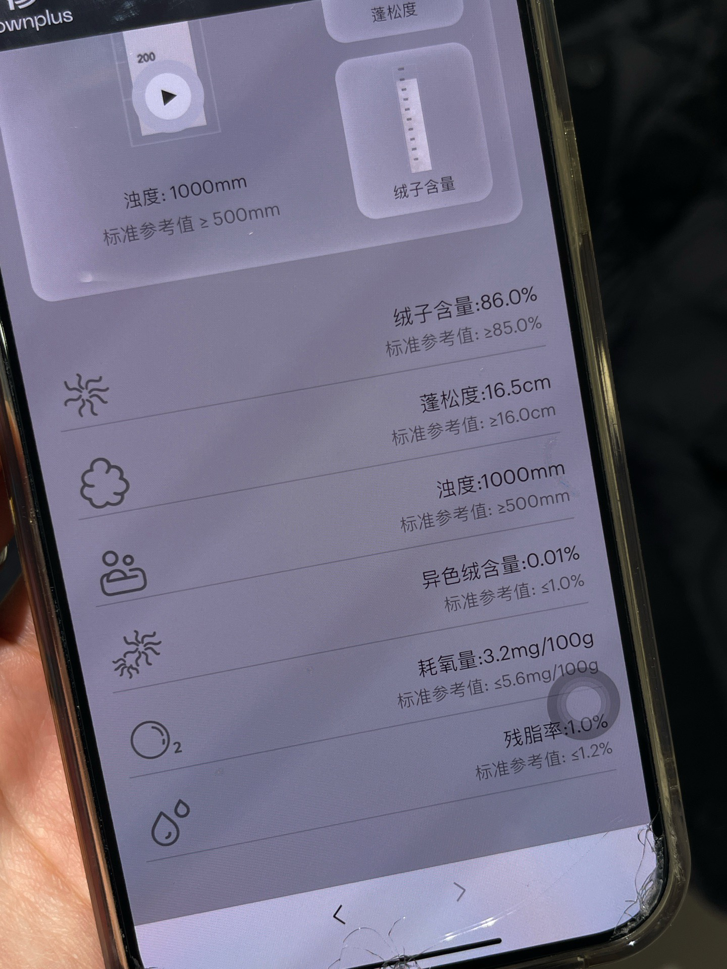 扫描以后都能出来界面!能看到绒子含量、蓬松度、异色绒含量等!