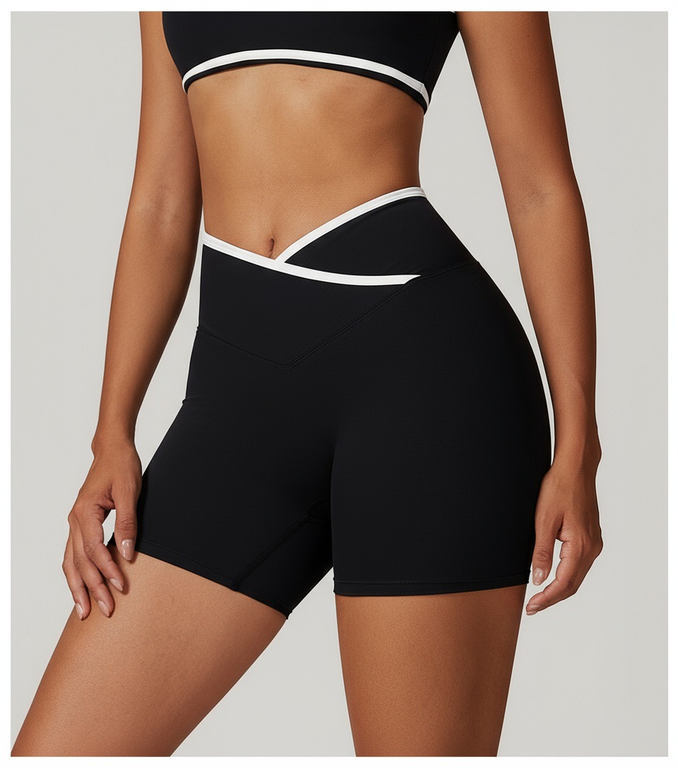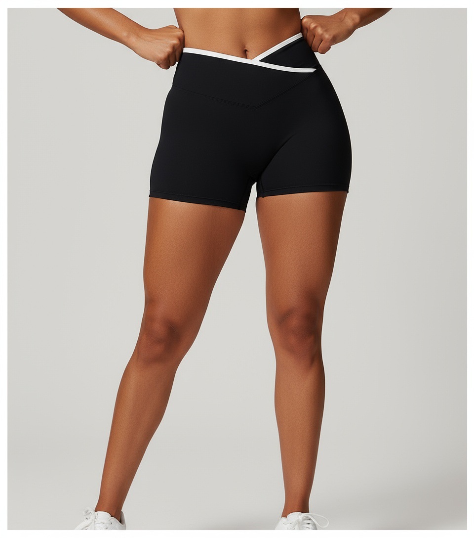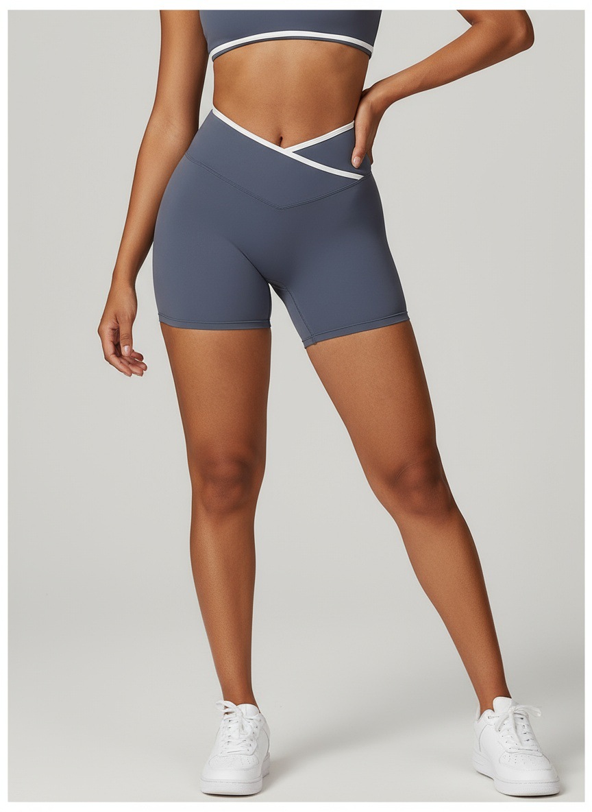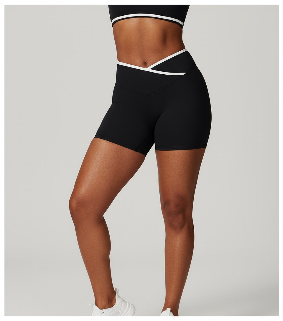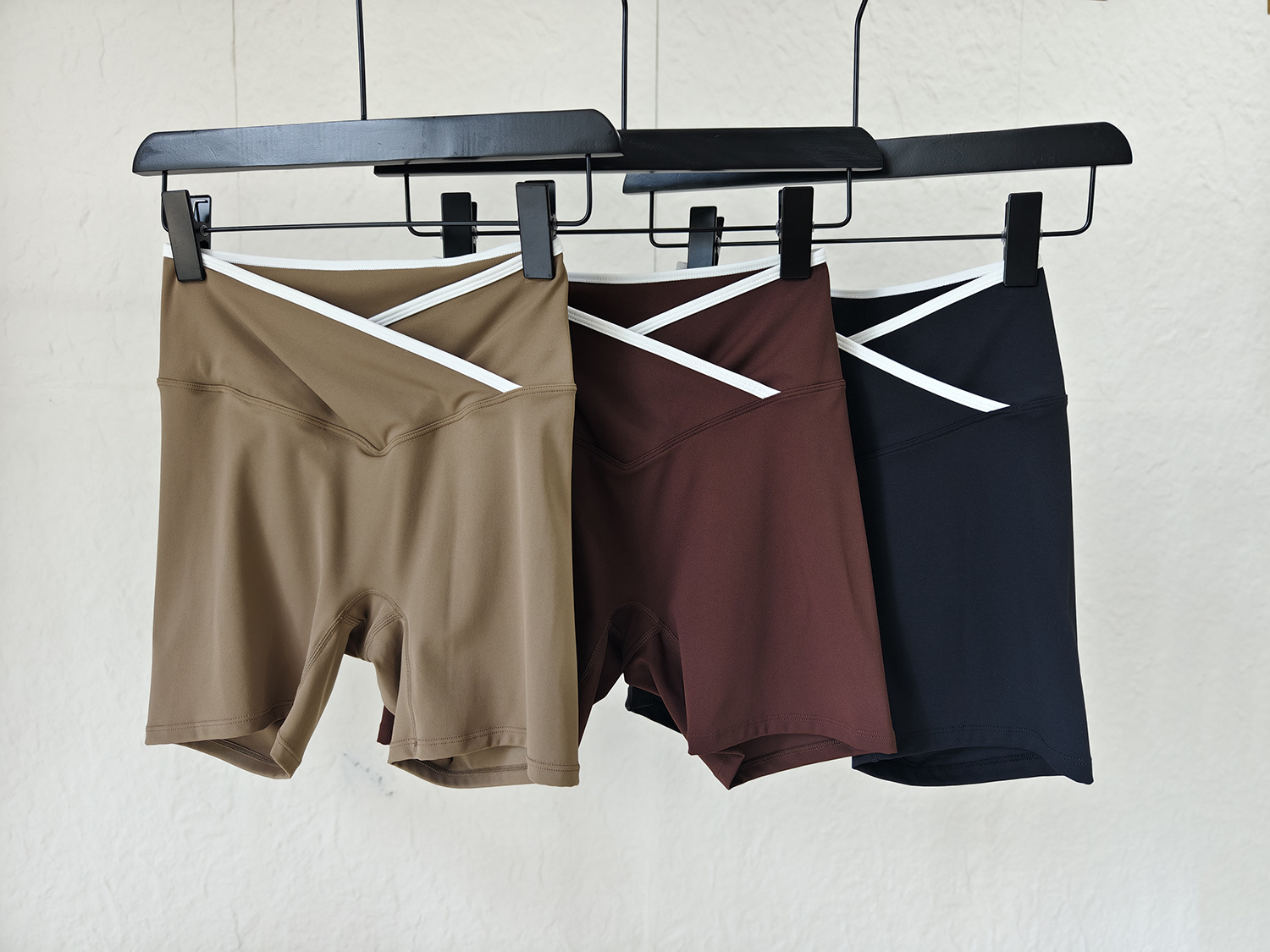 跃牌【安琪拉系列】交叉高腰瑜伽短裤紧身裸感蜜桃提臀运动短裤女三分健身裤DK3501