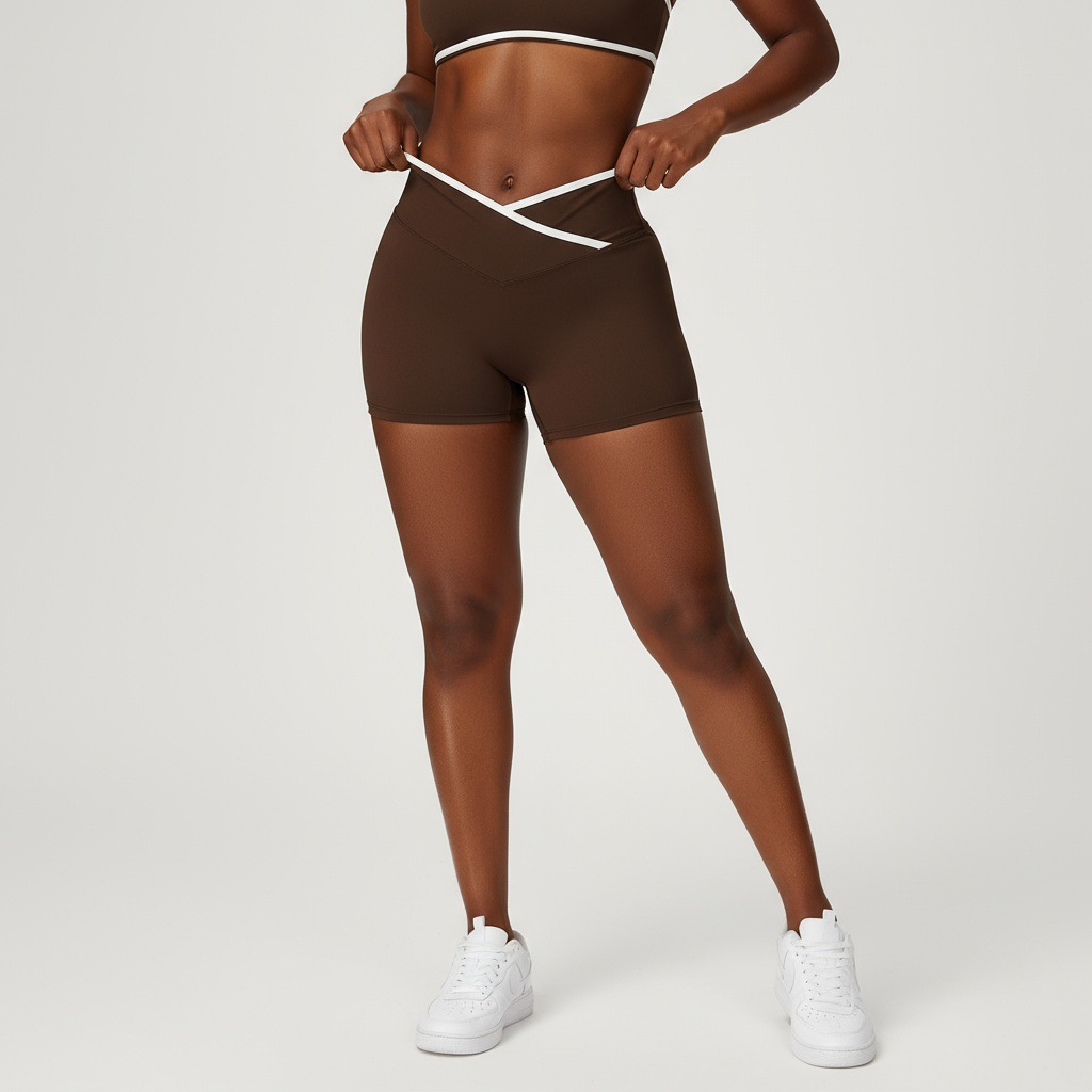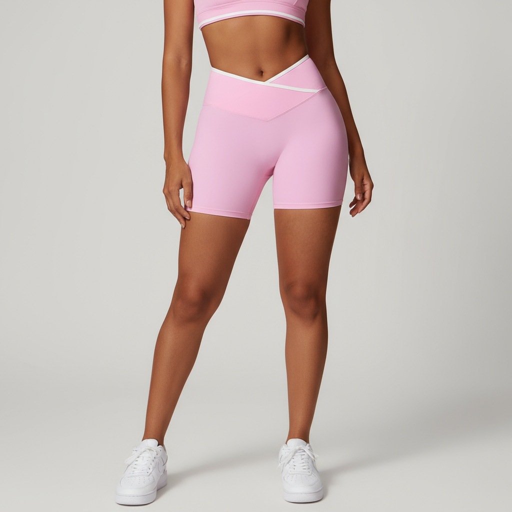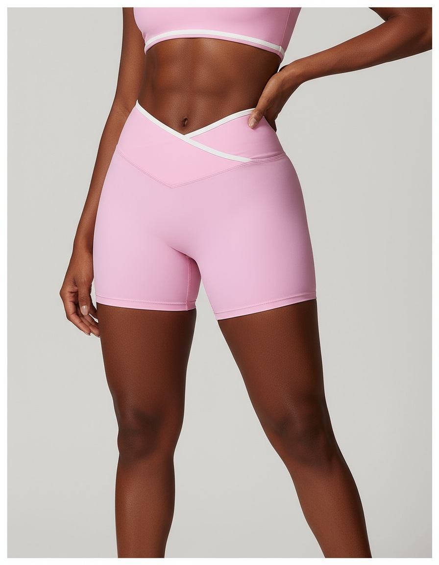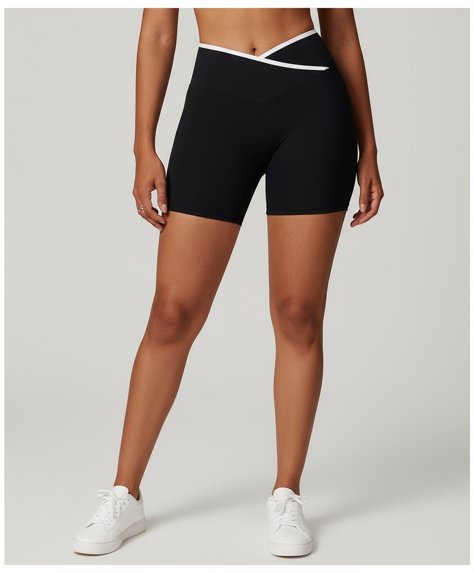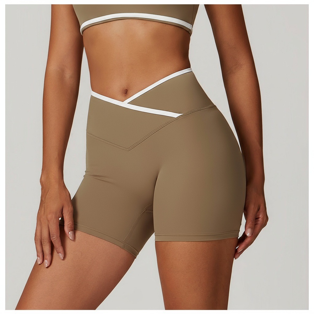 跃牌【安琪拉系列】交叉高腰瑜伽短裤紧身裸感蜜桃提臀运动短裤女三分健身裤DK3501