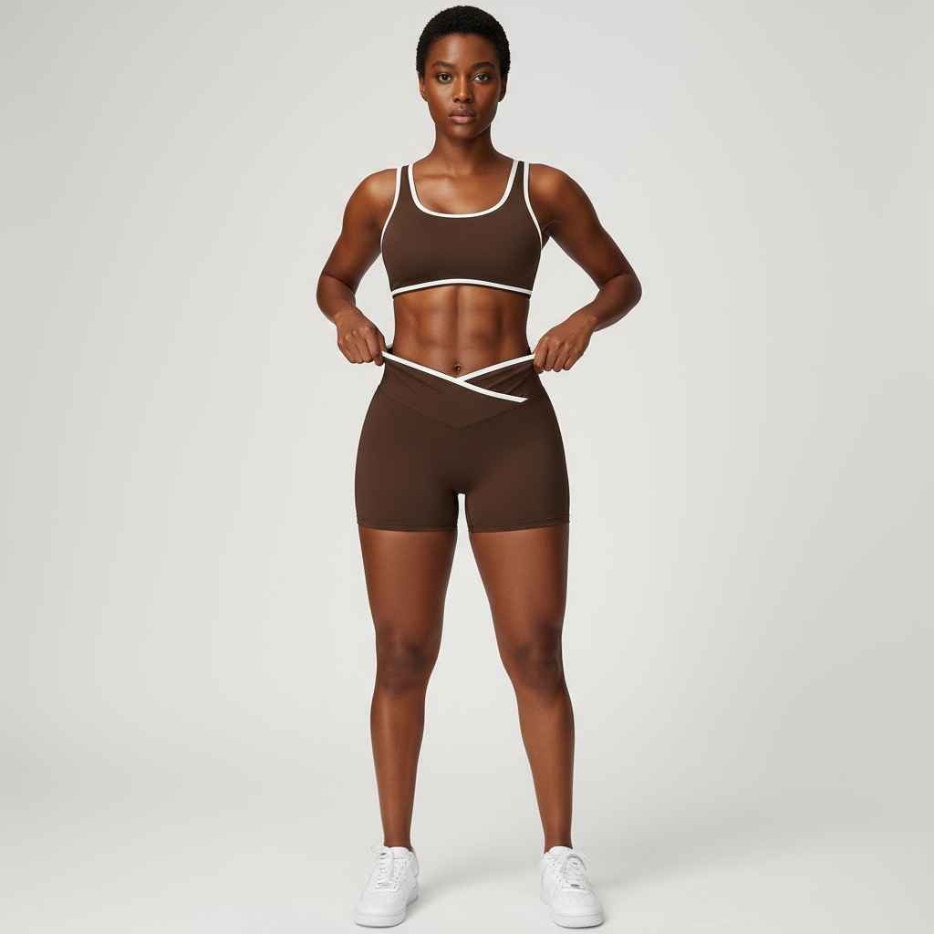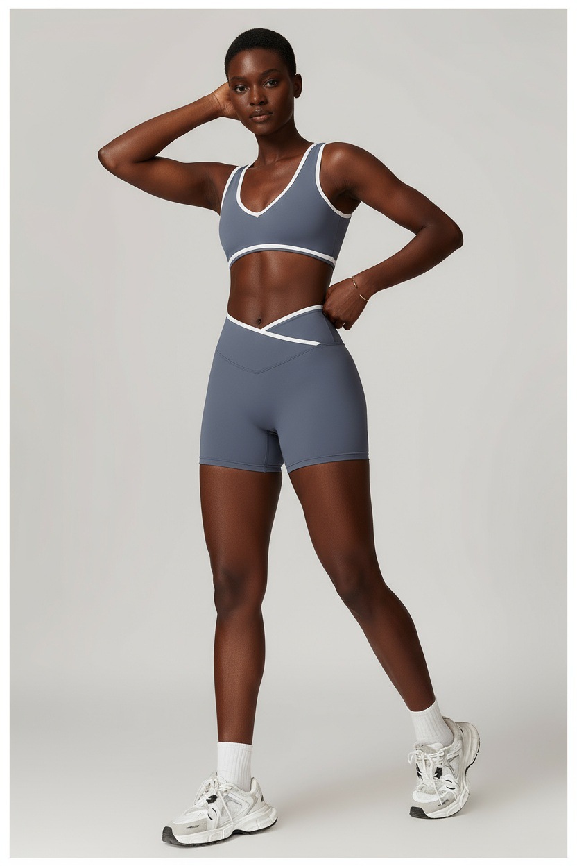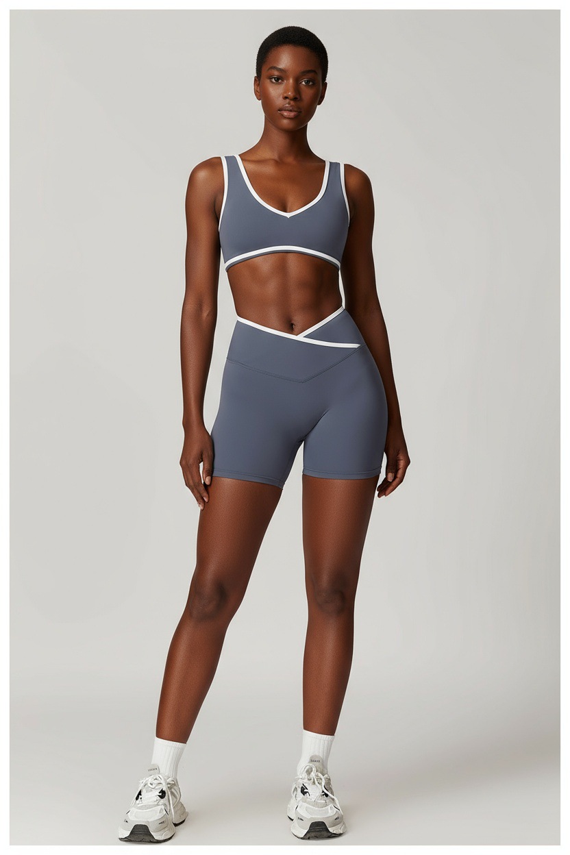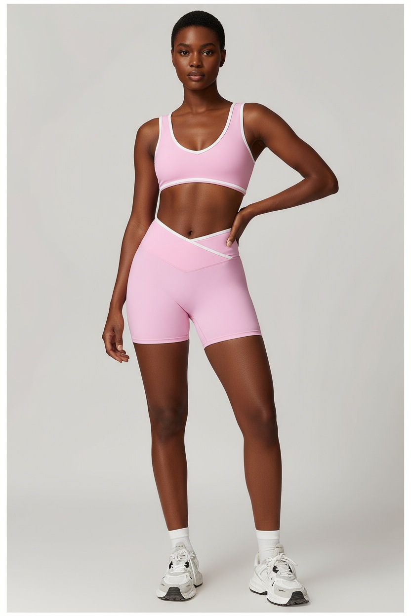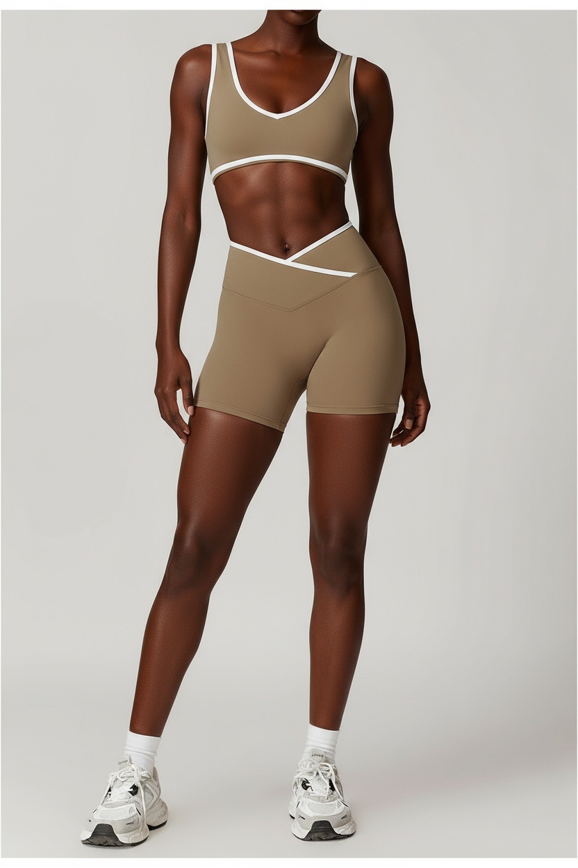 跃牌【安琪拉系列】交叉高腰瑜伽短裤紧身裸感蜜桃提臀运动短裤女三分健身裤DK3501