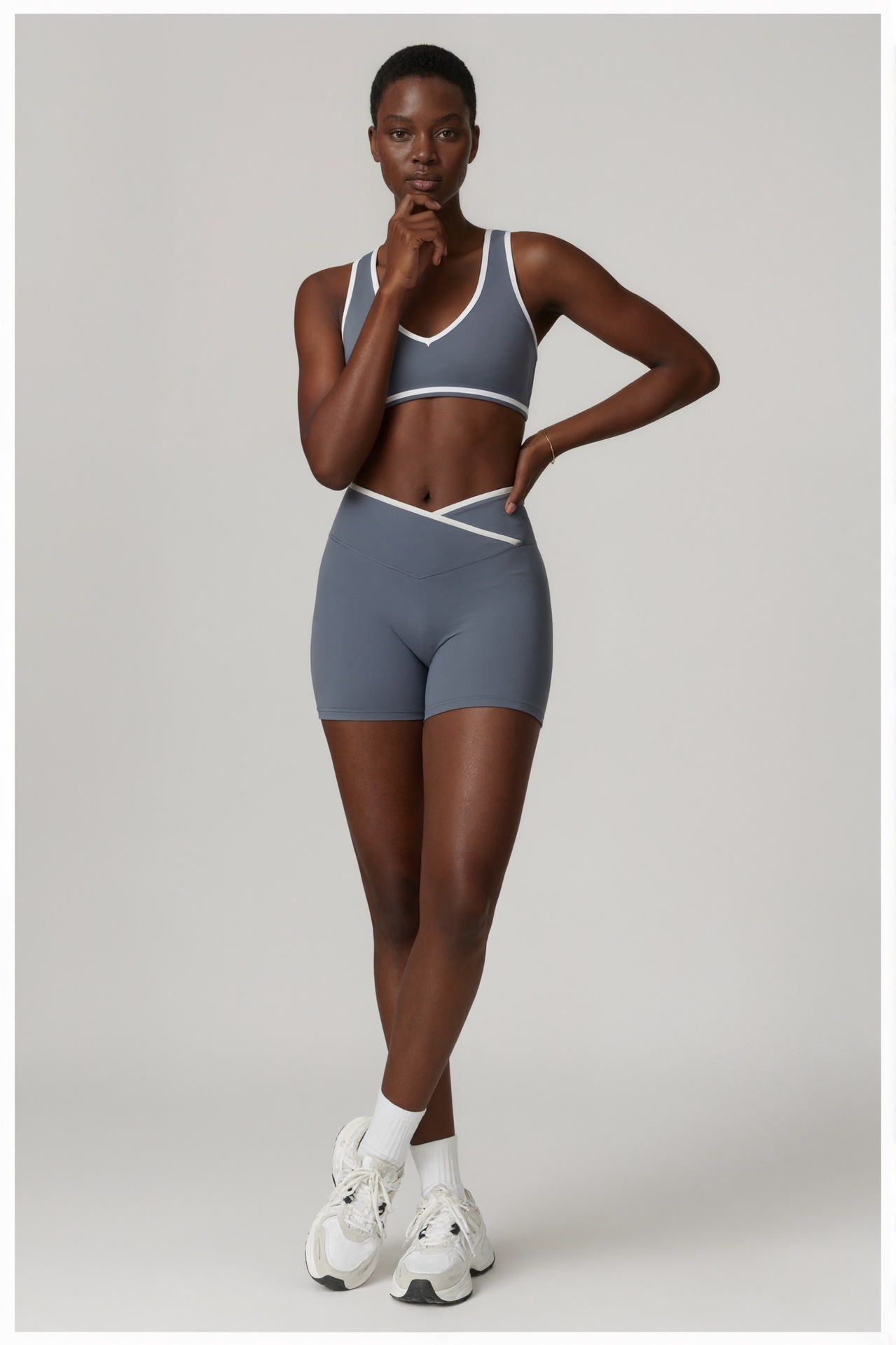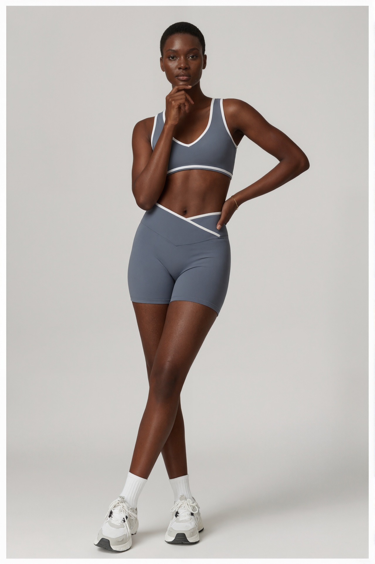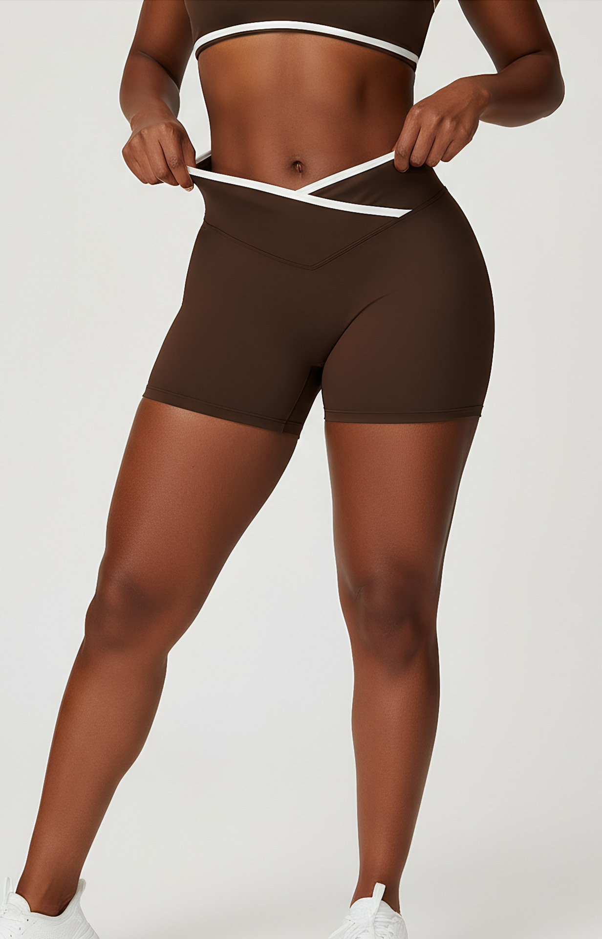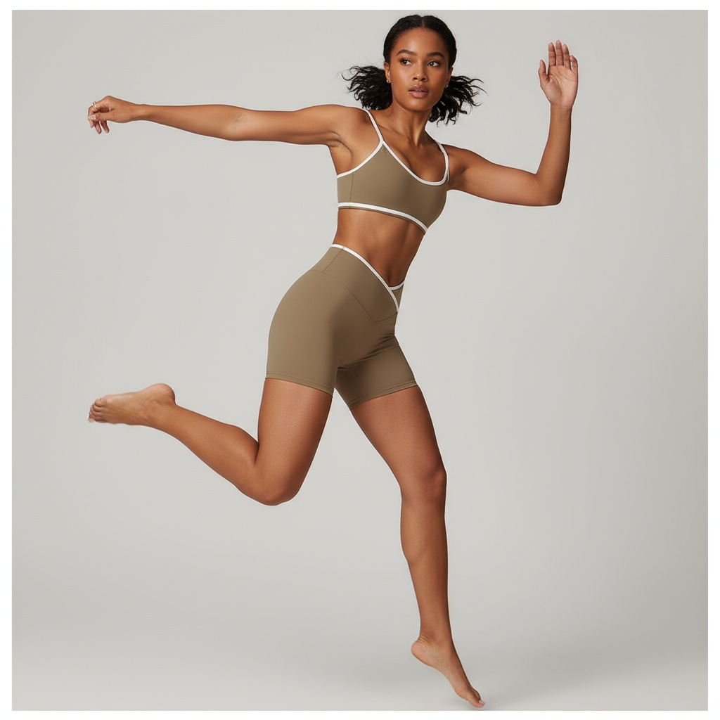 跃牌【安琪拉系列】交叉高腰瑜伽短裤紧身裸感蜜桃提臀运动短裤女三分健身裤DK3501