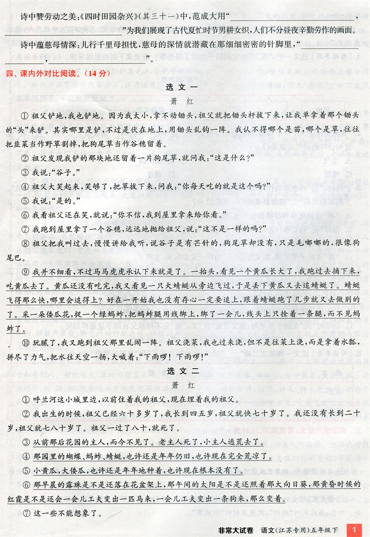 2026春 非常大试卷 语文五年级下册 配人教版 小学教辅 5下小学试卷 答案讲解视频 学生用书江苏专版