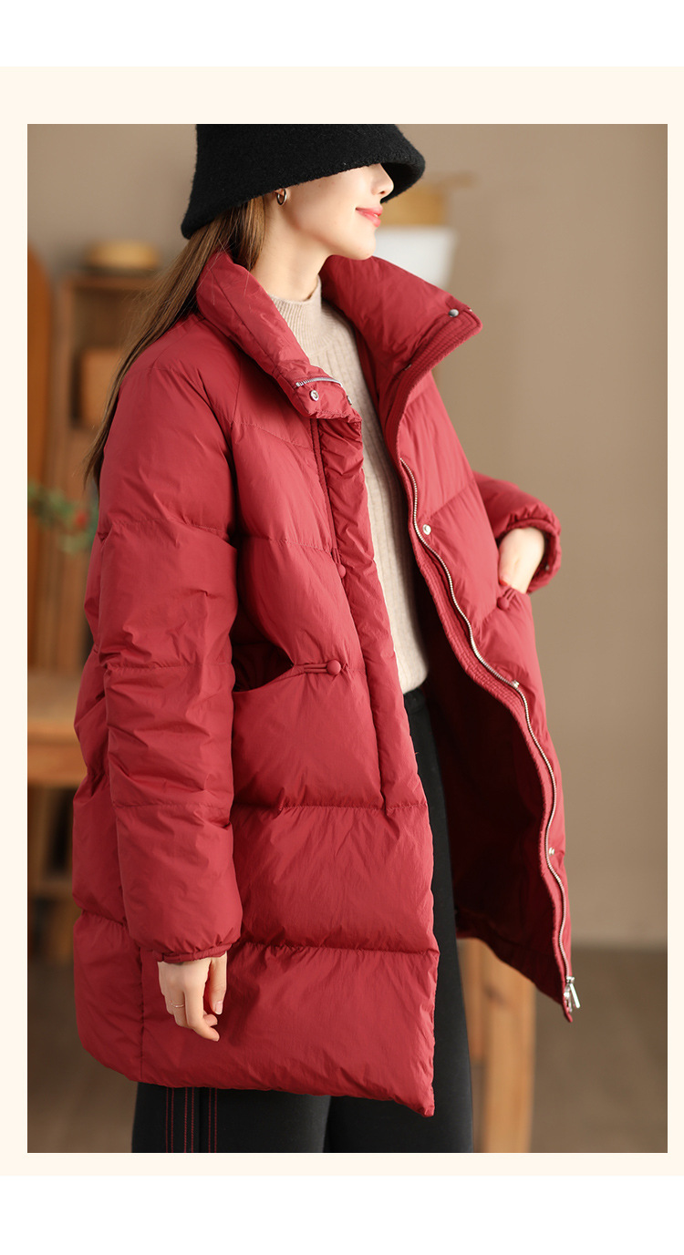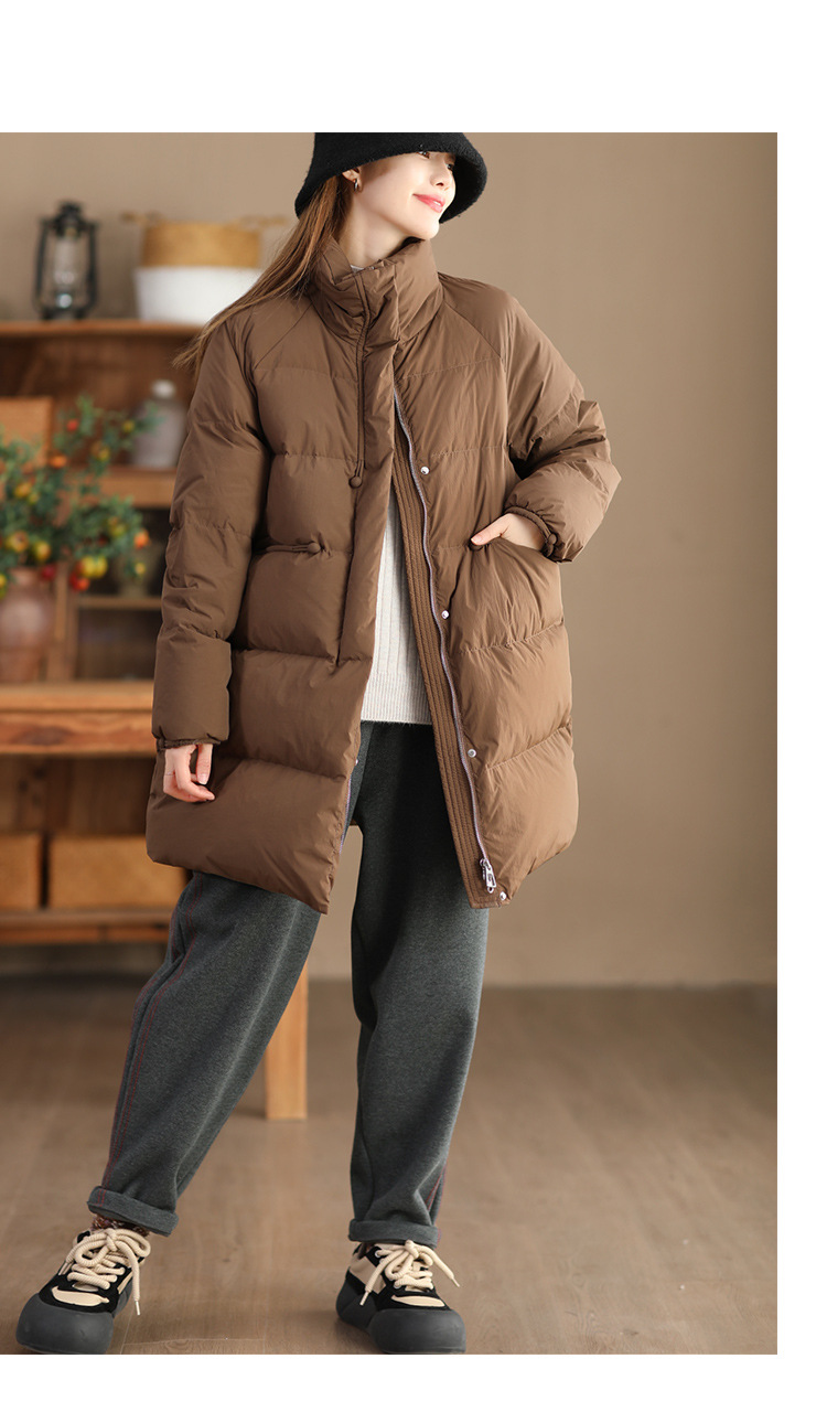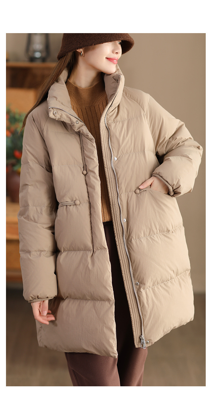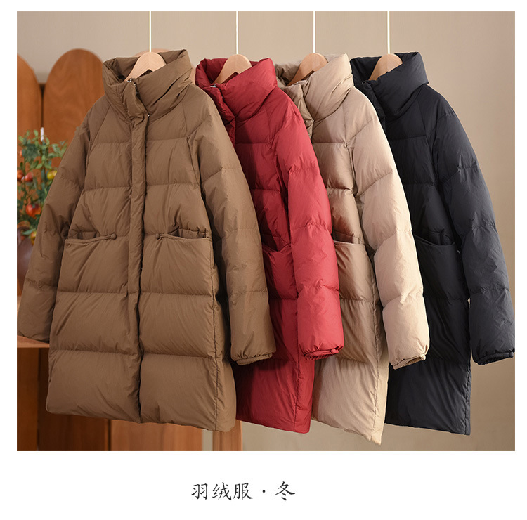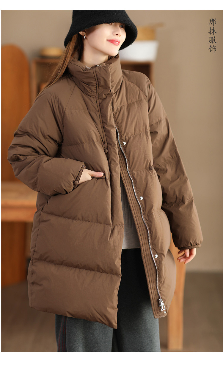 丁摩 立领双头拉链羽绒服女中长款白鸭绒保暖加厚外套23842