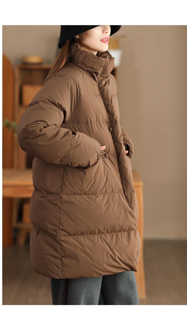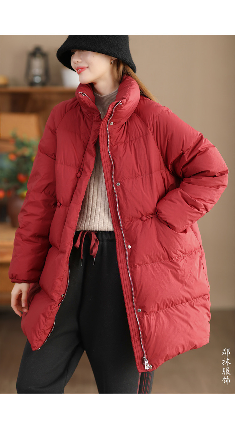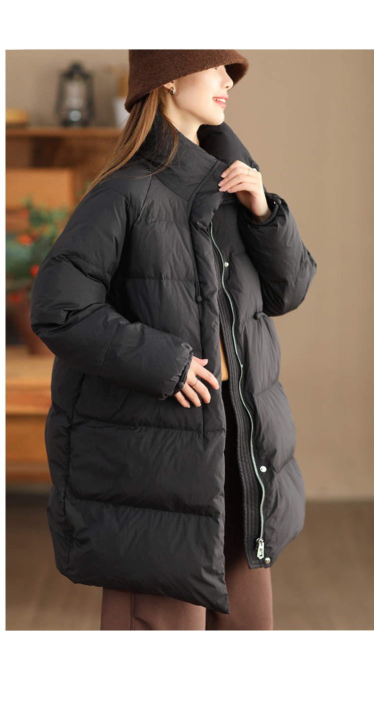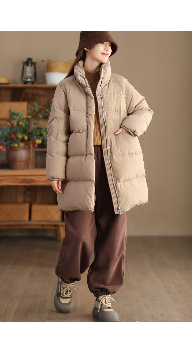 丁摩 立领双头拉链羽绒服女中长款白鸭绒保暖加厚外套23842