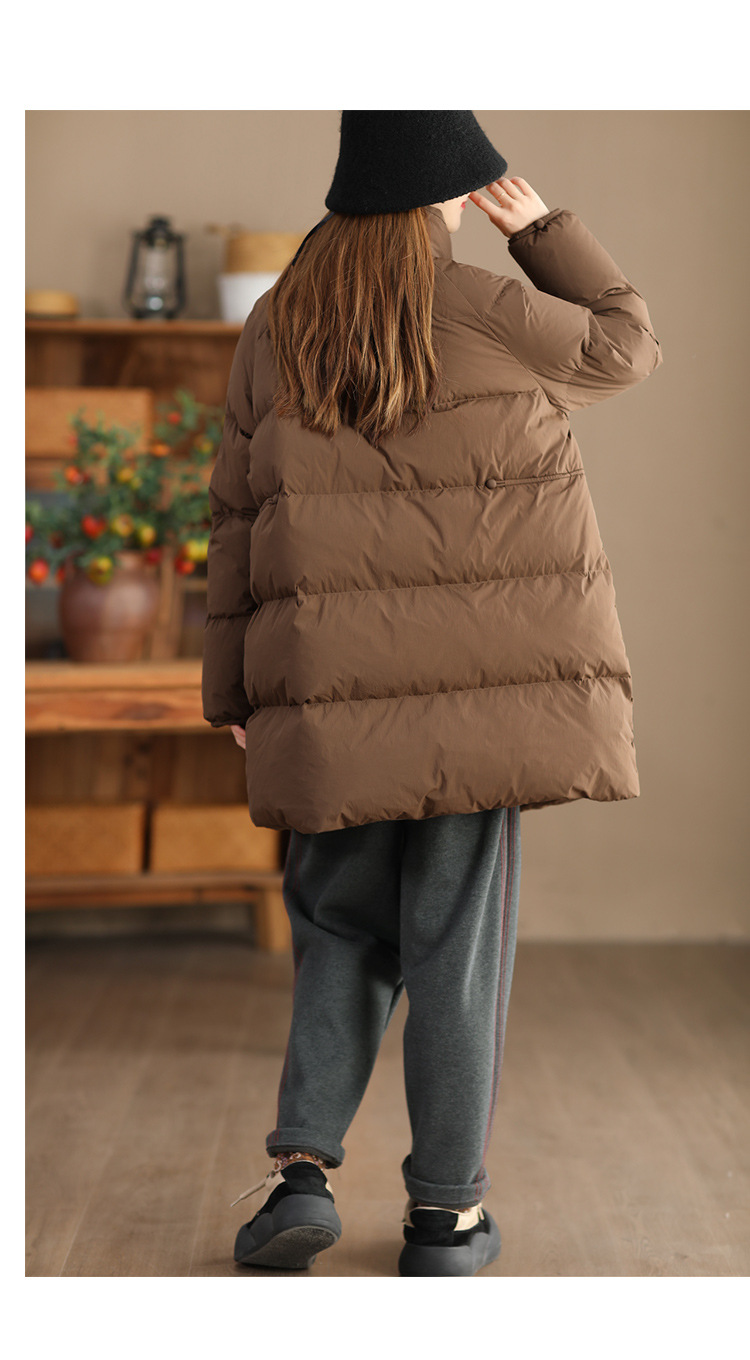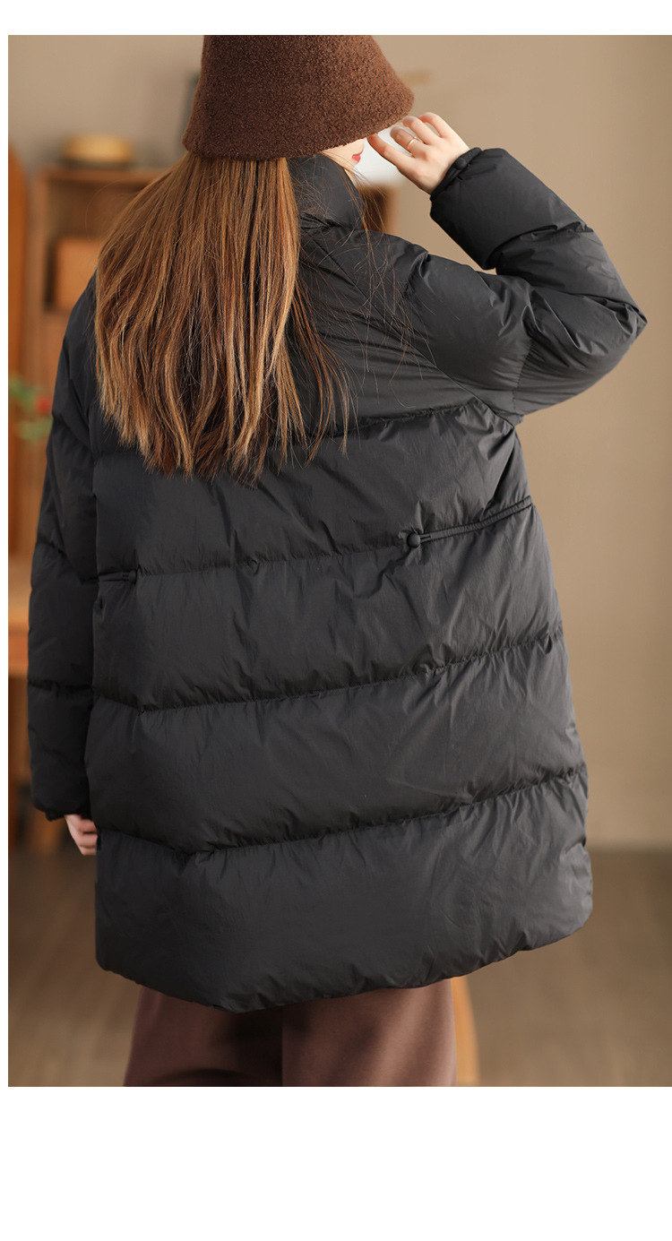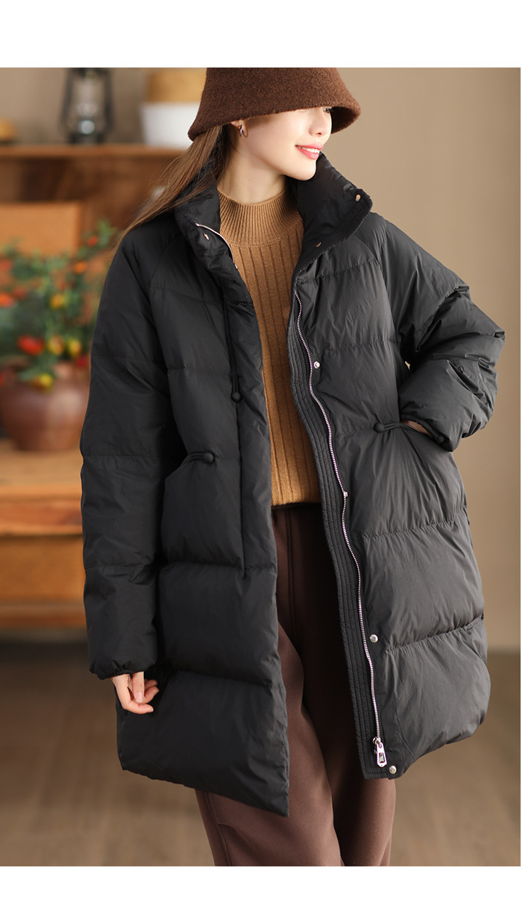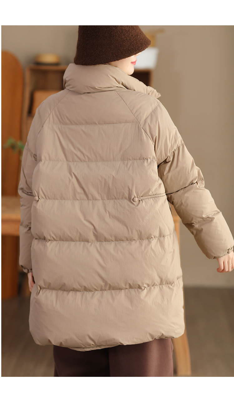 丁摩 立领双头拉链羽绒服女中长款白鸭绒保暖加厚外套23842