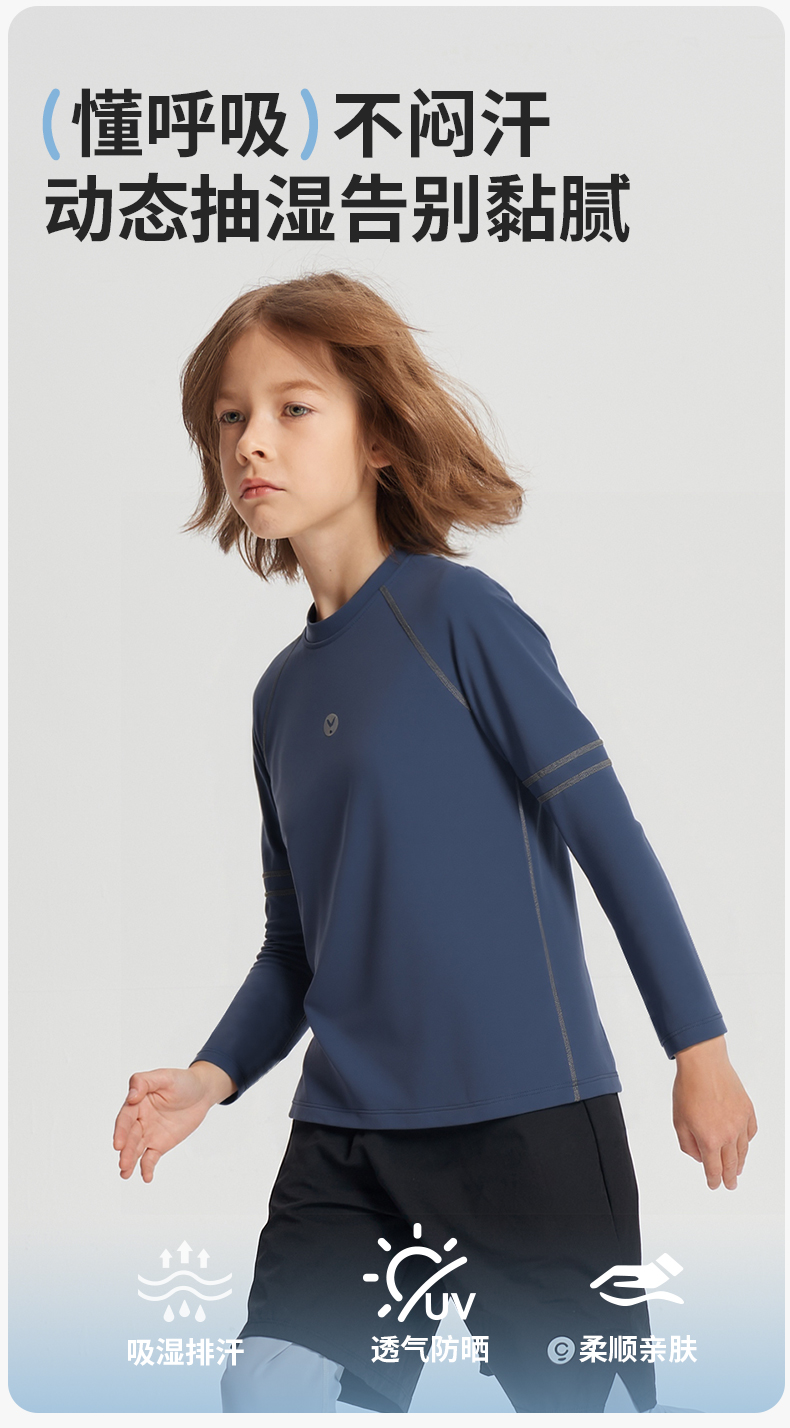 【南瓜拿铁】COO ENERGY中大童圆领无痕线条印花春秋款条纹长袖 110-170尺码