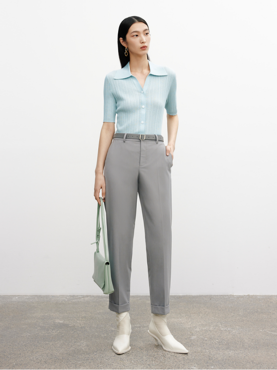 MM麦檬商场同款2023春装冰丝浅灰色时尚高腰直筒休闲裤女5E2250591