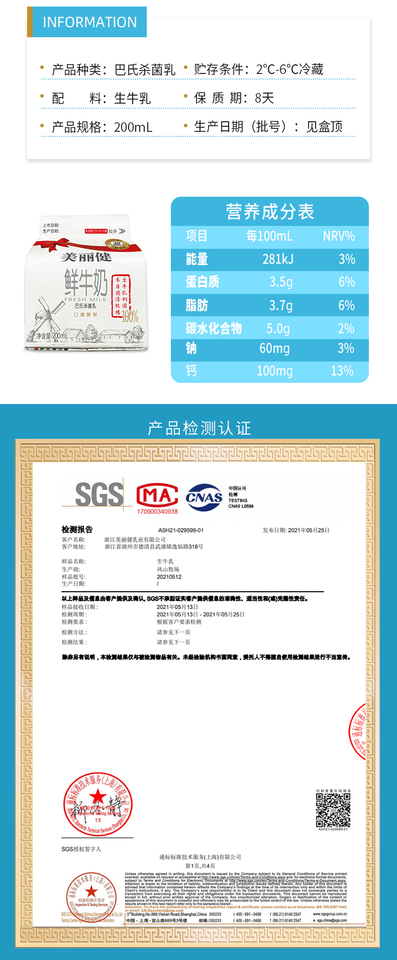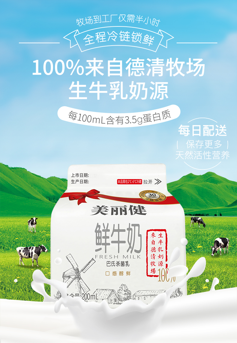 【新人领券再减30元】美丽健德清牧场鲜牛奶200mL(到店自提)