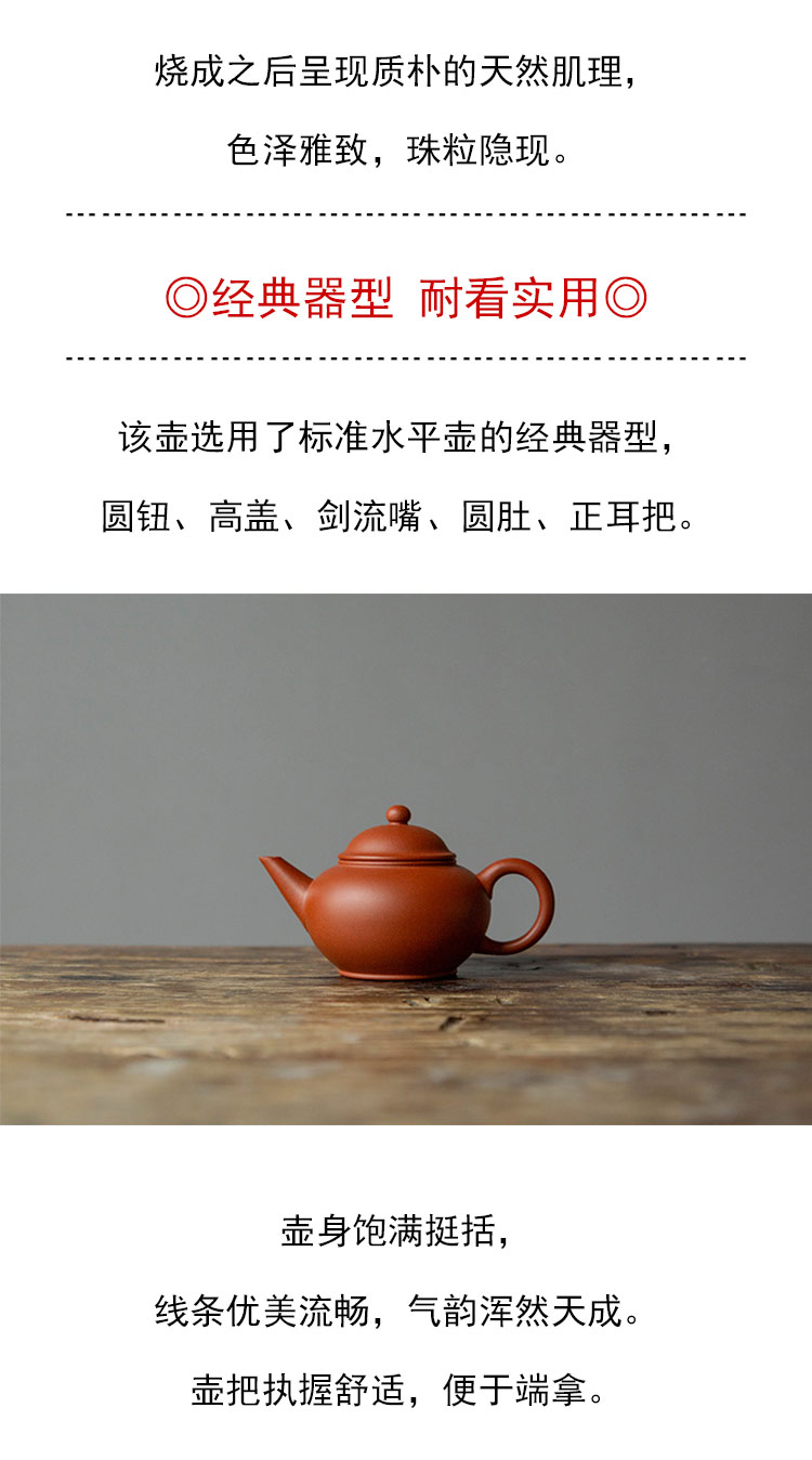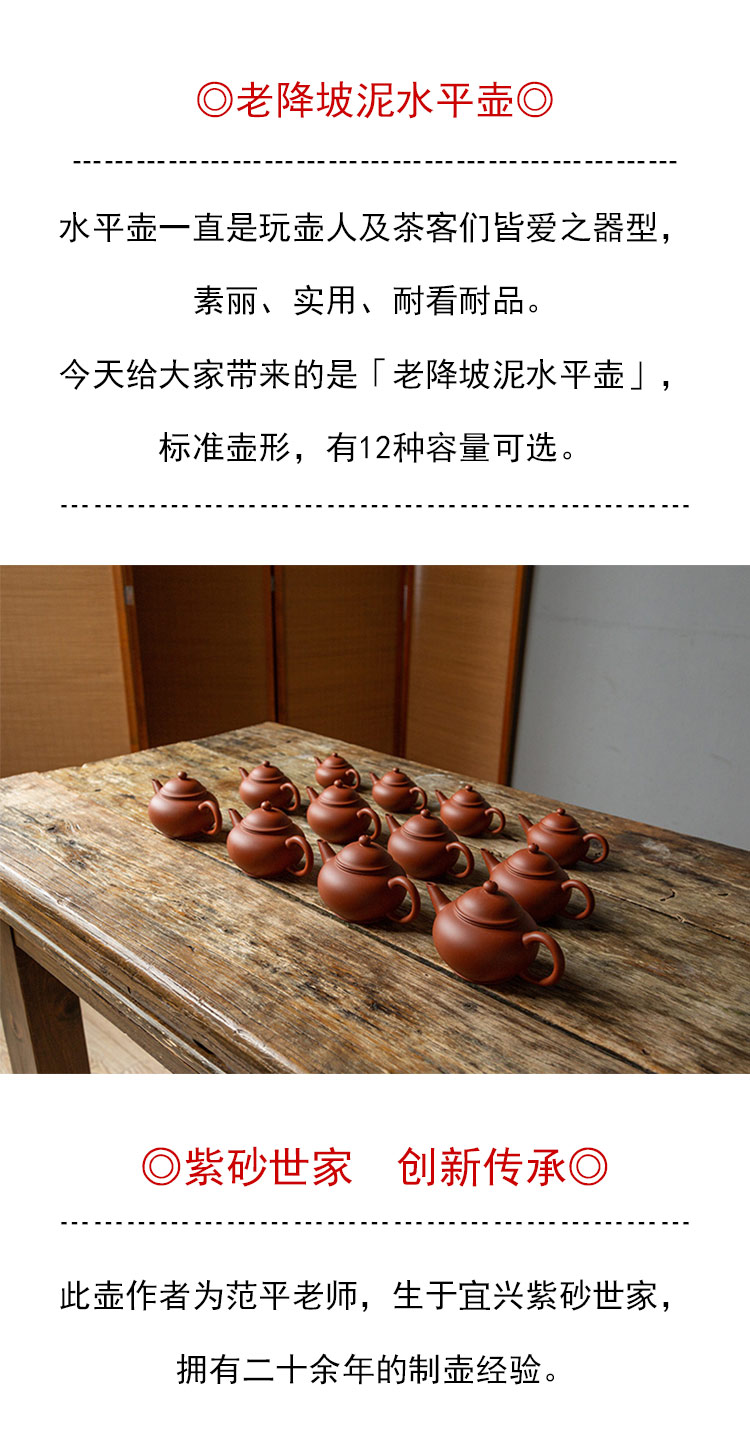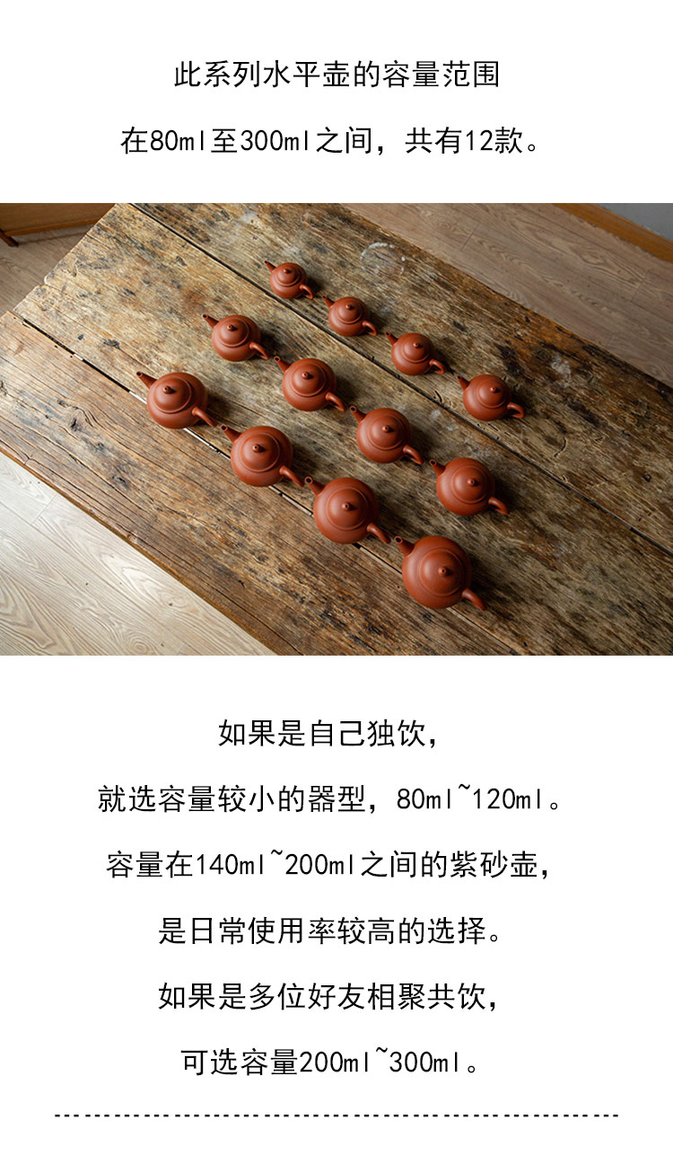 茶香记 老降坡泥水平壶 紫砂壶 标准水平 多种容量 简单素丽 透气易养