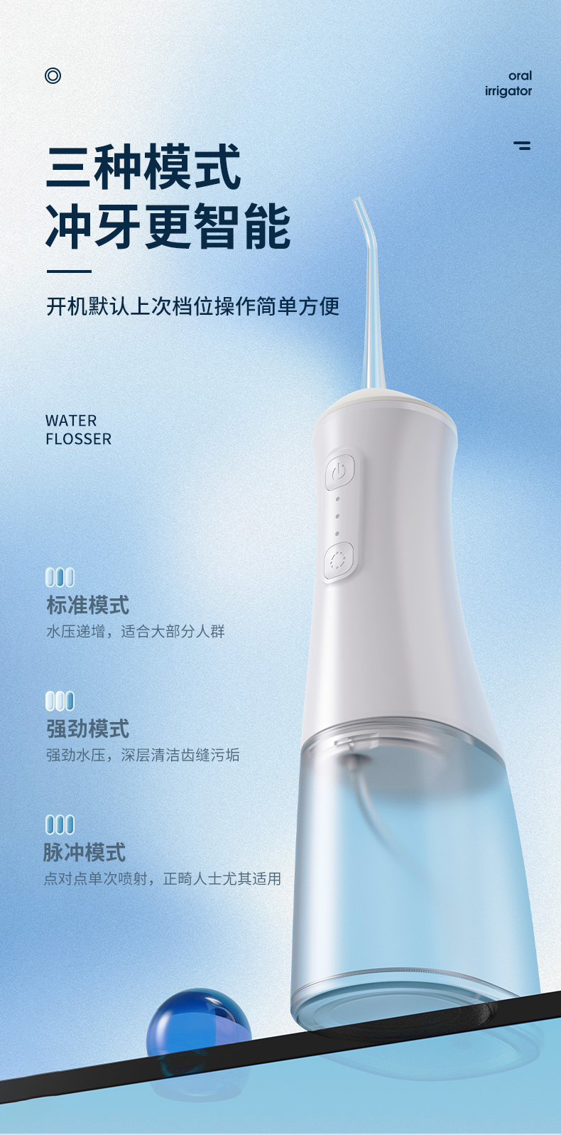夕会智能冲牙器 防触设计 加大可拆卸水箱 多模式高频脉冲 IPX7级防水