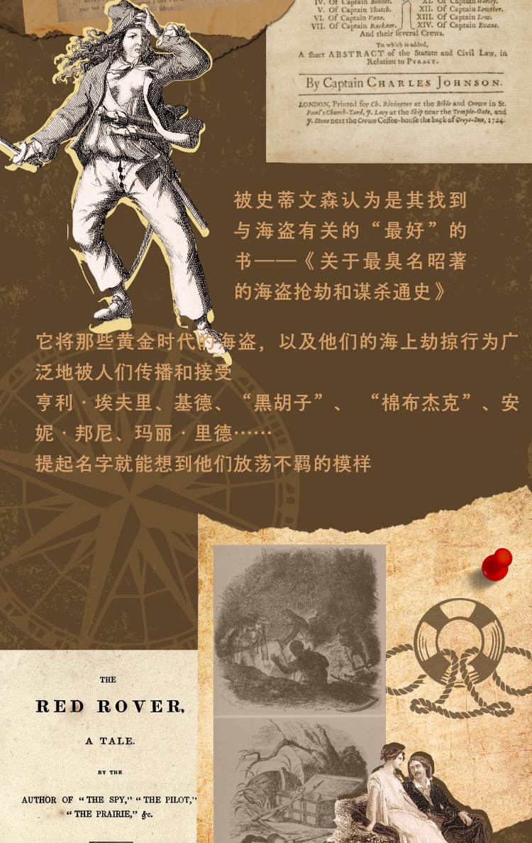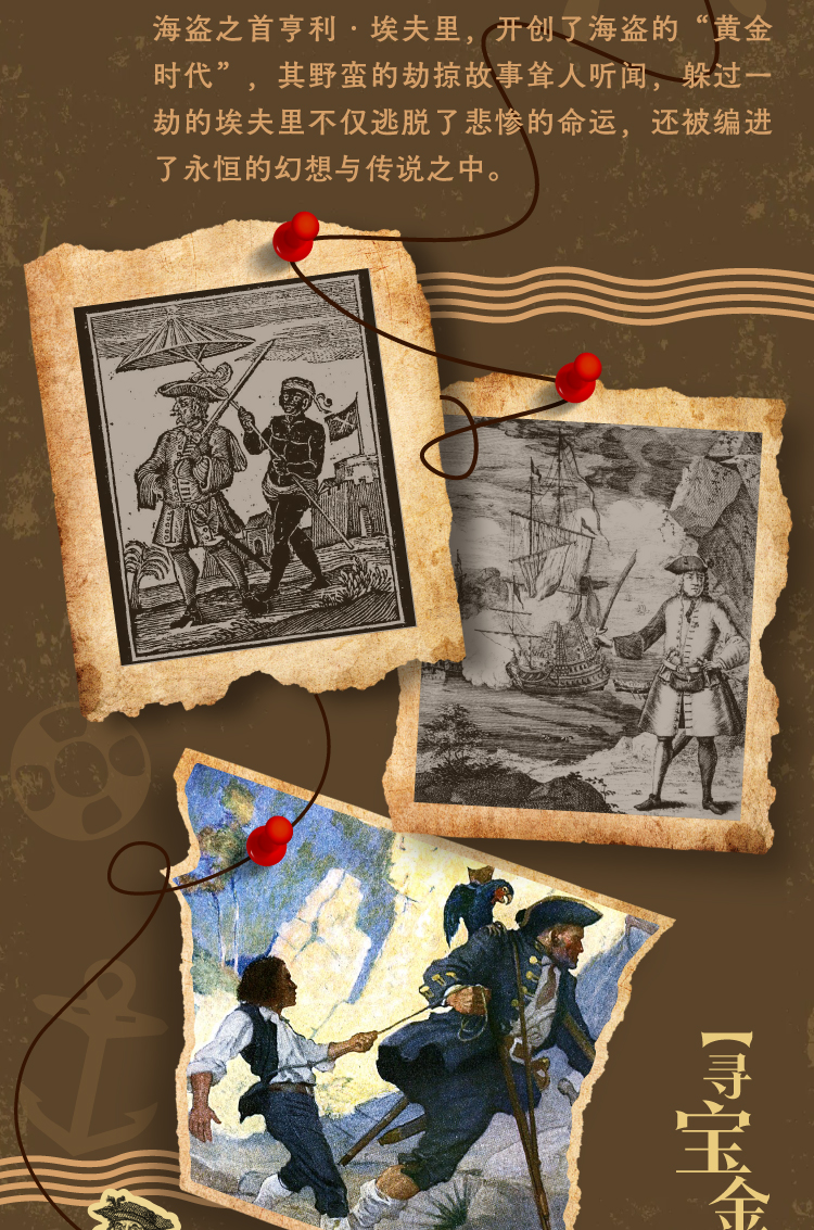 海盗的领袖亨利·埃夫里,开创了海盗的“黄金时代”,但其劫掠之野蛮也十分耸人听闻,被抓住的海盗在伦敦中央刑事法庭被判了死刑,躲过一劫的埃夫里不仅逃脱了悲惨的命运,还被编进了永恒的幻想与传说之中。
