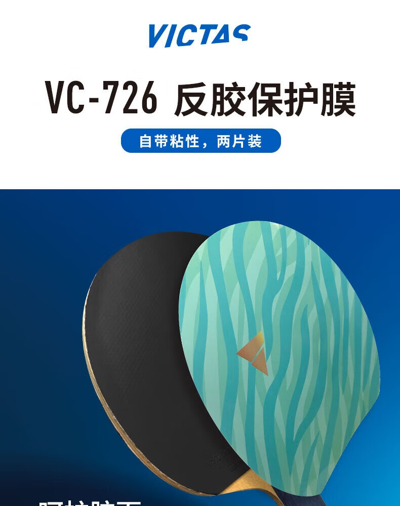 Victas维克塔斯乒乓球反胶保护膜VC-726防尘贴2片装胶皮保护膜2枚装(薄软/粘性)
