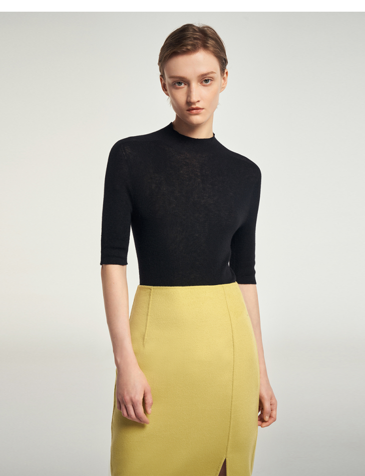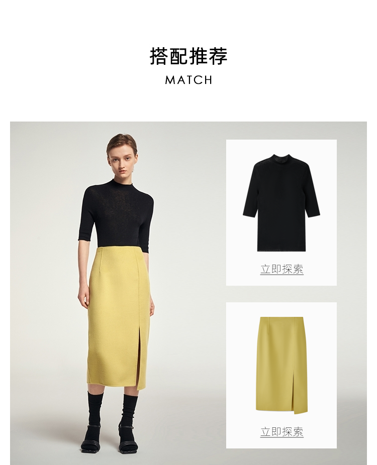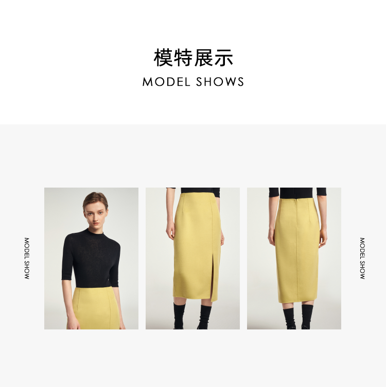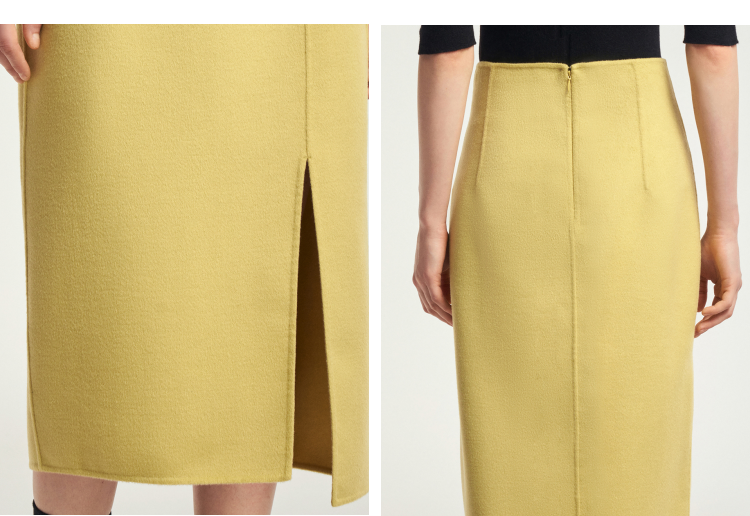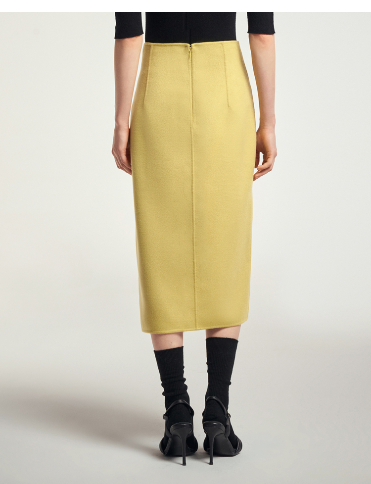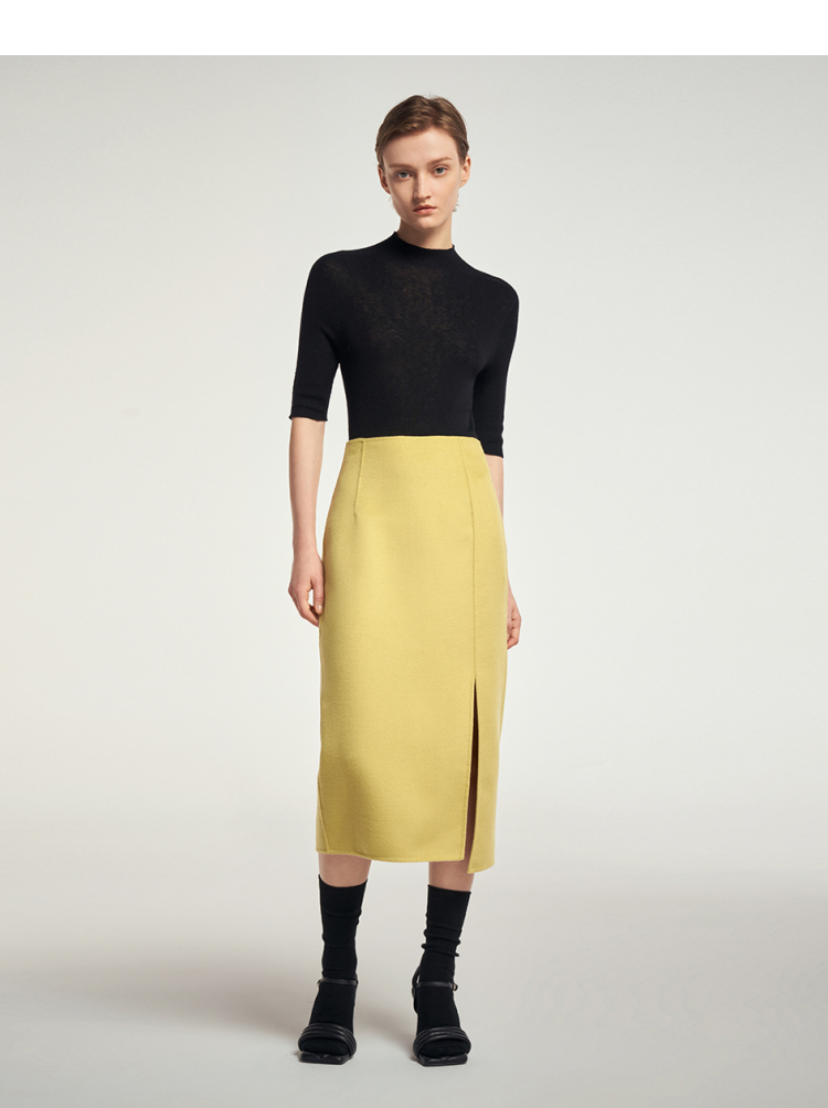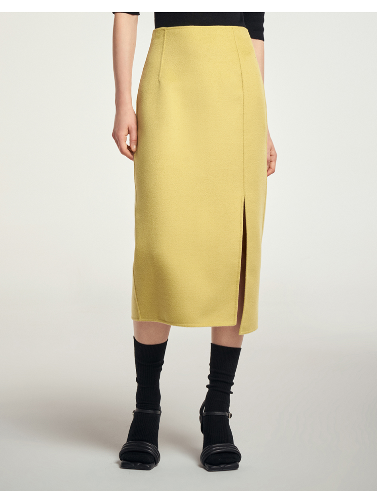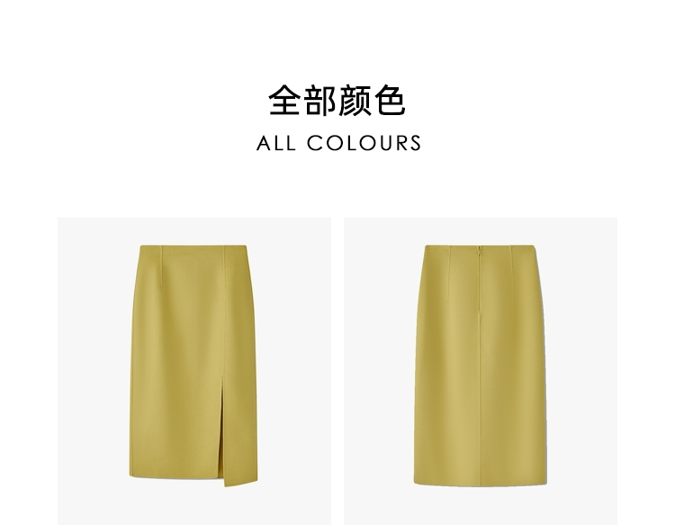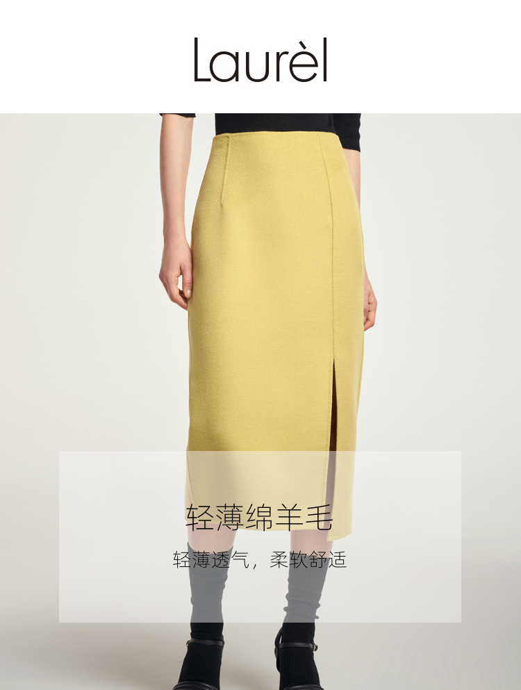 Laurel劳芮23秋冬 金盏黄开衩直身半裙 LWL343Q02900