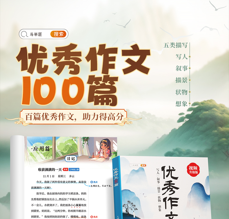 斗半匠小学生优秀作文100篇好词好句好段大全语文优美句子积累本摘抄本作文书优秀写作素材范文