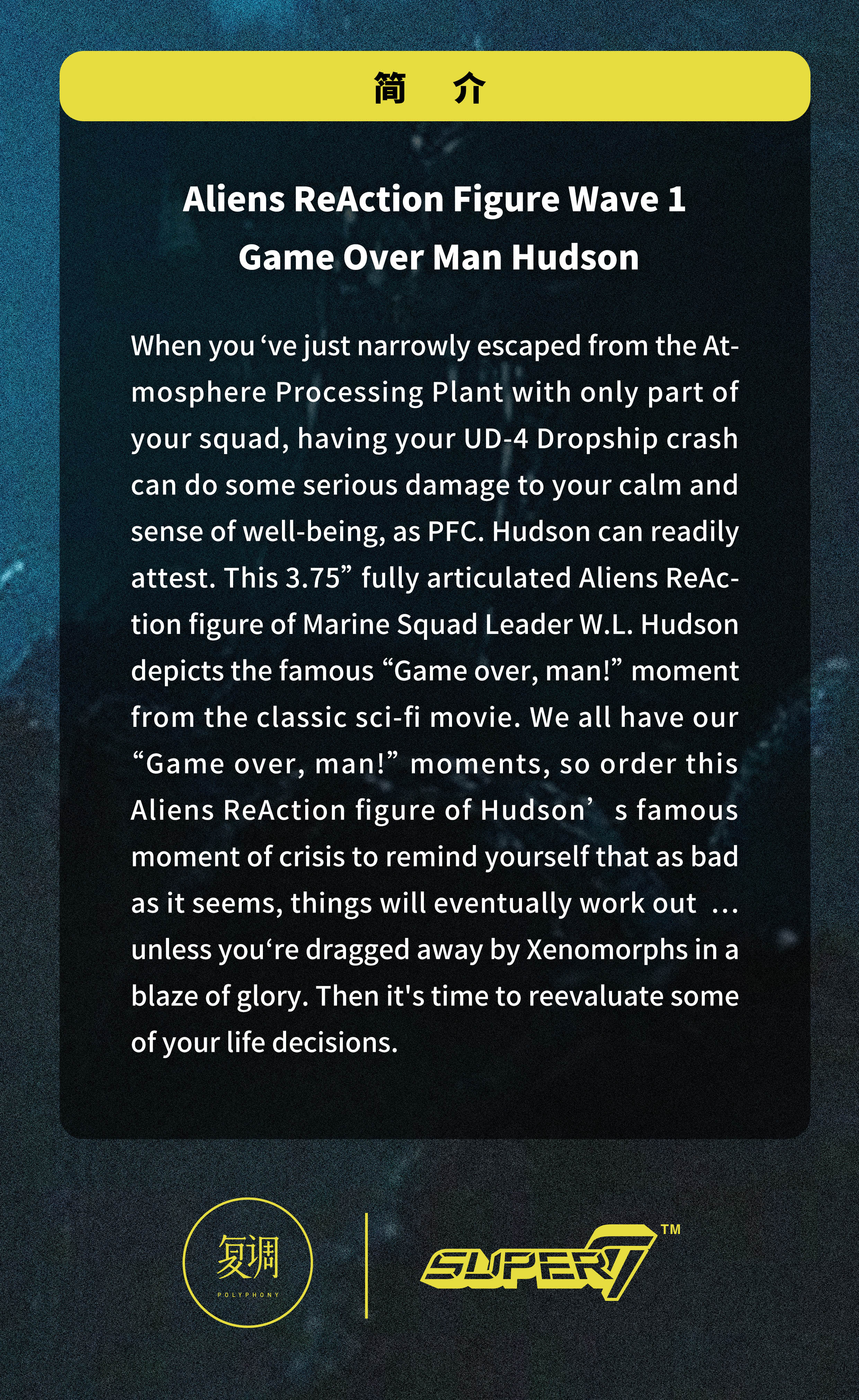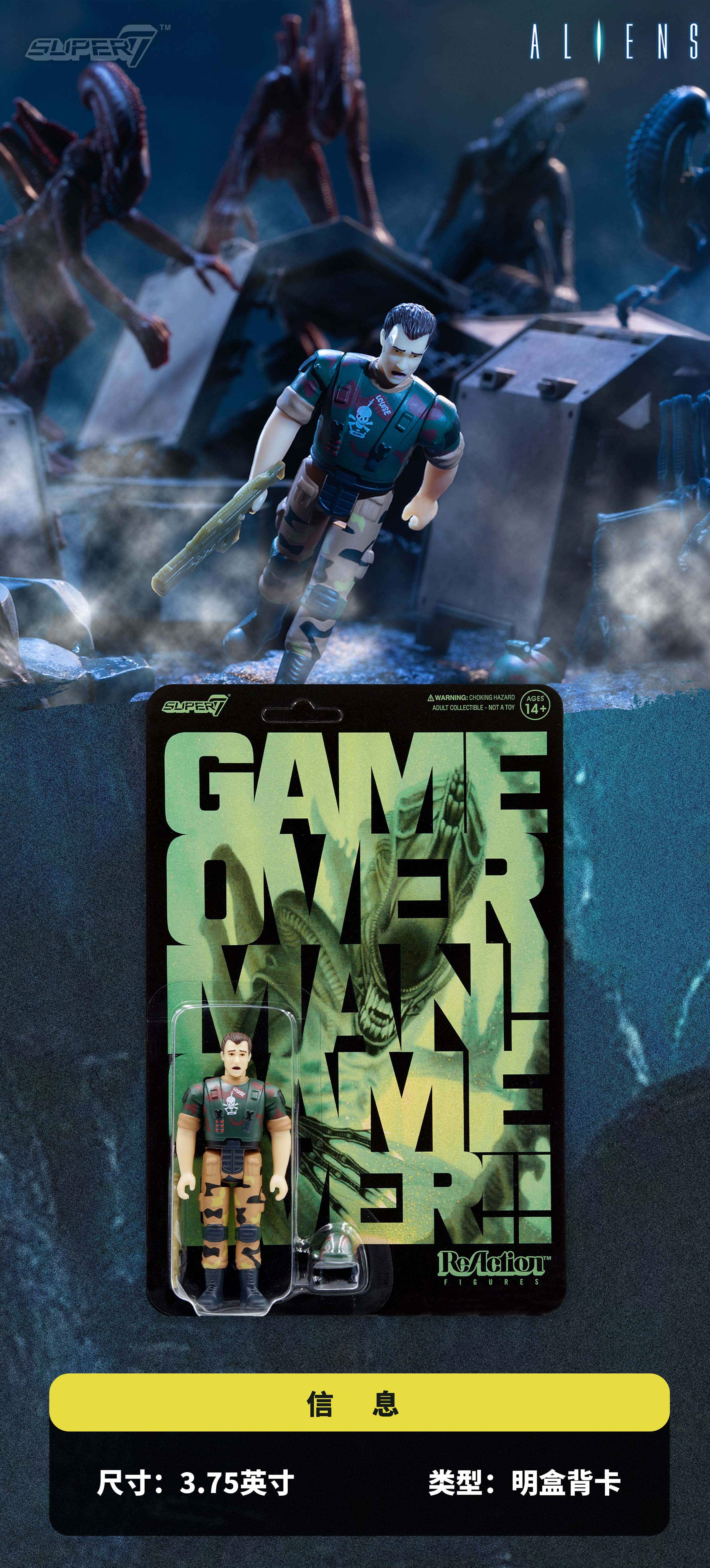 现货 Super7 异形 Aliens Game over 士兵哈德逊 Hudson 3.75英寸 挂卡