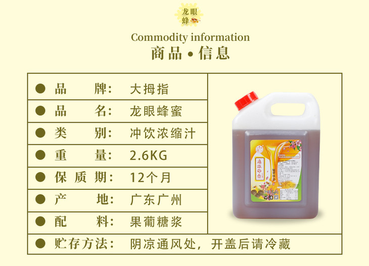 大拇指 龙眼蜂蜜 2.4L*6瓶/件 四果汤