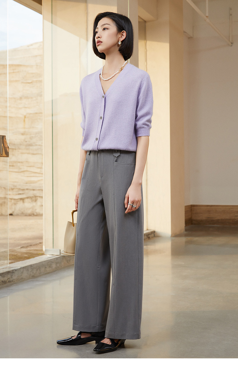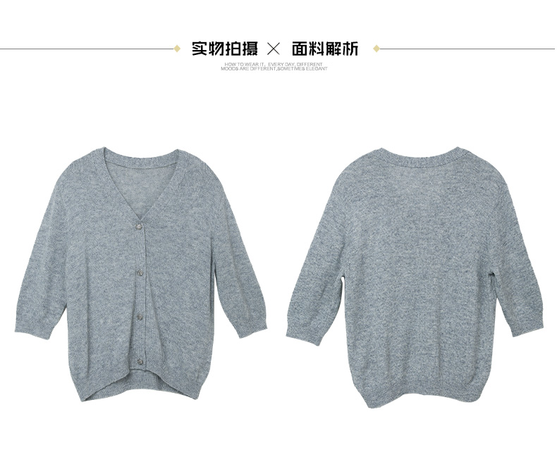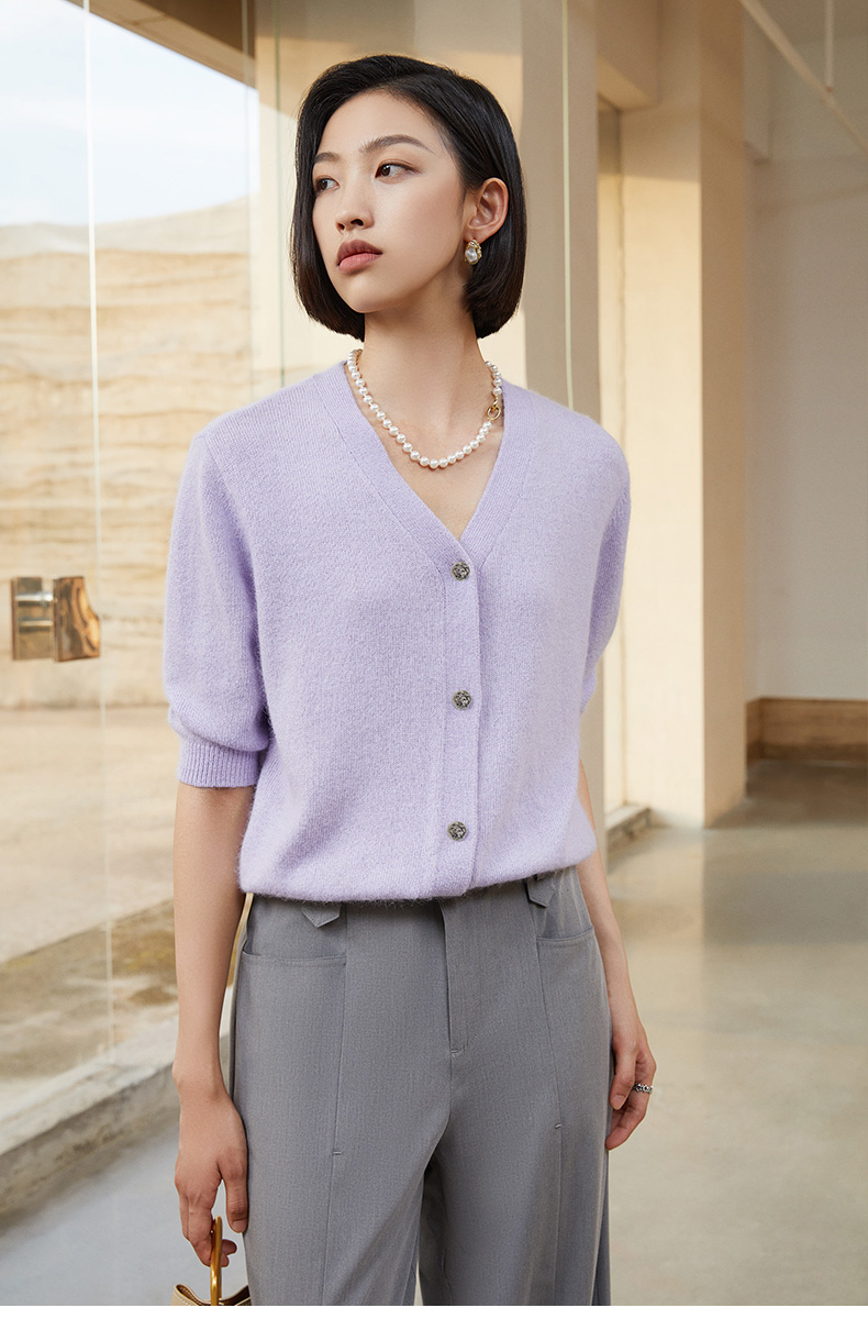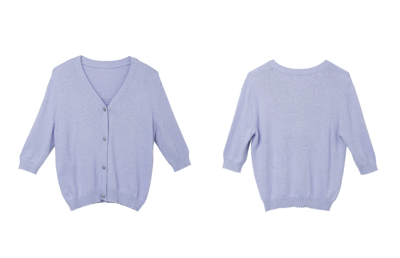 紫色 V 领针织开衫女春秋季新款 温柔风宽松显瘦五分袖毛衣上衣
