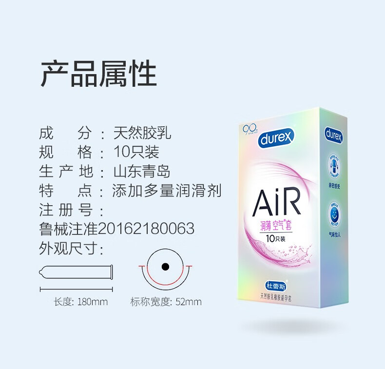 【杜蕾斯air隐薄裸入版体验看不见的薄】杜蕾斯避孕套Air隐薄3只/润薄空气套6只装