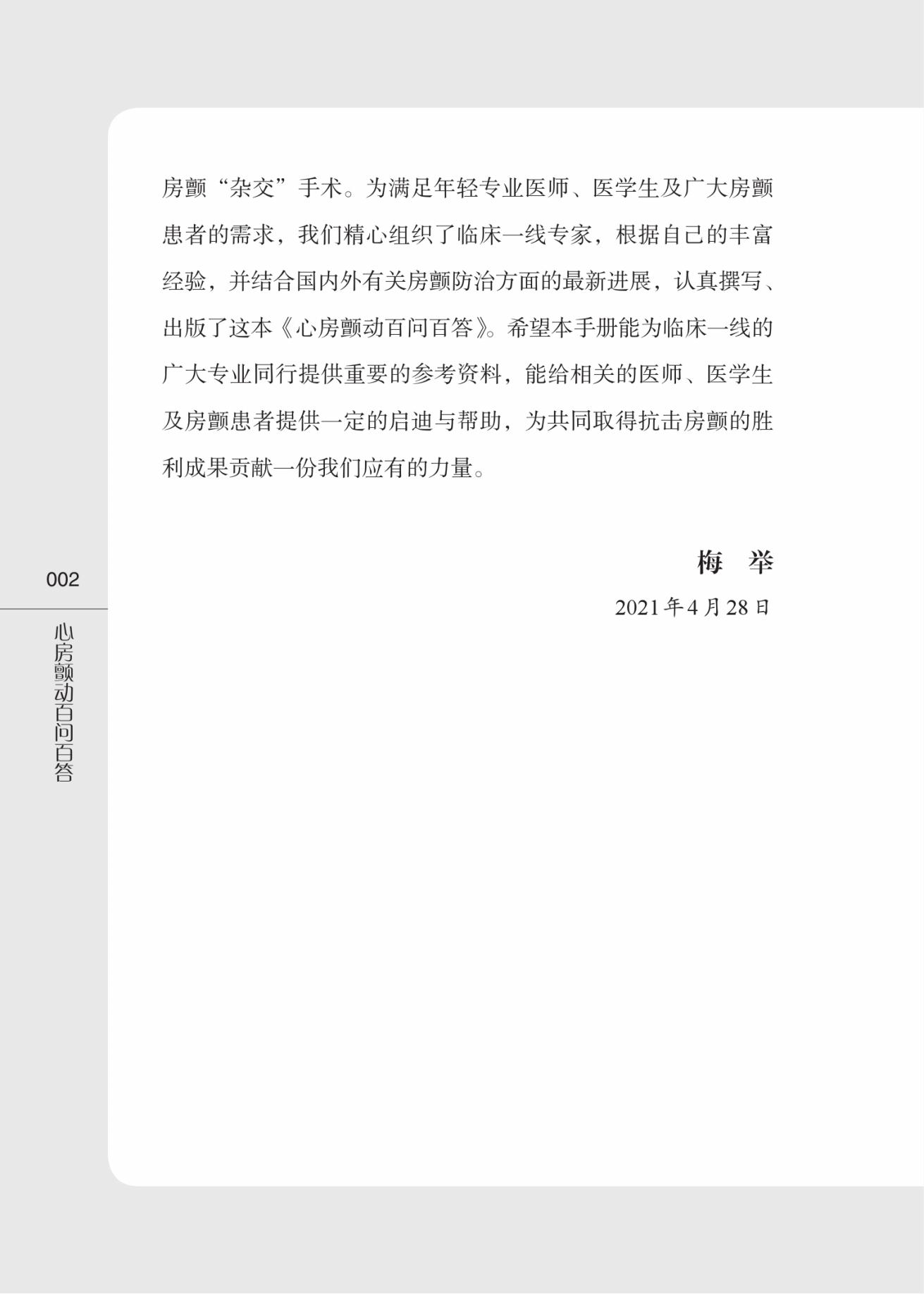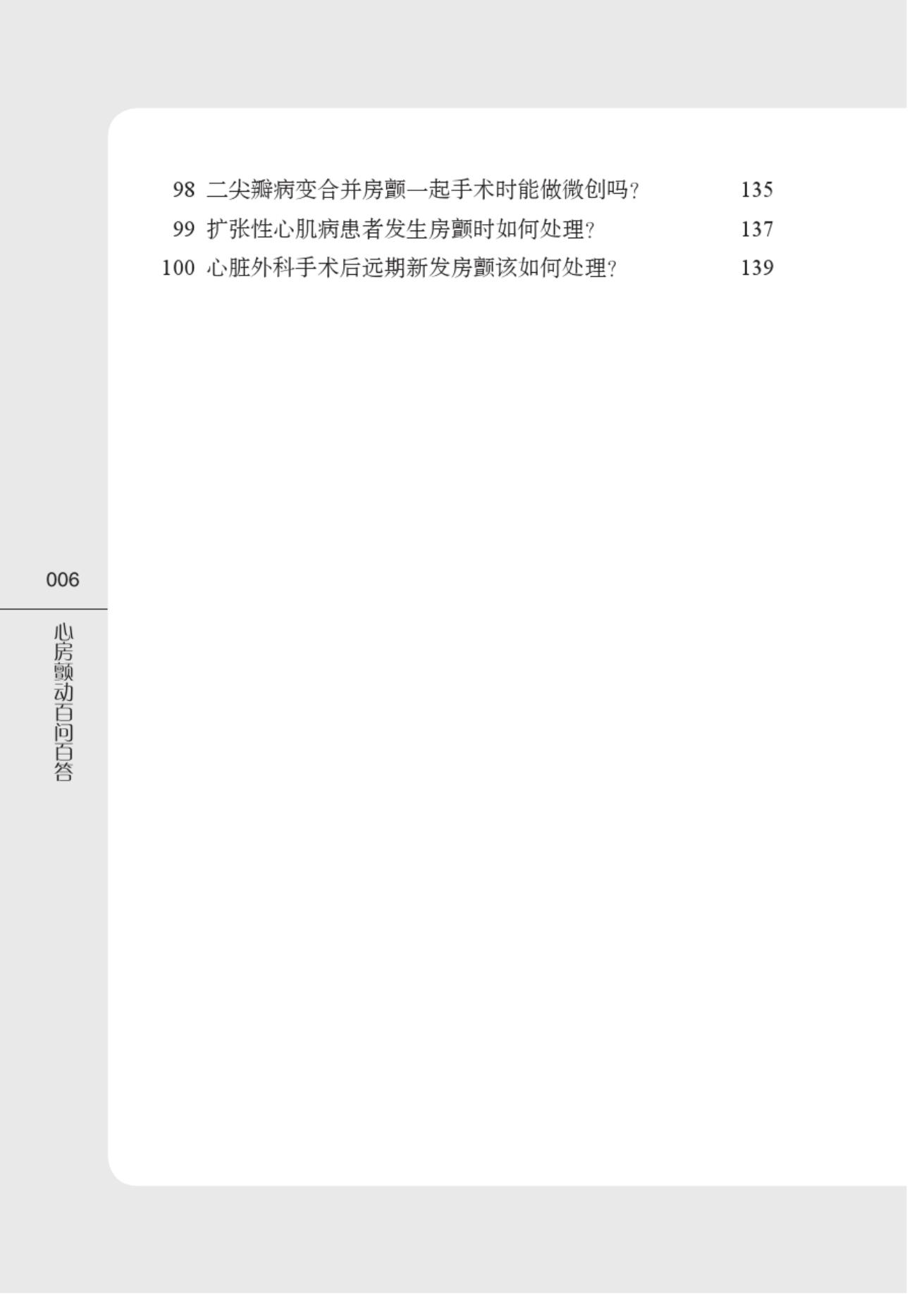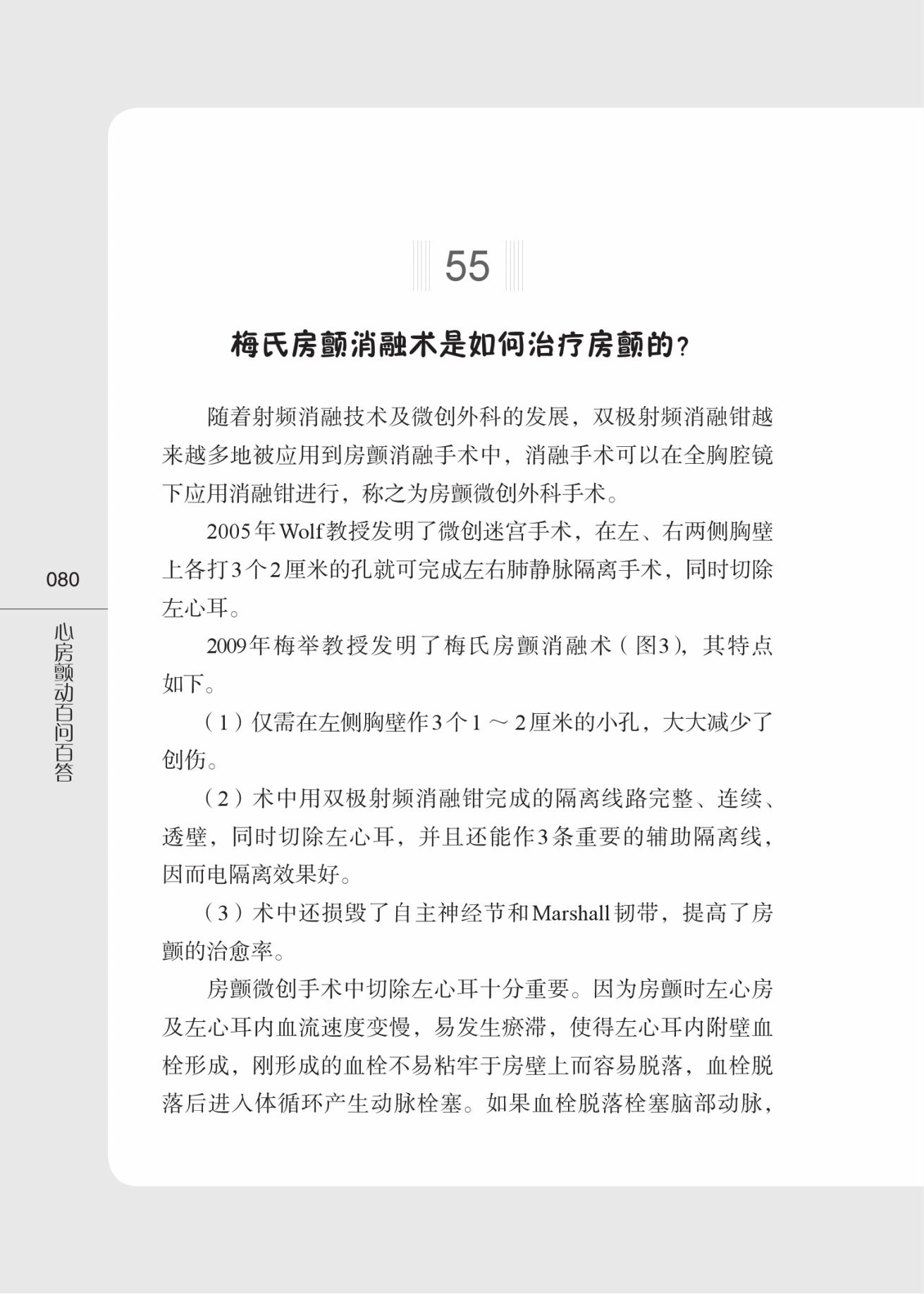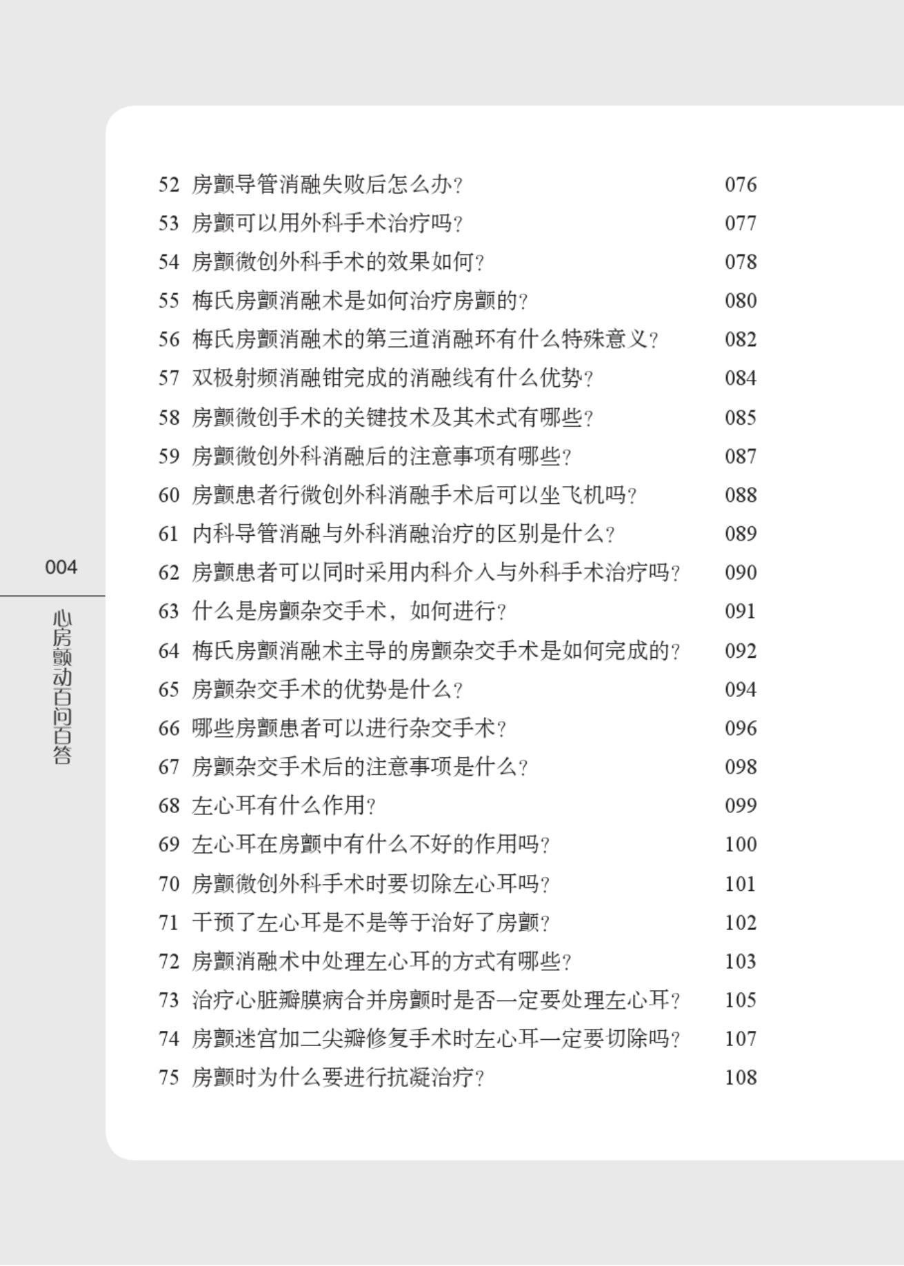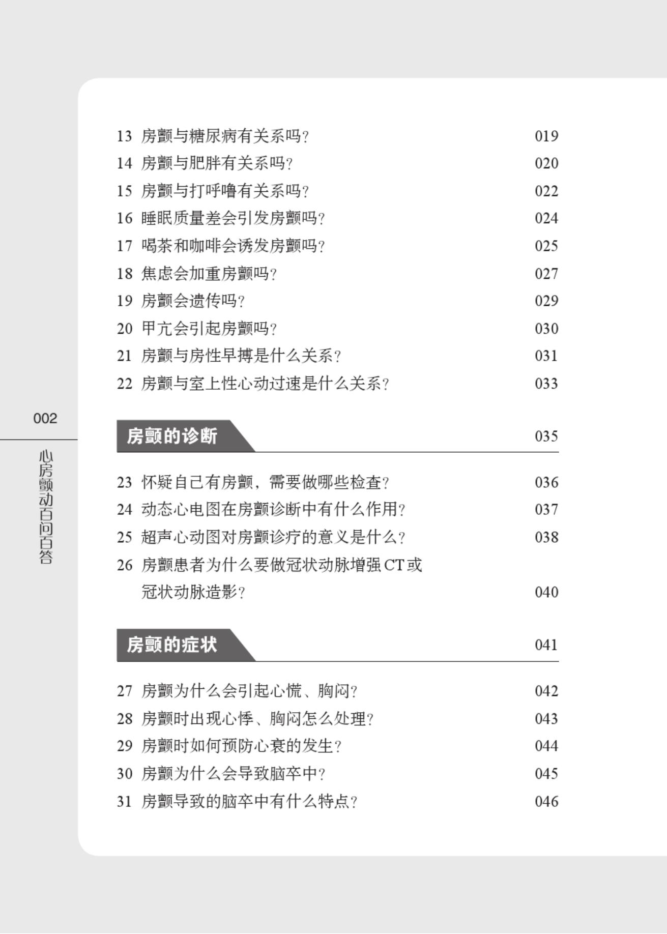 心房颤动(房颤)是临床最常见的心律失常之一,可导致心衰、脑卒中等严重并发症的发生,具有较高的致残率和致死率。本书以问答的形式展开,针对房颤患者最为关心的诊断、治疗和预防等方面进行阐述,内容主要涵盖了房颤总论、危险因素(吸烟、饮酒、高血压、糖尿病、肥胖、甲状腺功能异常、饮食、遗传等)、症状、诊断(检查方法)、分类和治疗方法(药物、消融手术、介入手术等),以及该领域的*新进展,并配以图片解释。本书可供临床医师、医学生及房颤患者参考阅读。