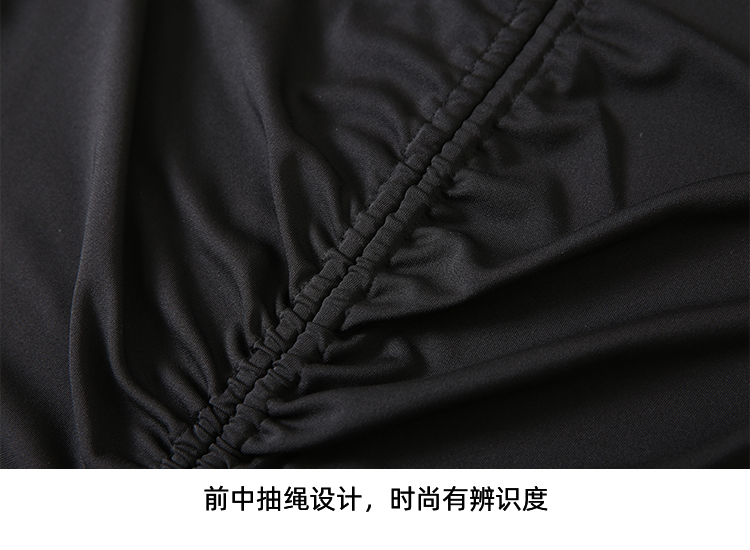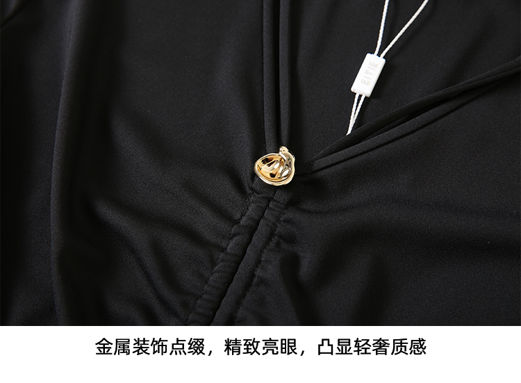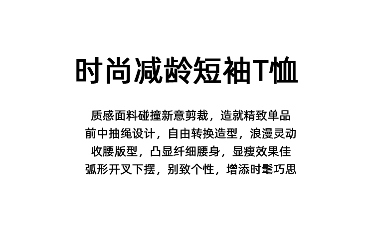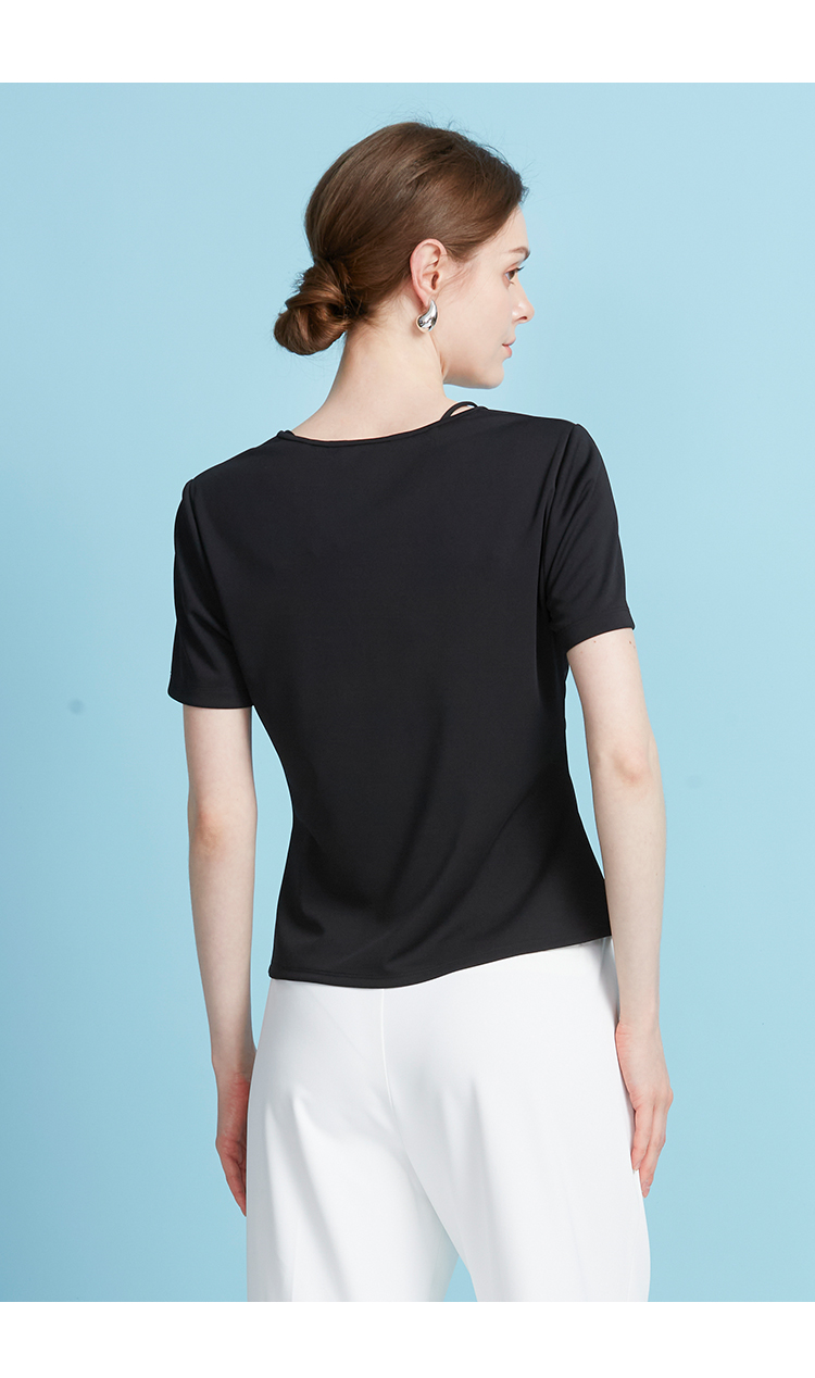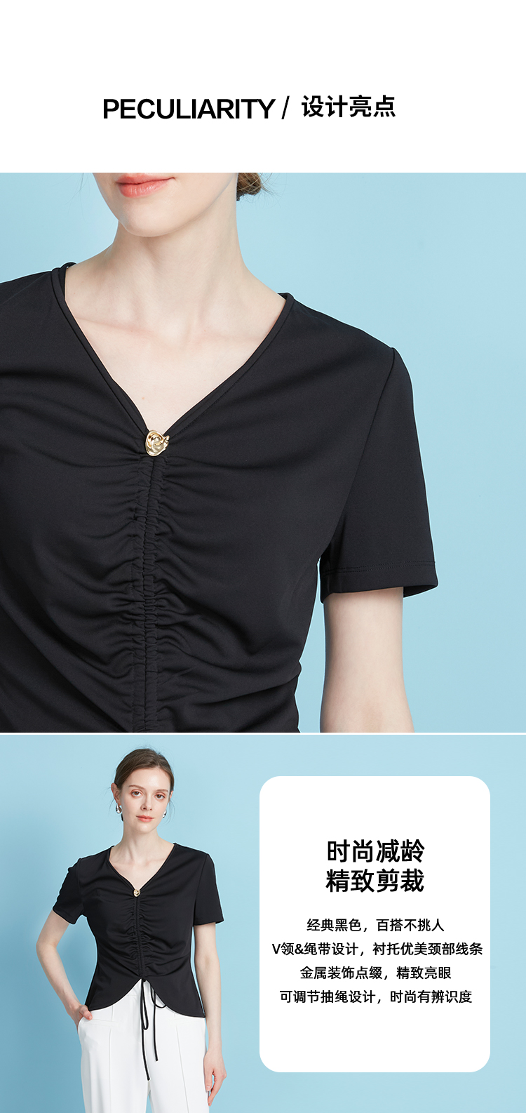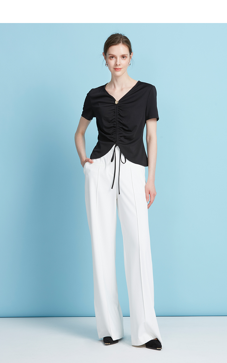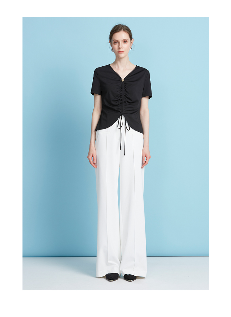 EITIE爱特爱夏季新款时尚显瘦V领抽绳褶皱露脐T恤上衣7802523