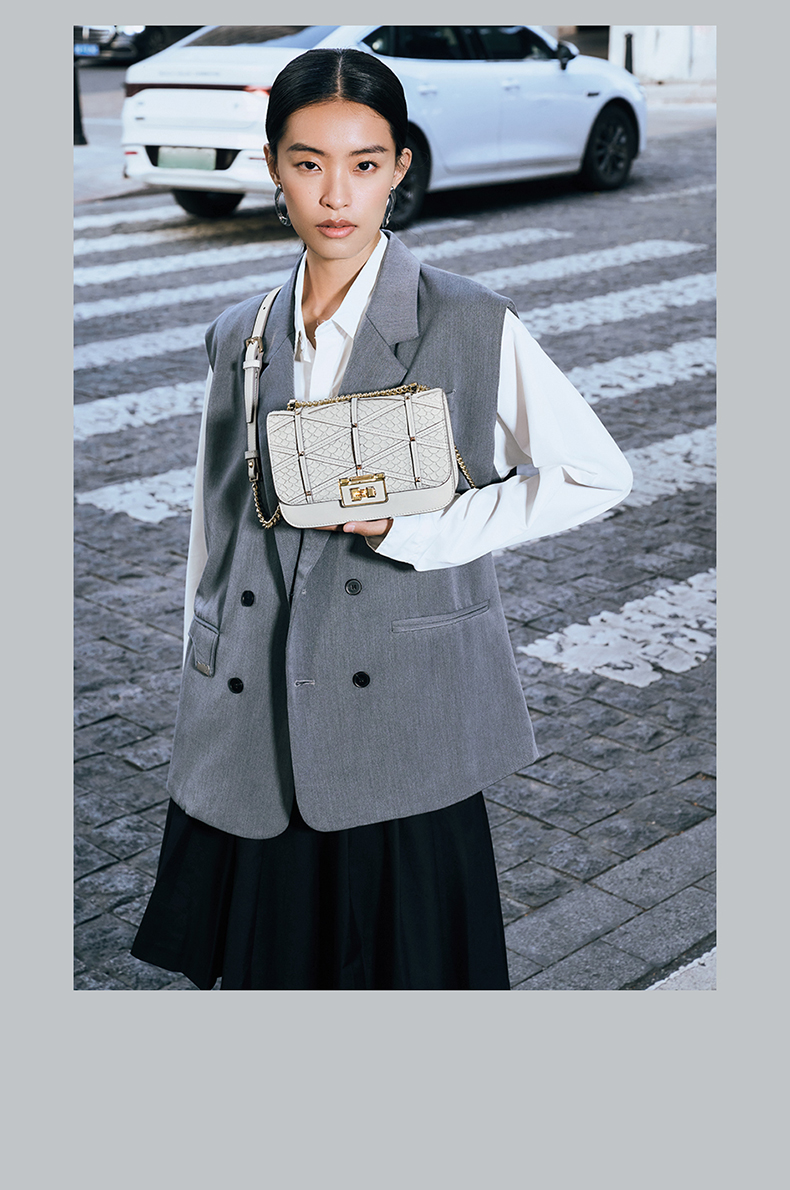 明治女包真皮小方包轻奢高级感斜挎包头层牛皮单肩包链条腋下包新