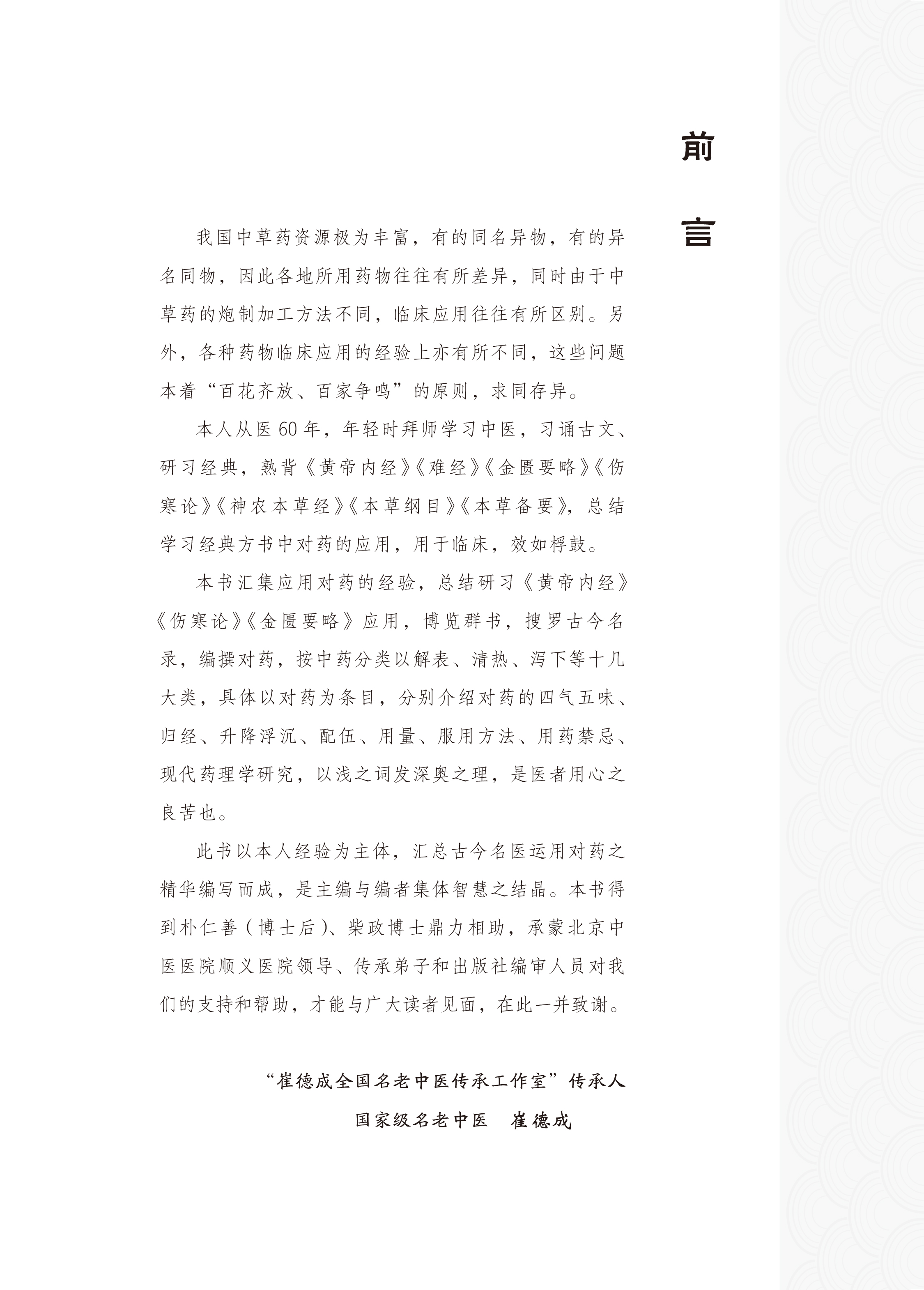 名家对药荟萃举隅 崔德成 王巍 崔丽平 主编 北医社