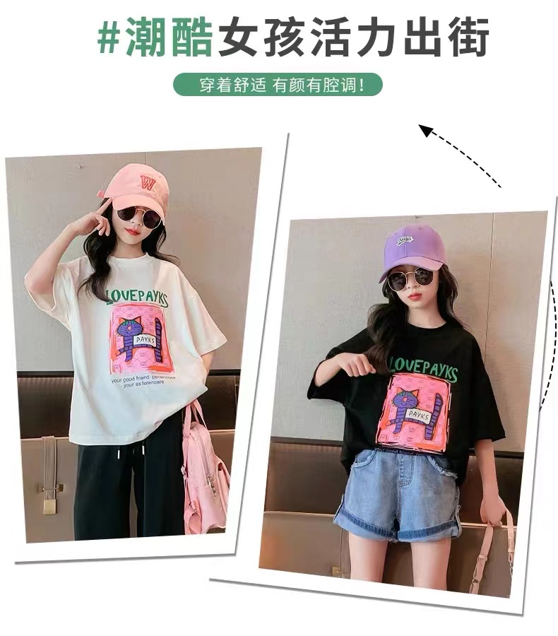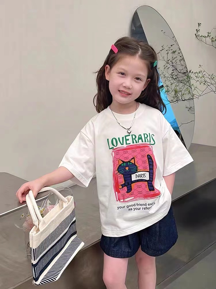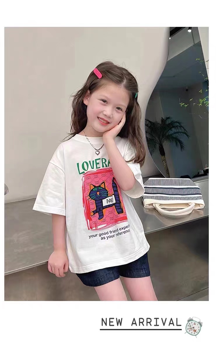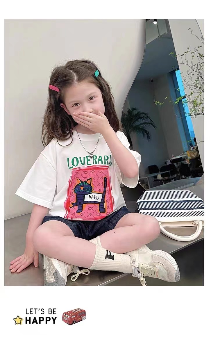 2件39.9元【童T】男童女童同款100%棉-(LOVE卡通猫)印花T恤-喜出
