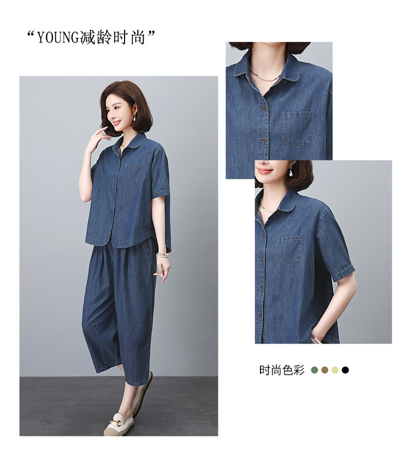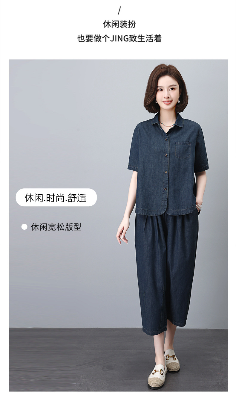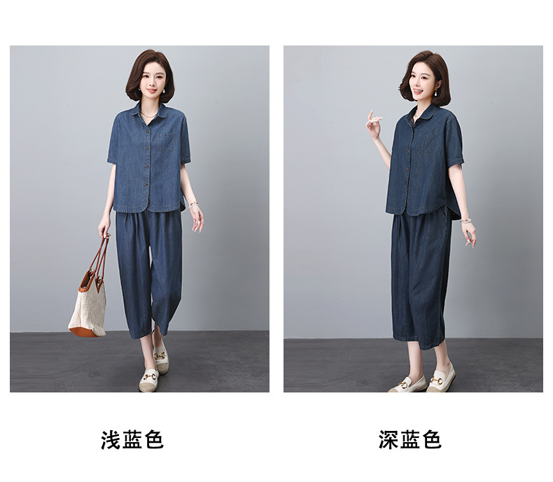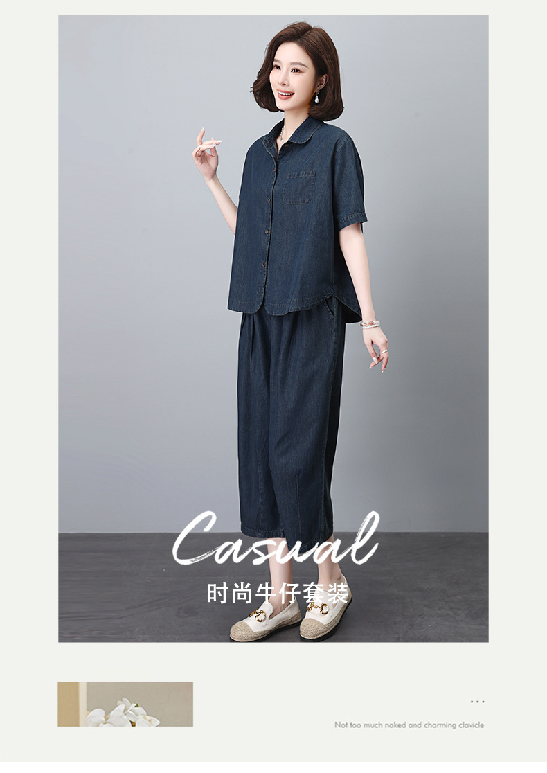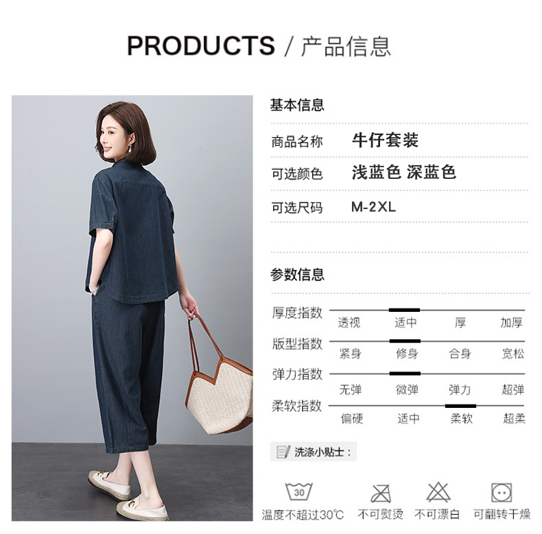 中年妈妈薄款牛仔套装,时尚减龄洋气两件套HR-YJT85032