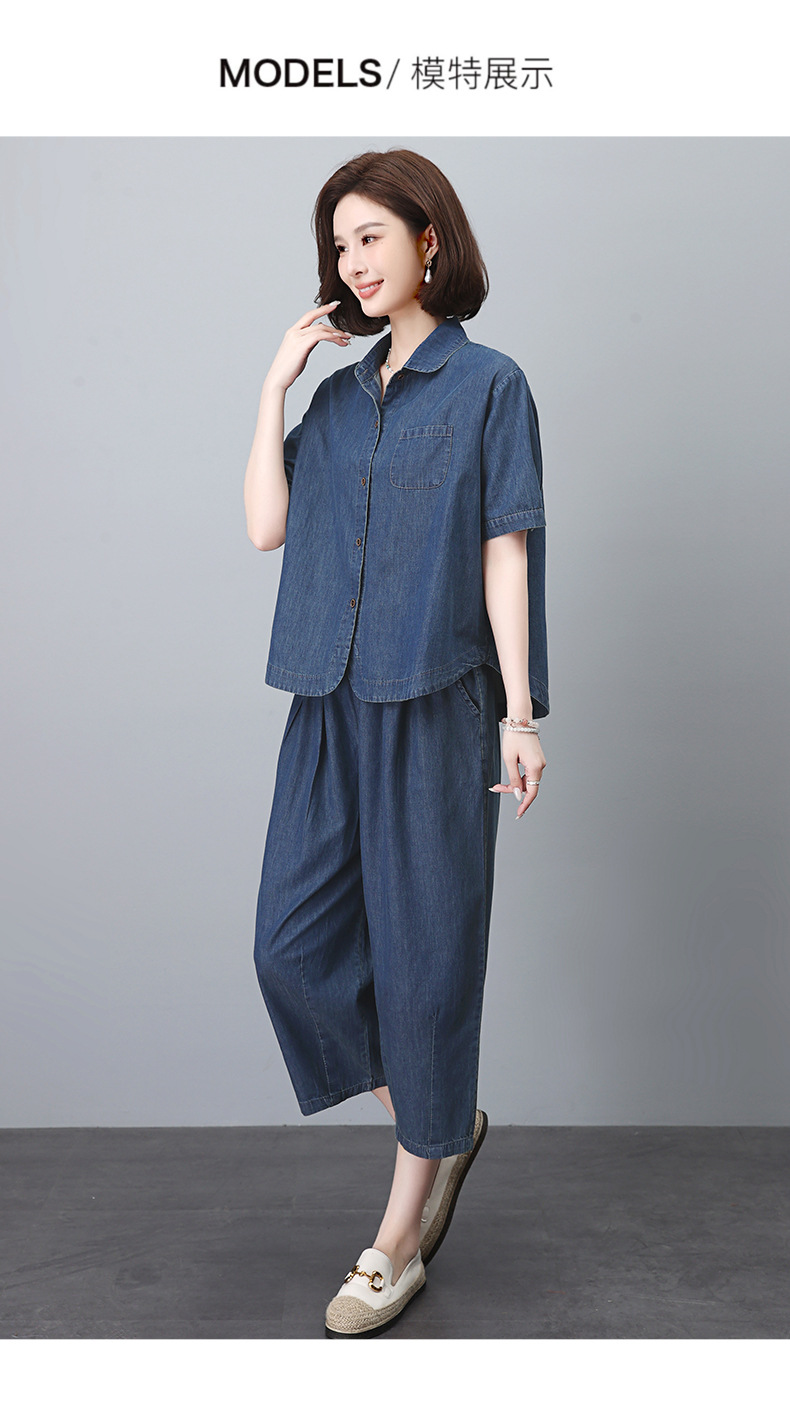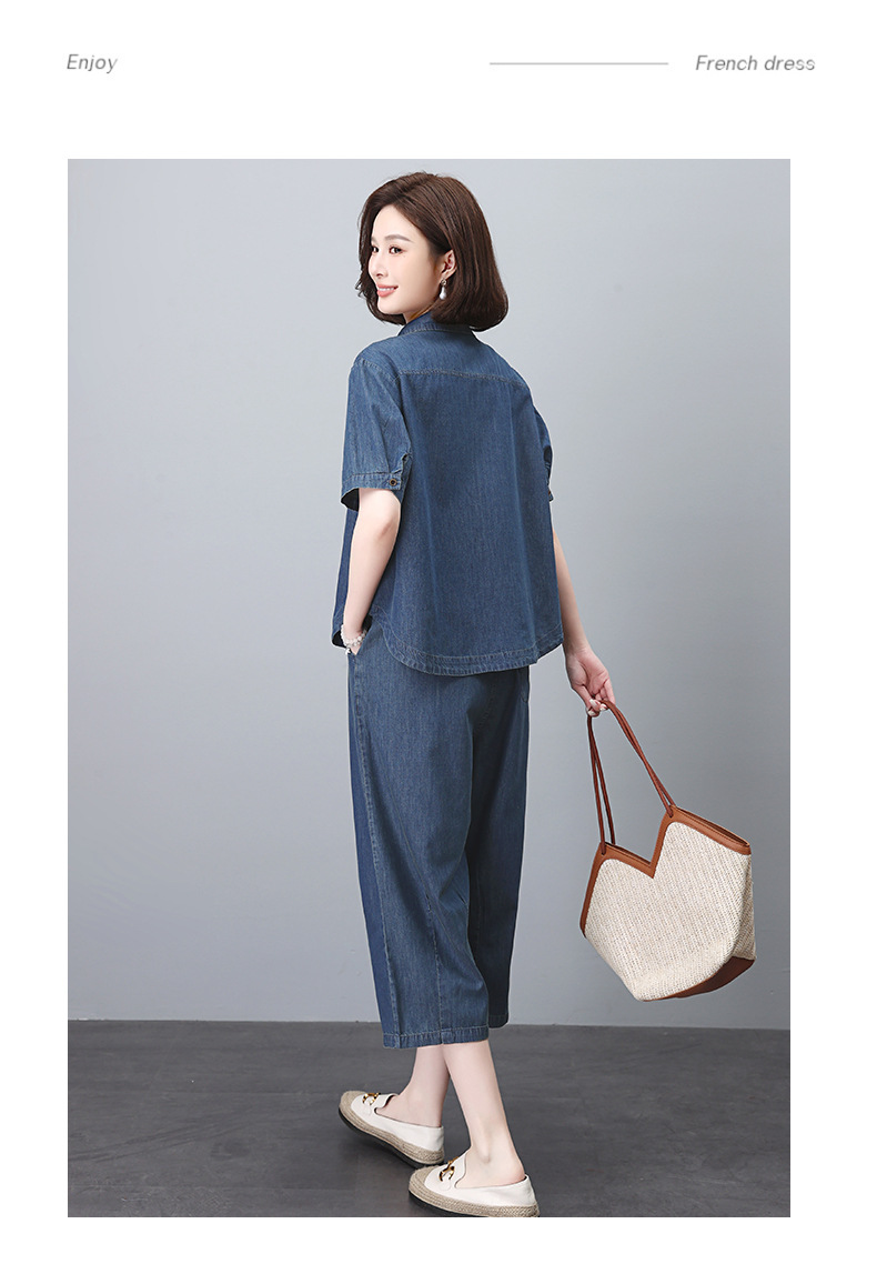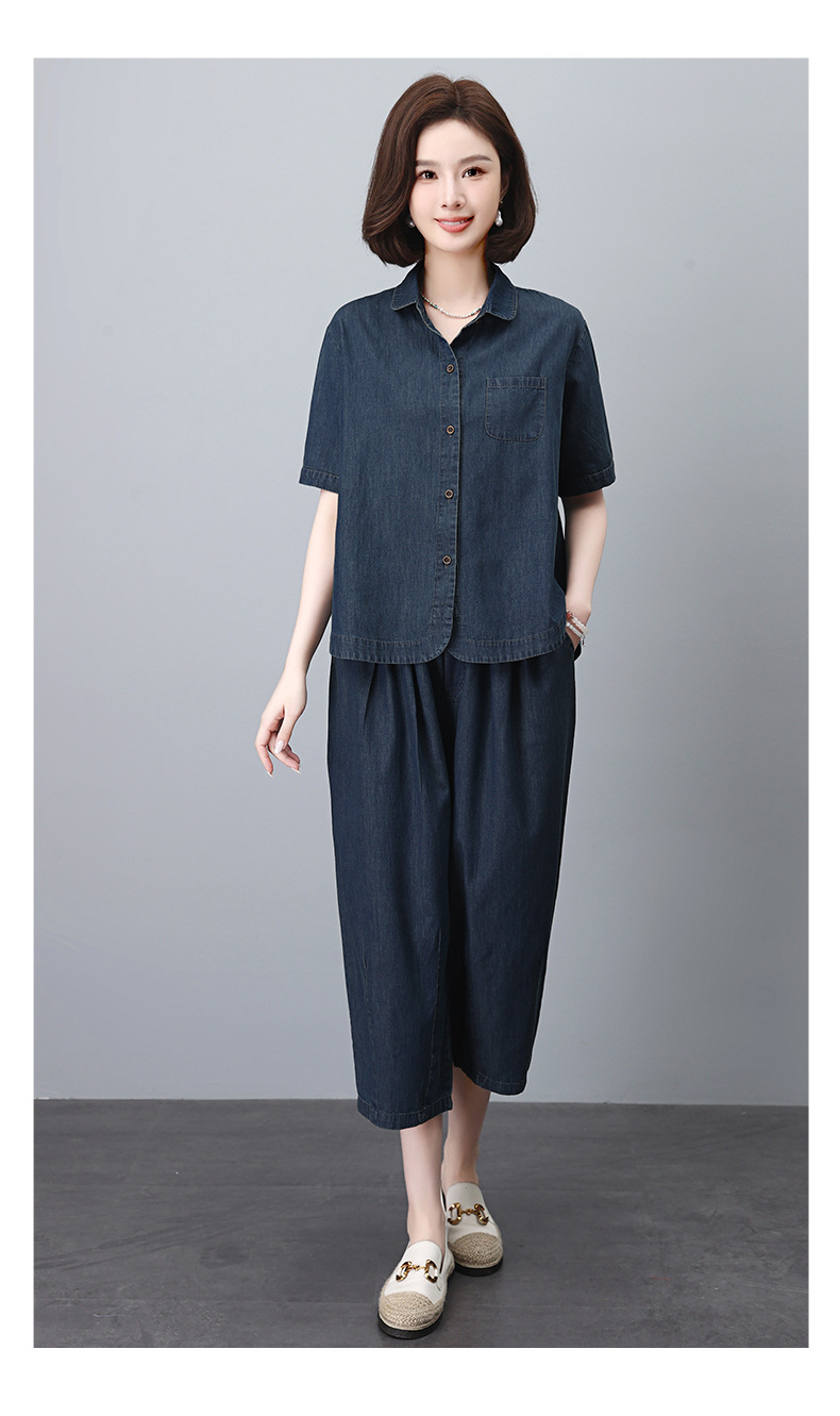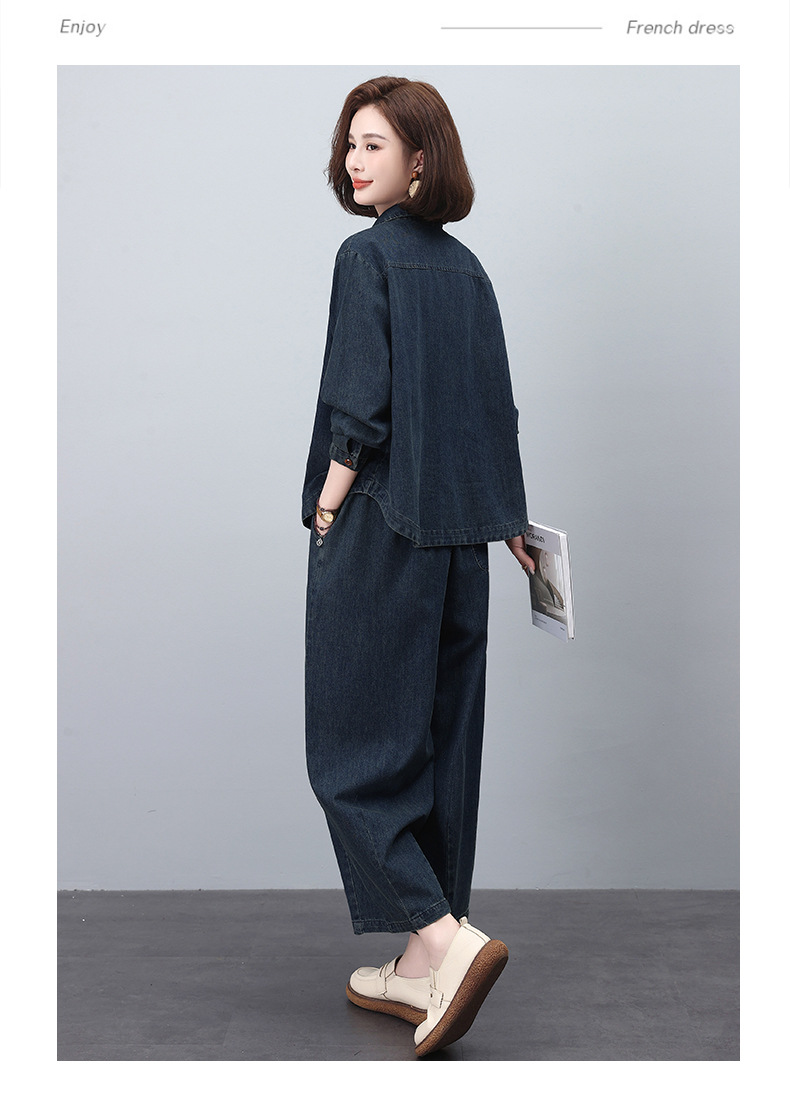 中年妈妈薄款牛仔套装,时尚减龄洋气两件套HR-YJT85032