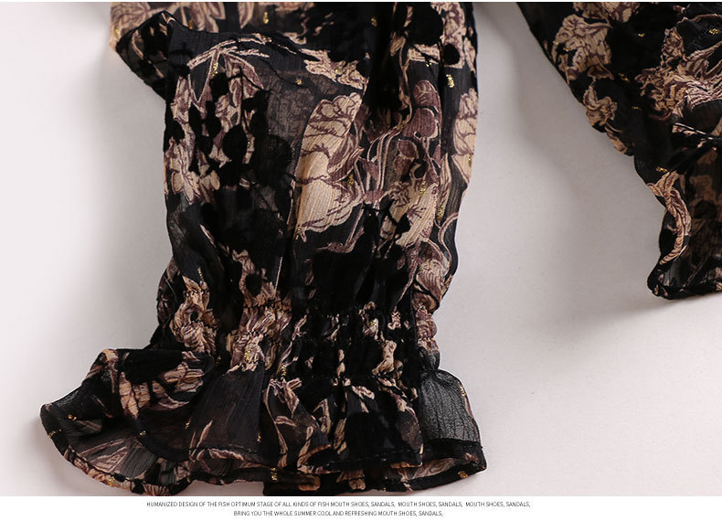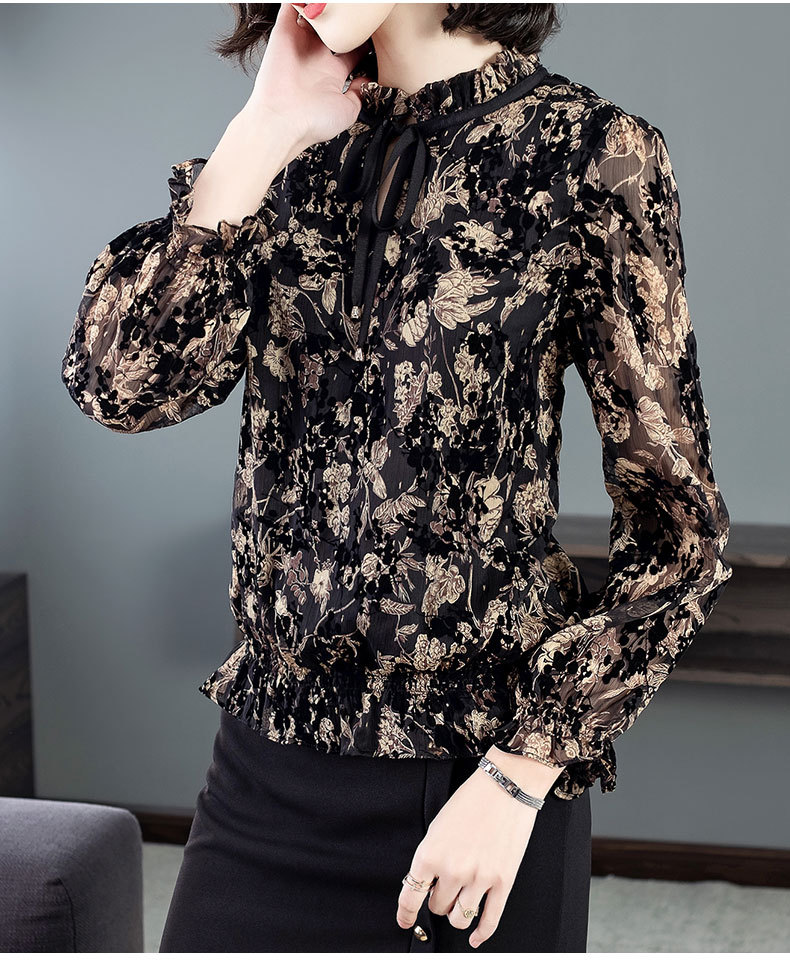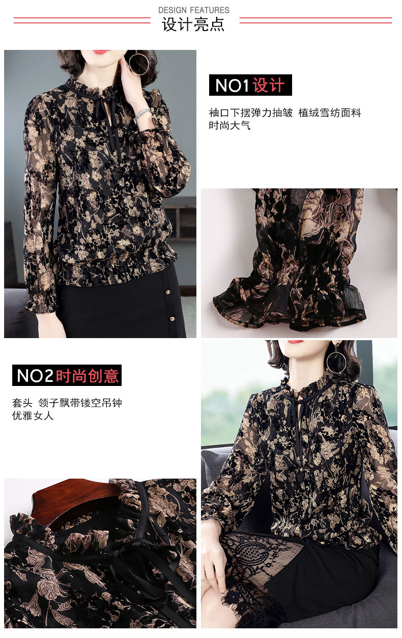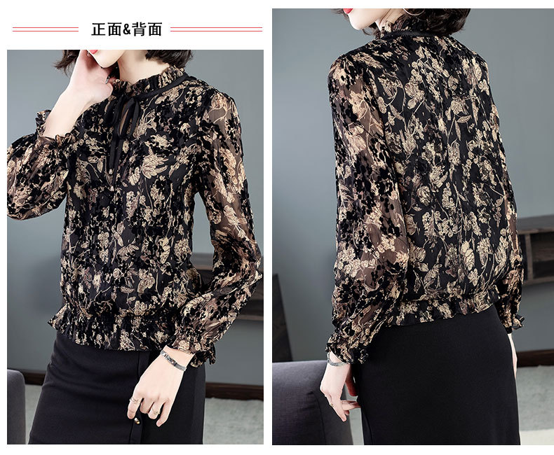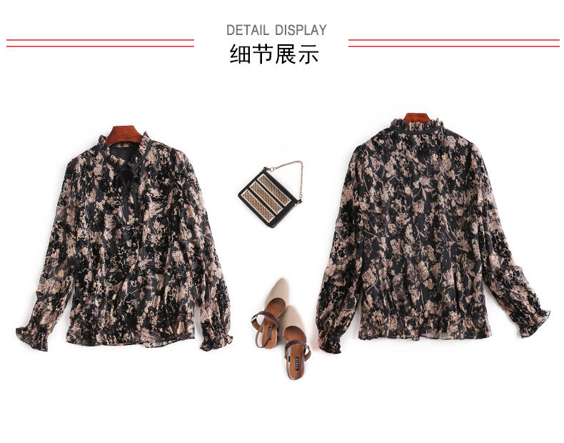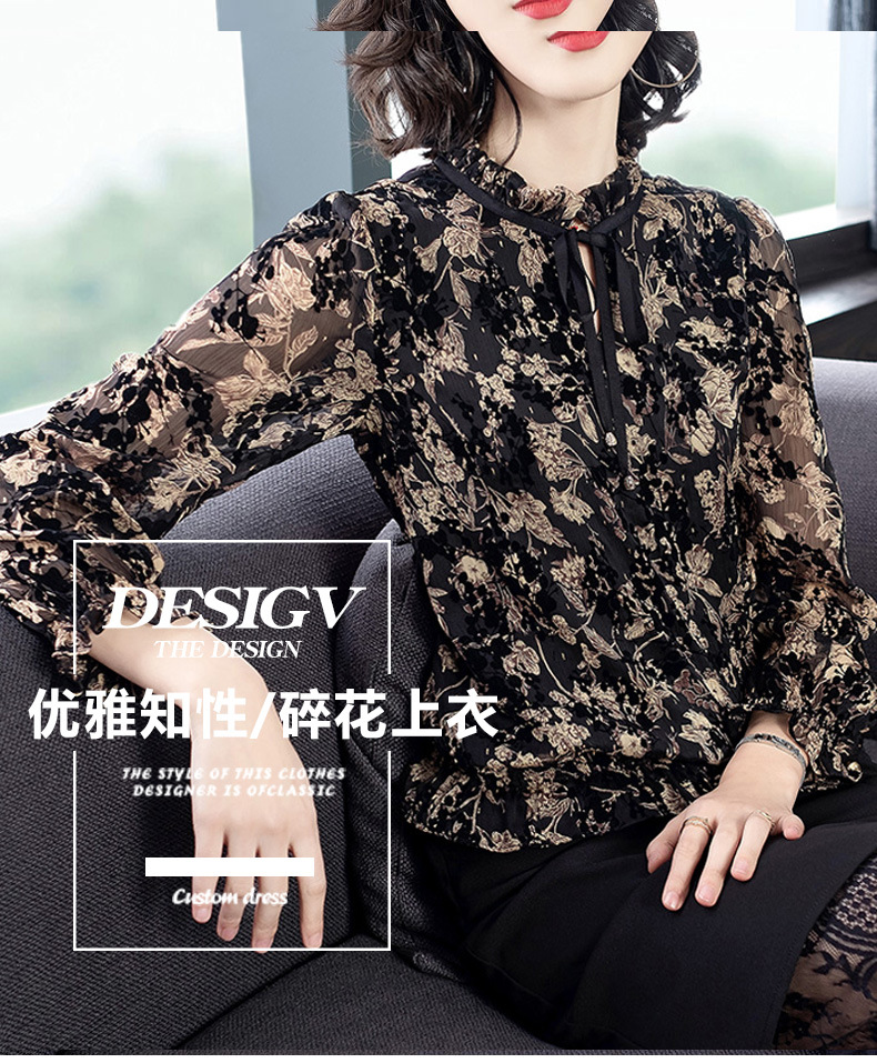 DD-260春洋气百搭长袖时尚宽松女土碎花雪纺衬衫