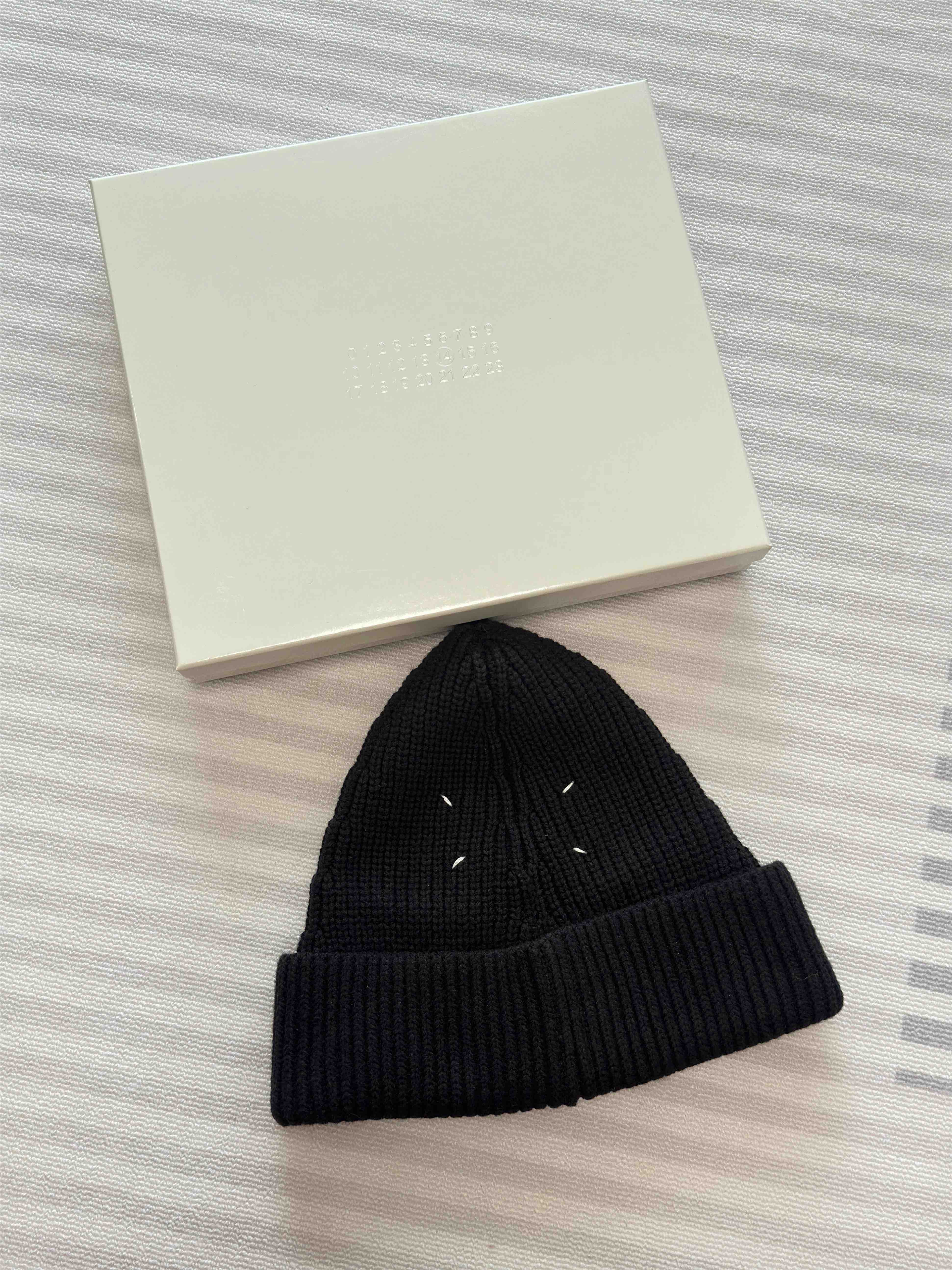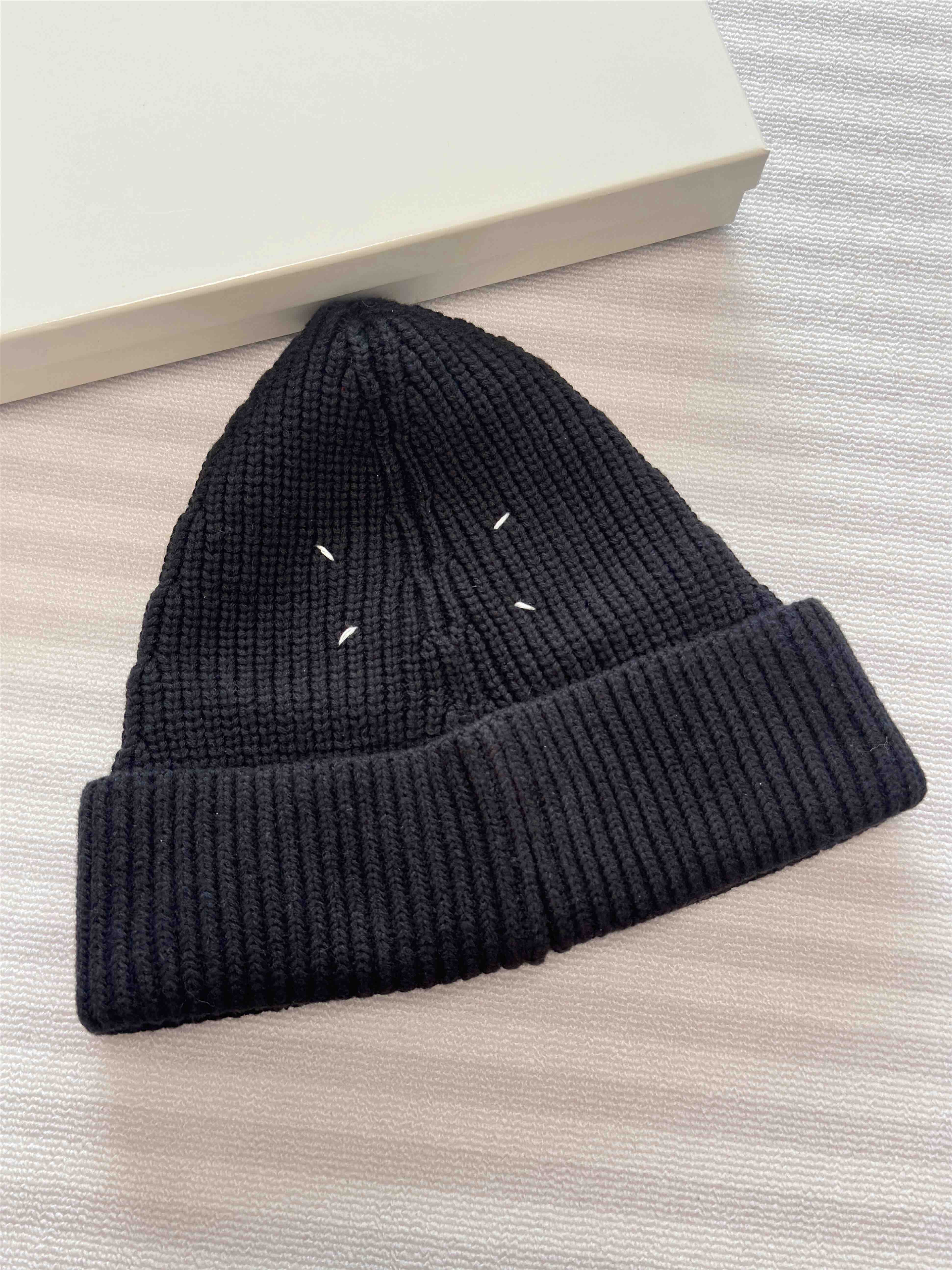 Margiela新款mm6马吉拉纯色手工缝线四角标Logo针织帽男女同款