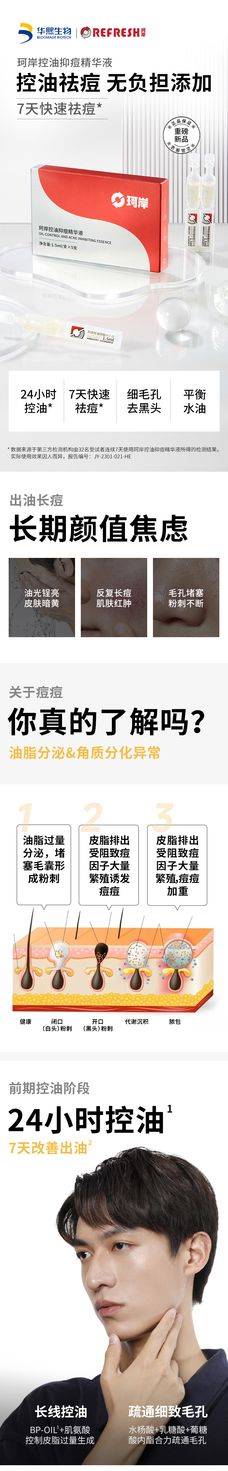 【品牌直发】华熙直营珂岸控油抑痘精华液次抛控油祛痘补水修护细致毛孔1.5ml*5支/盒