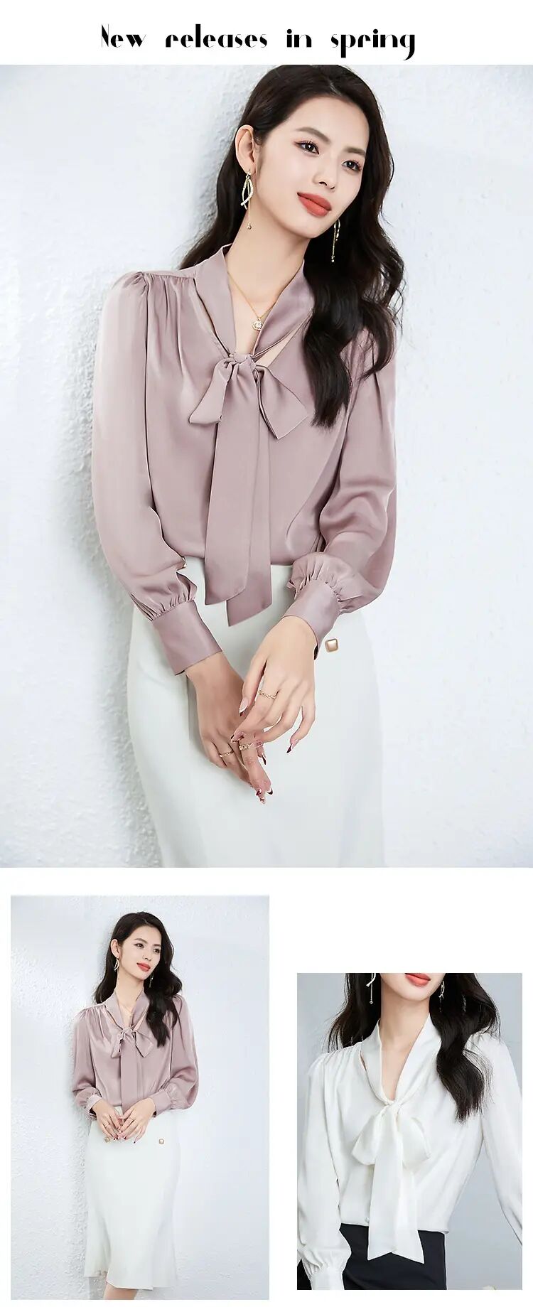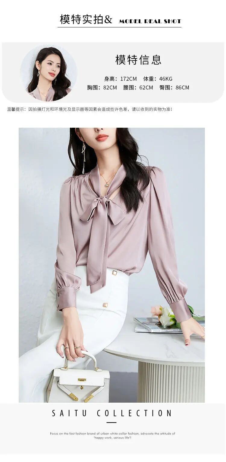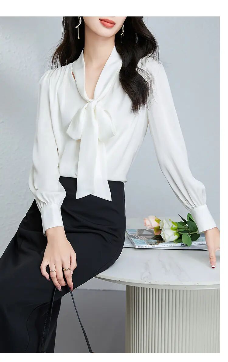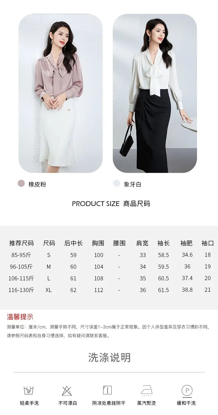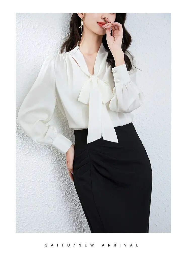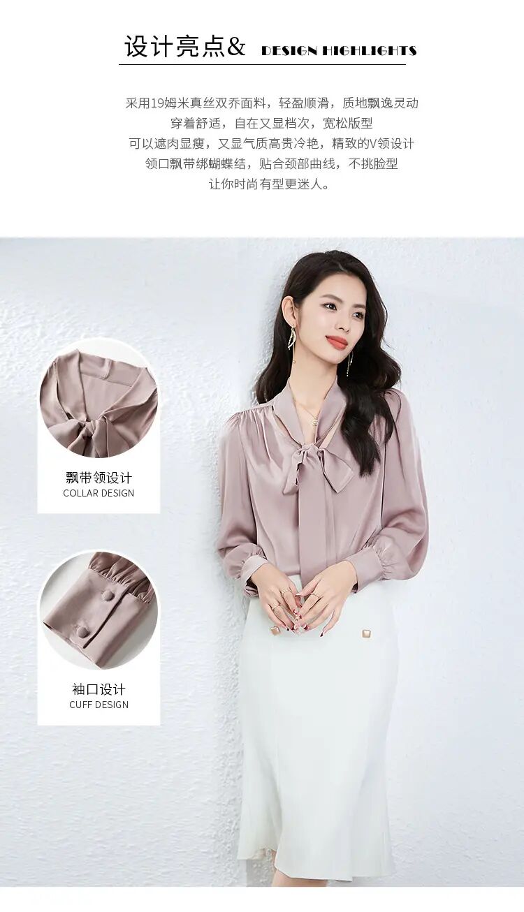 【高货kbnq】全新升级【铂金会员358/天猫479/差价121】(14922) 洛诗琳桑蚕丝衬衣女春季重磅真丝双乔法式V领蝴蝶结衬衫
