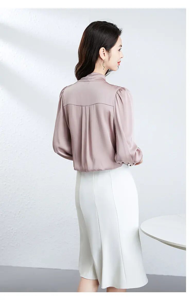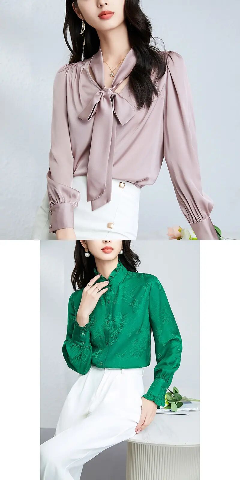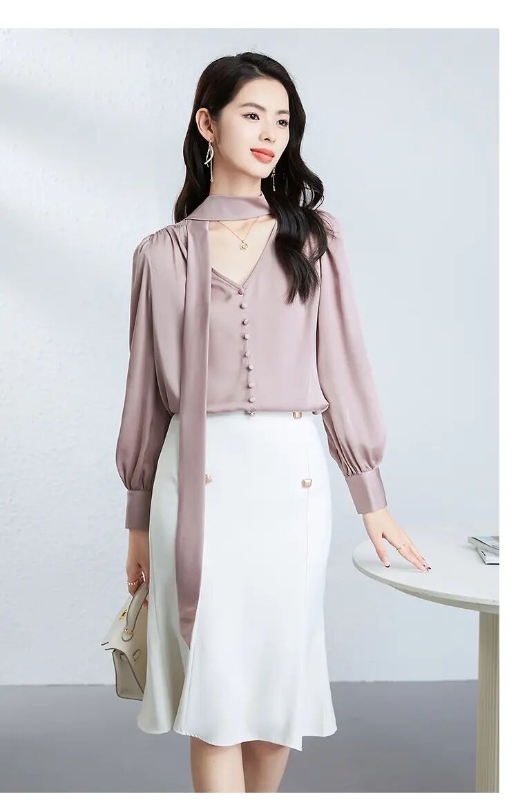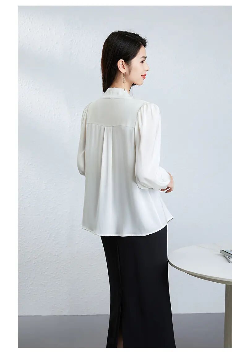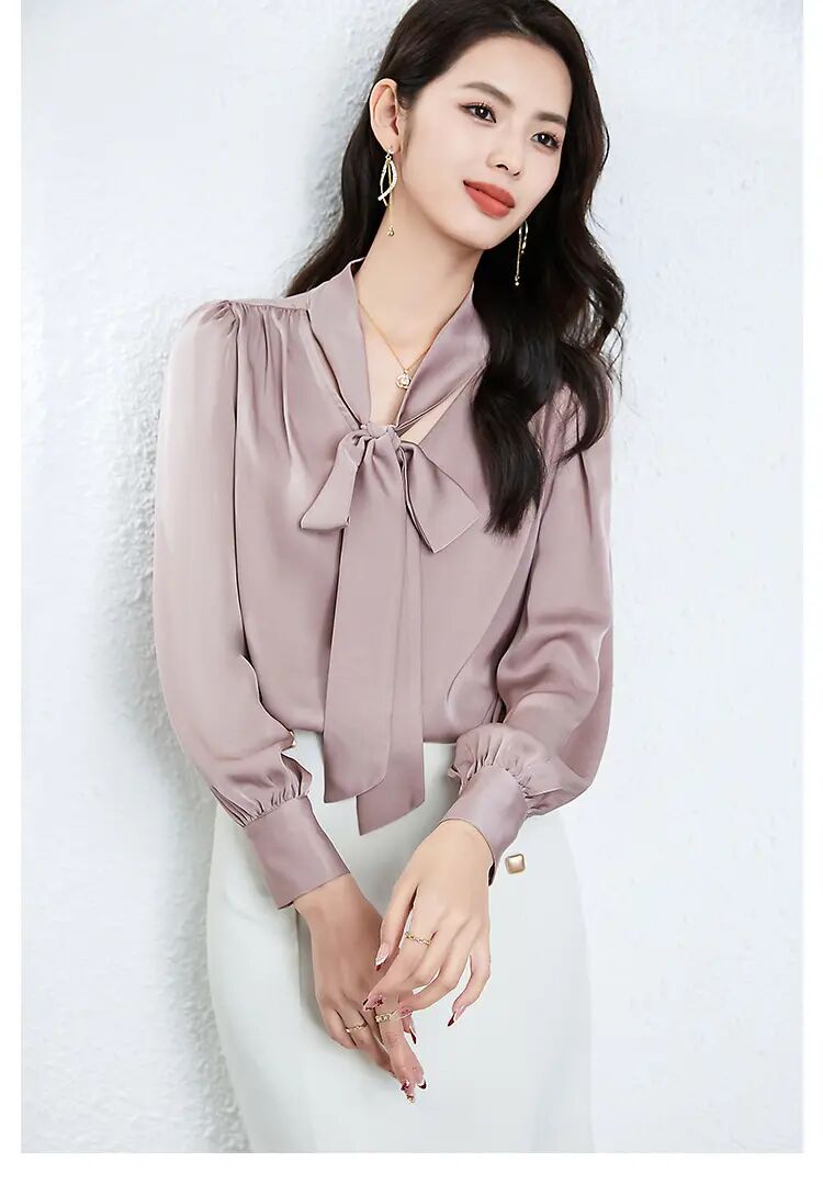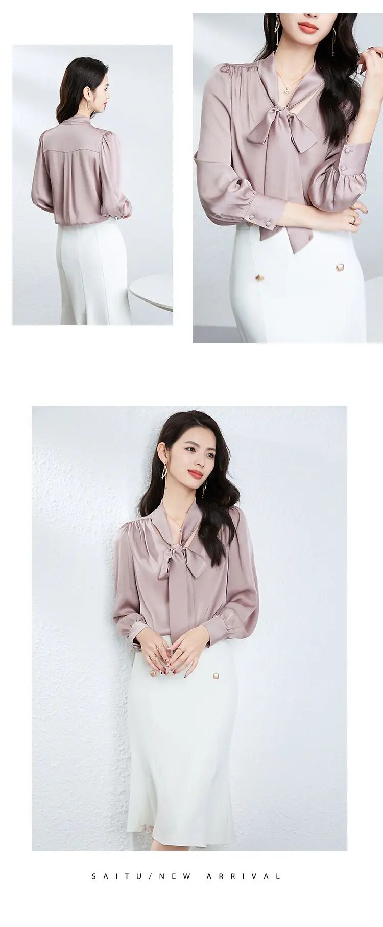 【高货kbnq】全新升级【铂金会员358/天猫479/差价121】(14922) 洛诗琳桑蚕丝衬衣女春季重磅真丝双乔法式V领蝴蝶结衬衫
