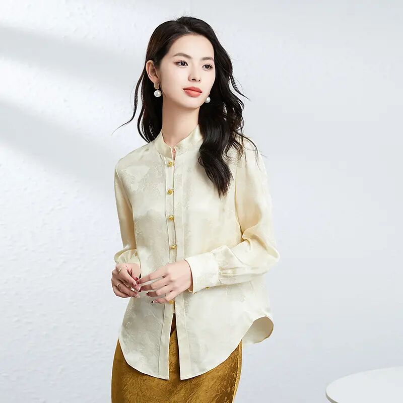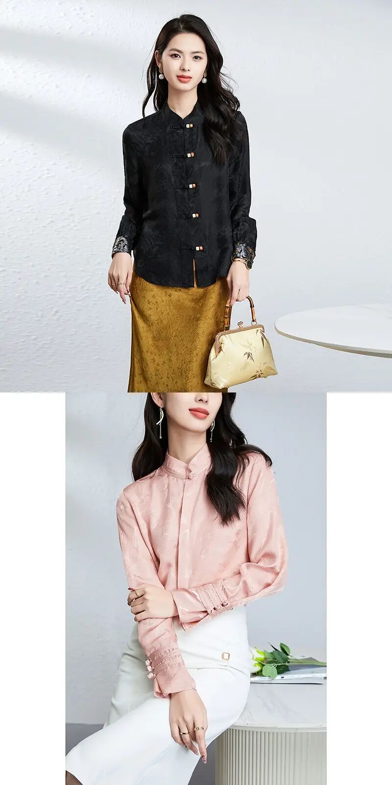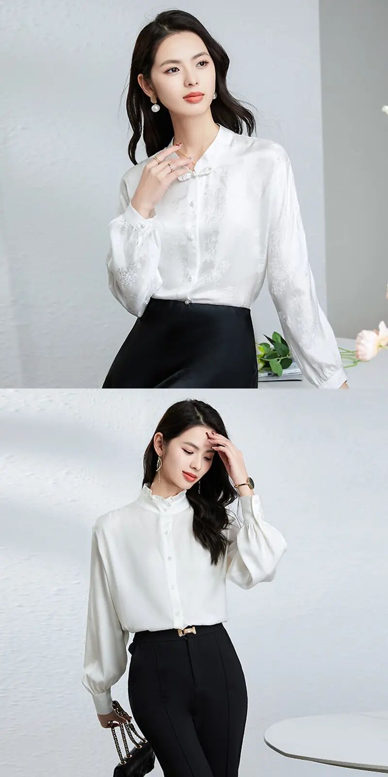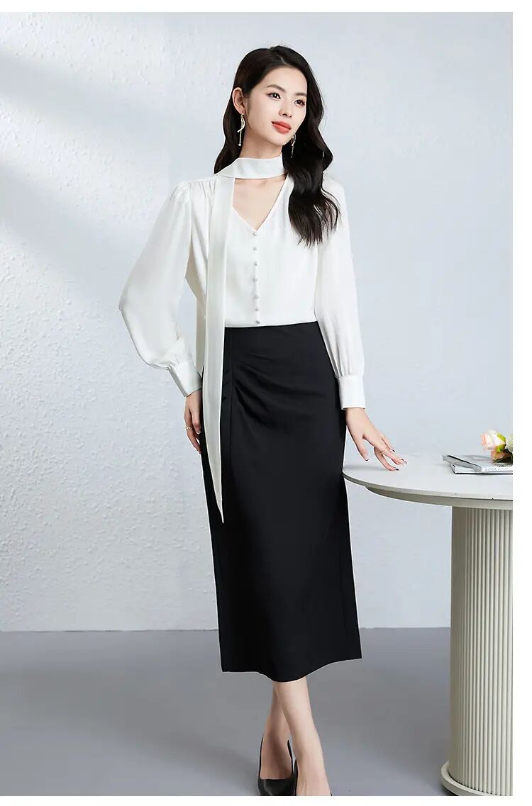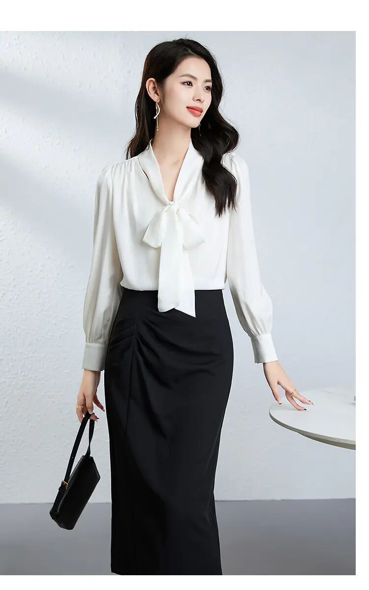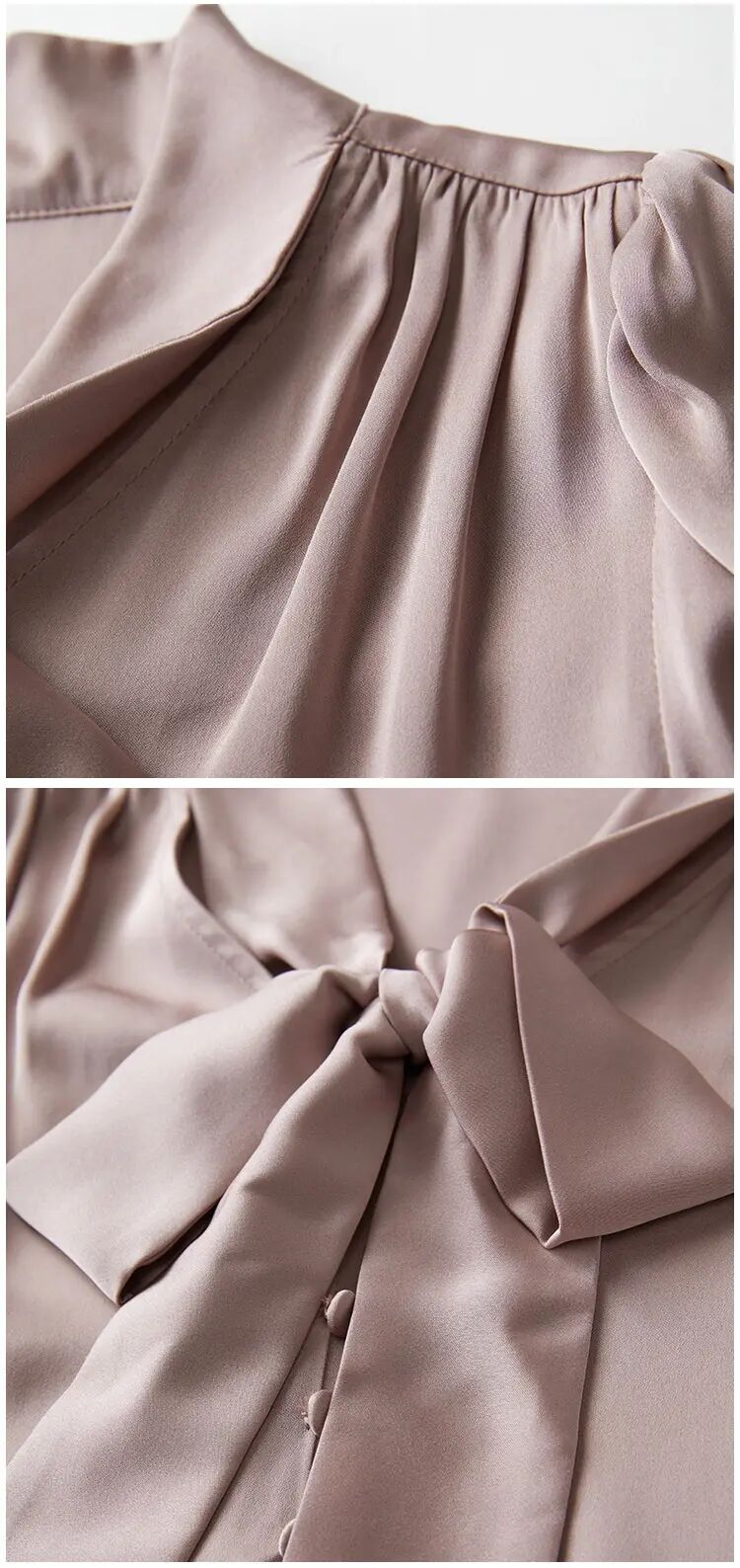 【高货kbnq】全新升级【铂金会员358/天猫479/差价121】(14922) 洛诗琳桑蚕丝衬衣女春季重磅真丝双乔法式V领蝴蝶结衬衫