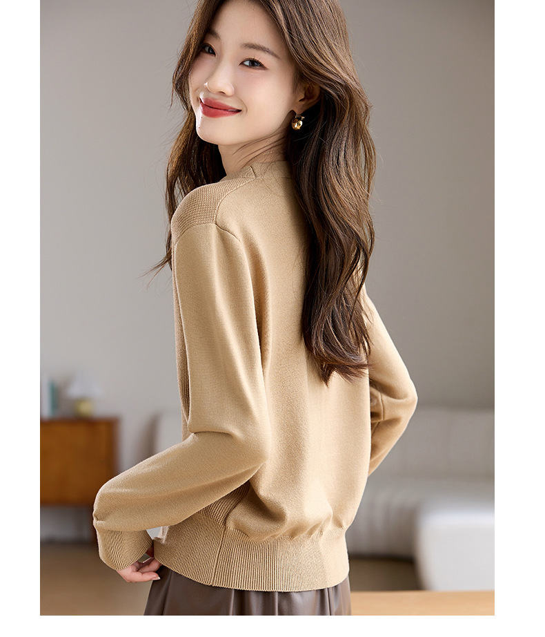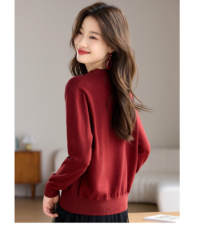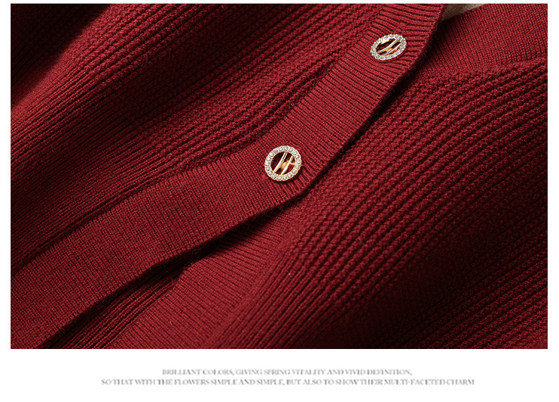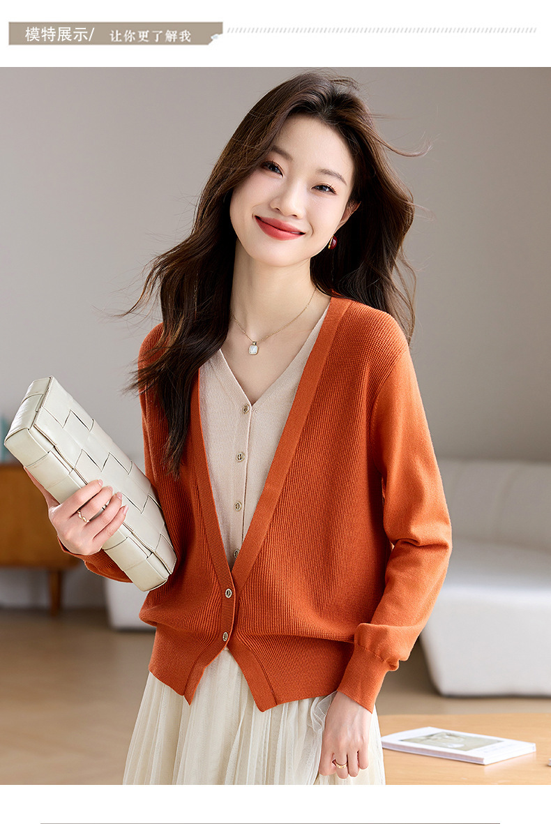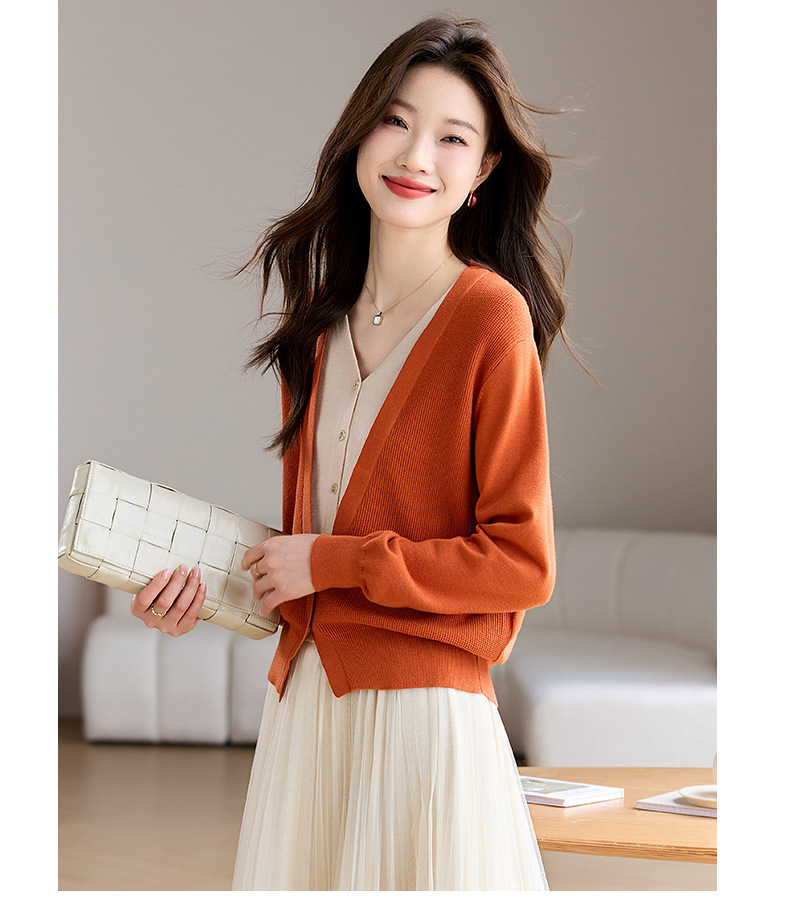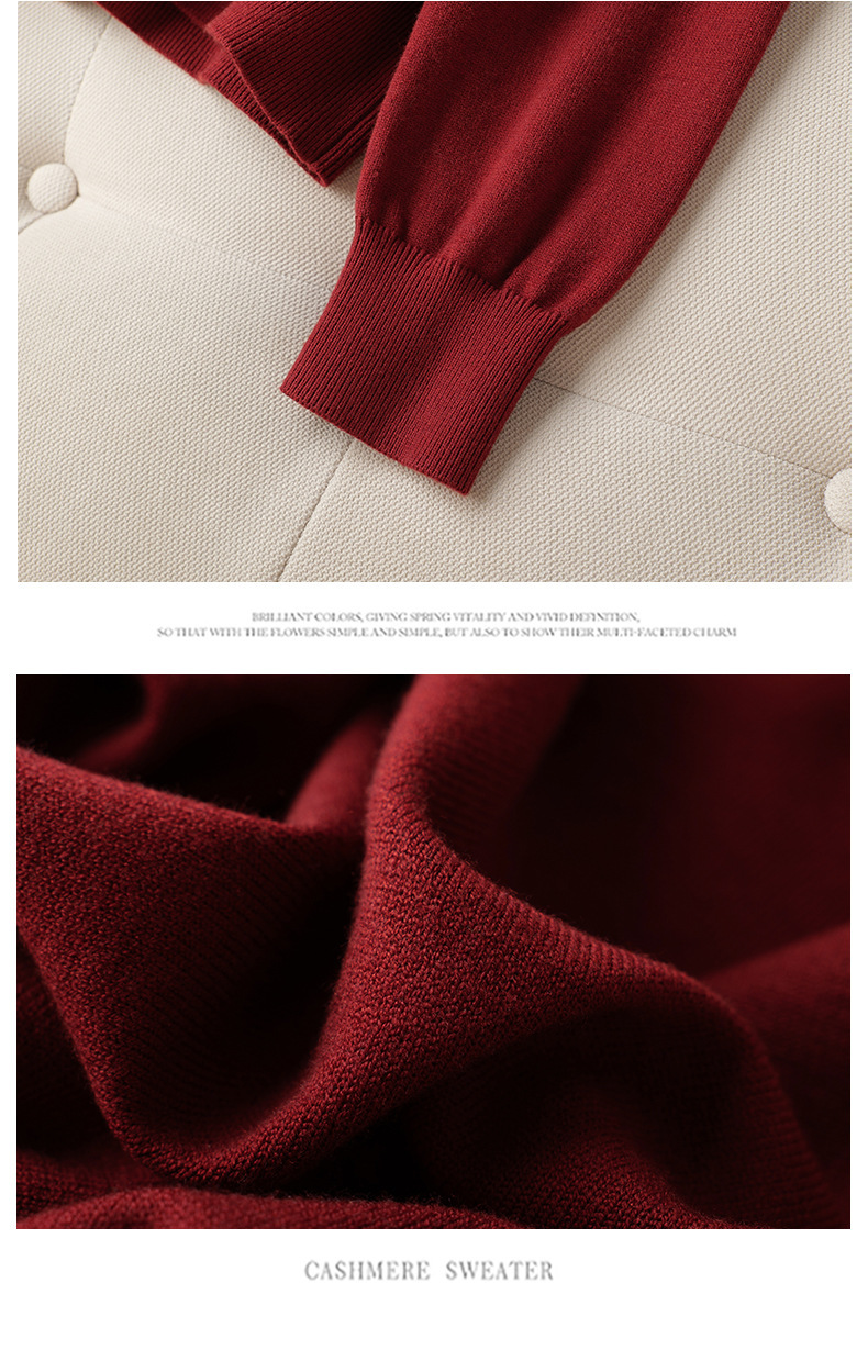CC-J417秋冬薄款羊毛短款撞色拼接2024新款红色毛衣v领假两件针织衫外套