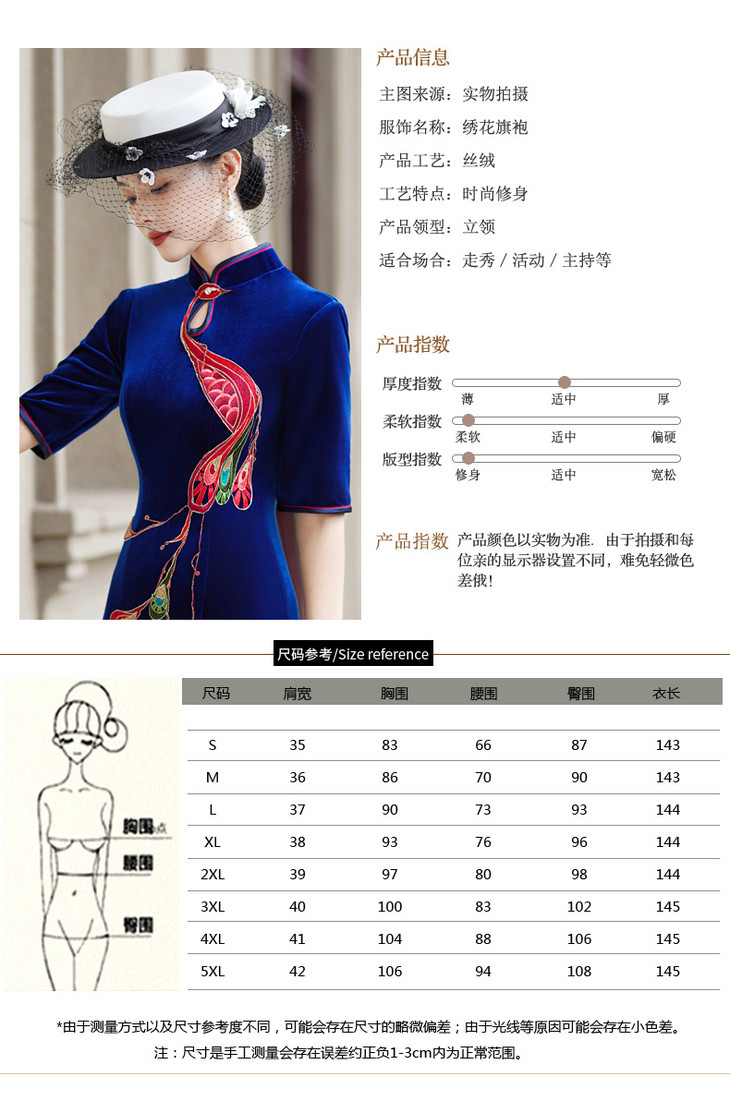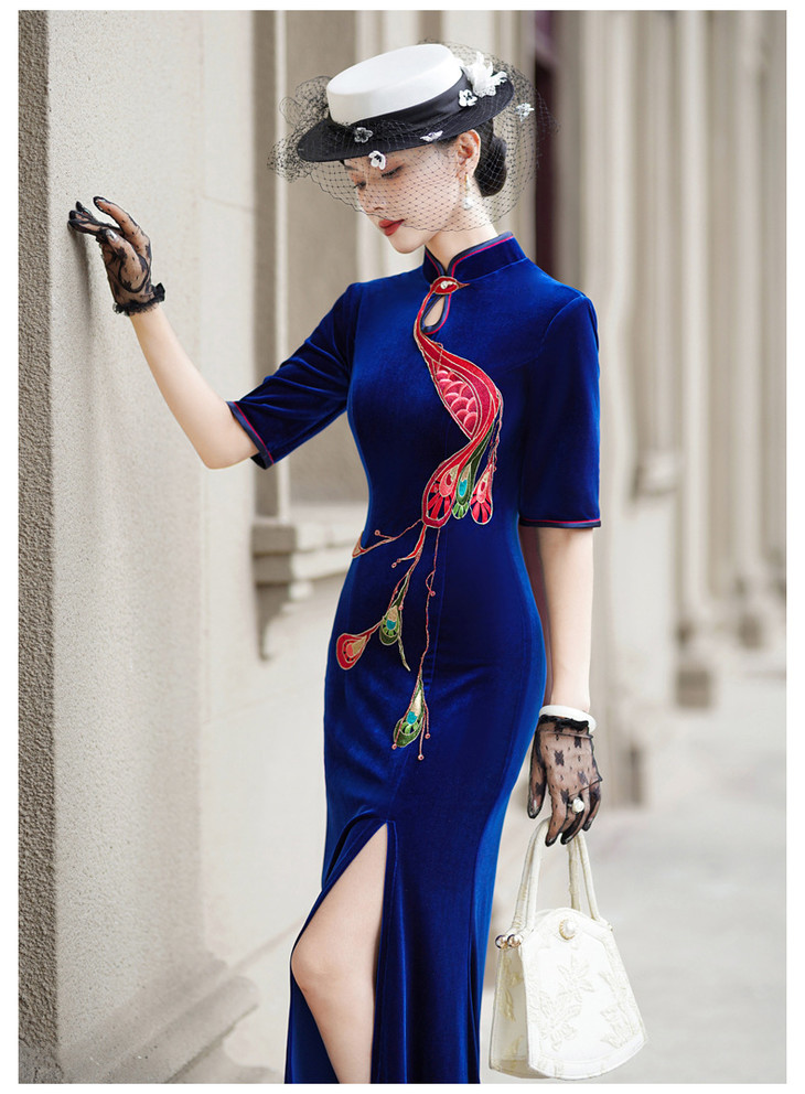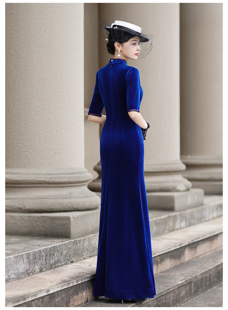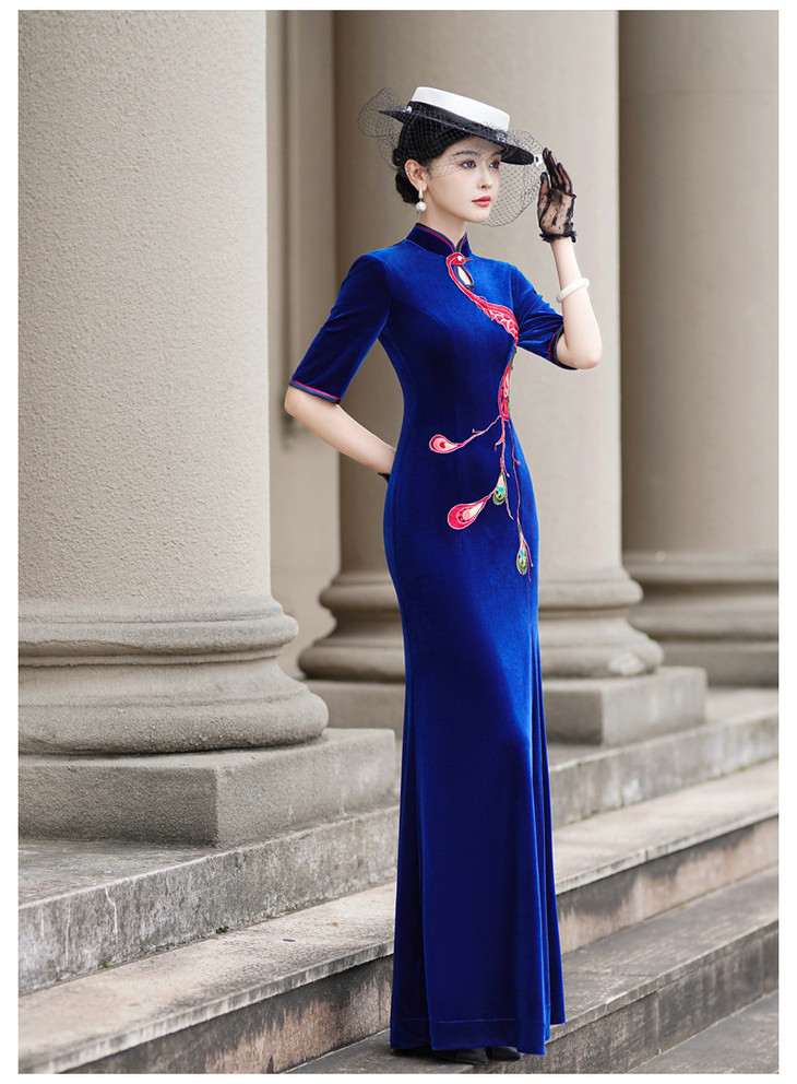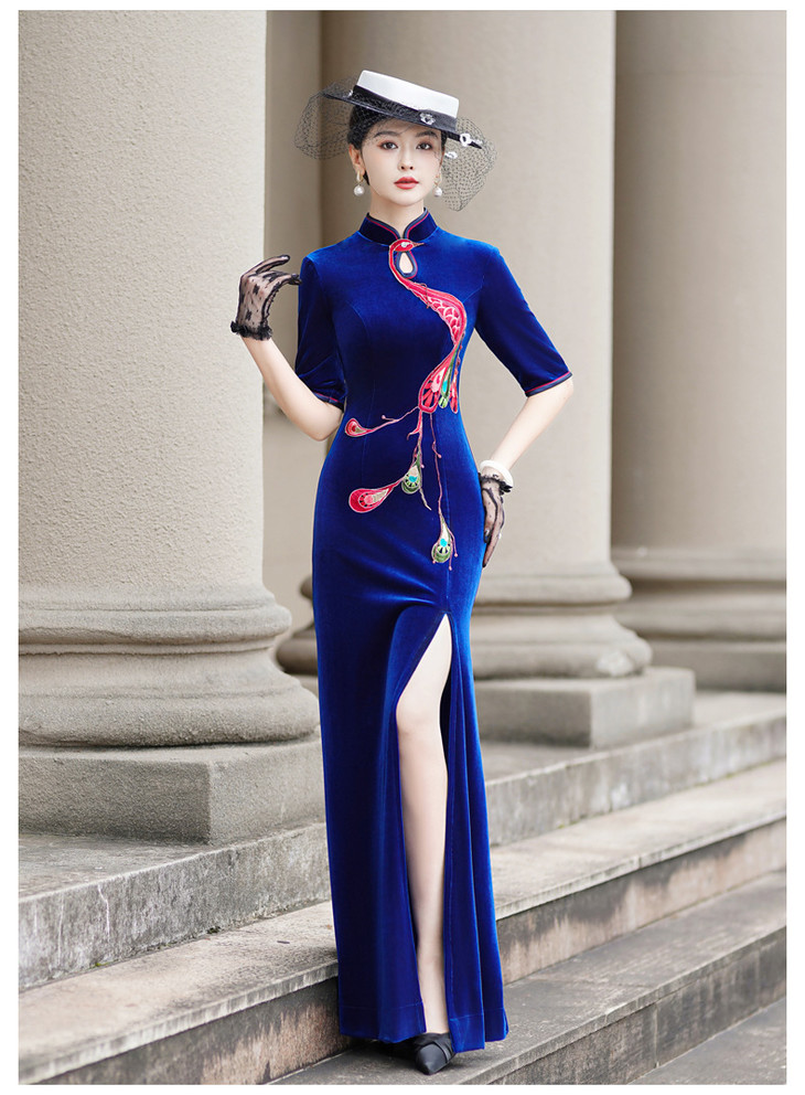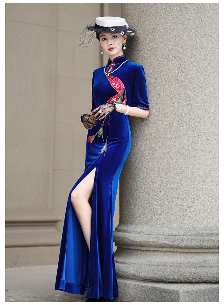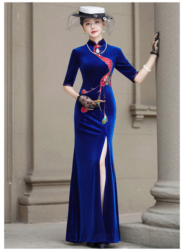 气质修身金丝绒高端改良单开叉加长款旗袍NL10-28