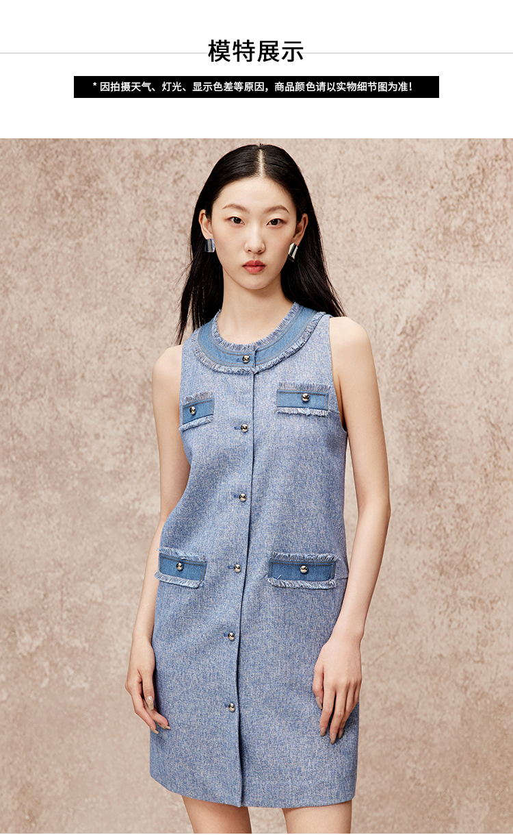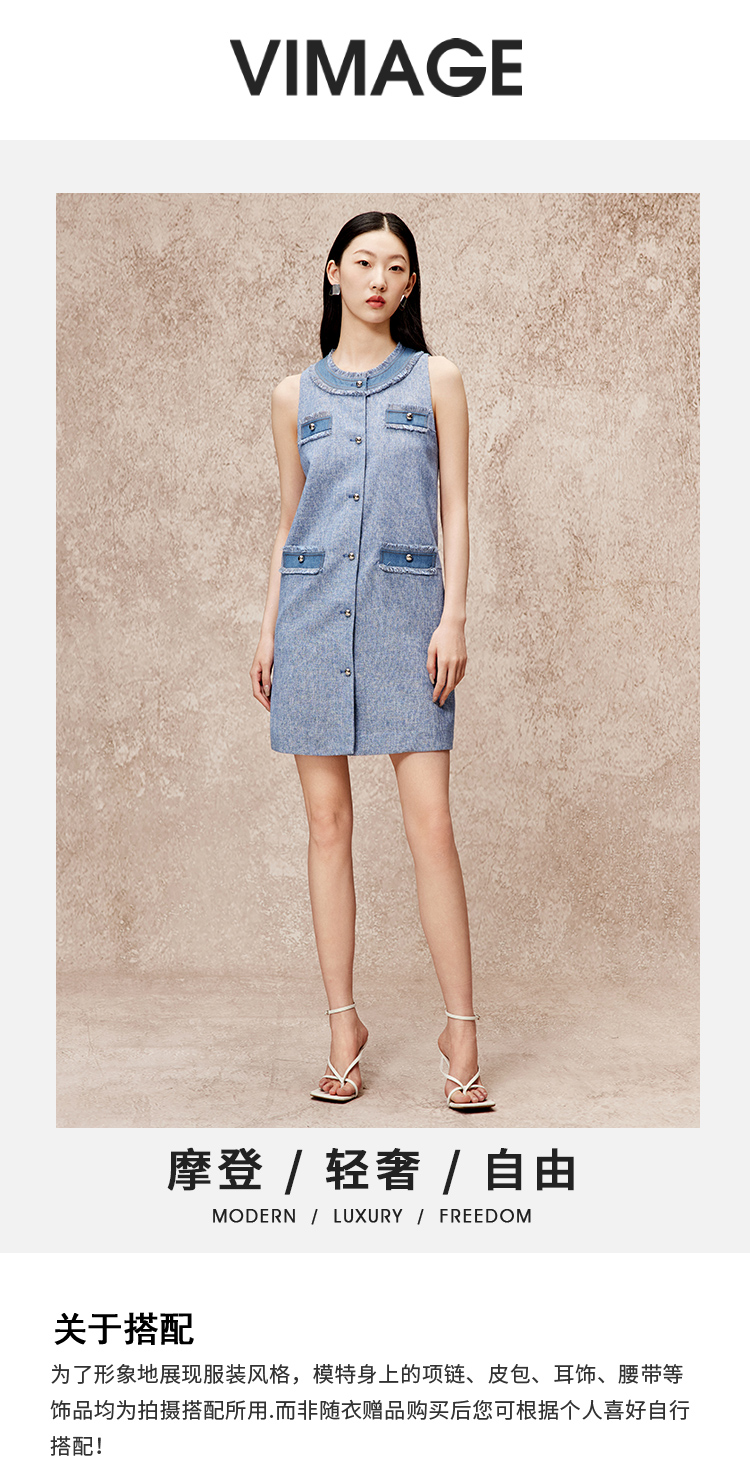 VIMAGE纬漫纪秋季新款复古法式气质显瘦高腰无袖连衣裙V2207803