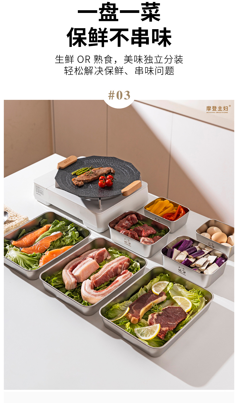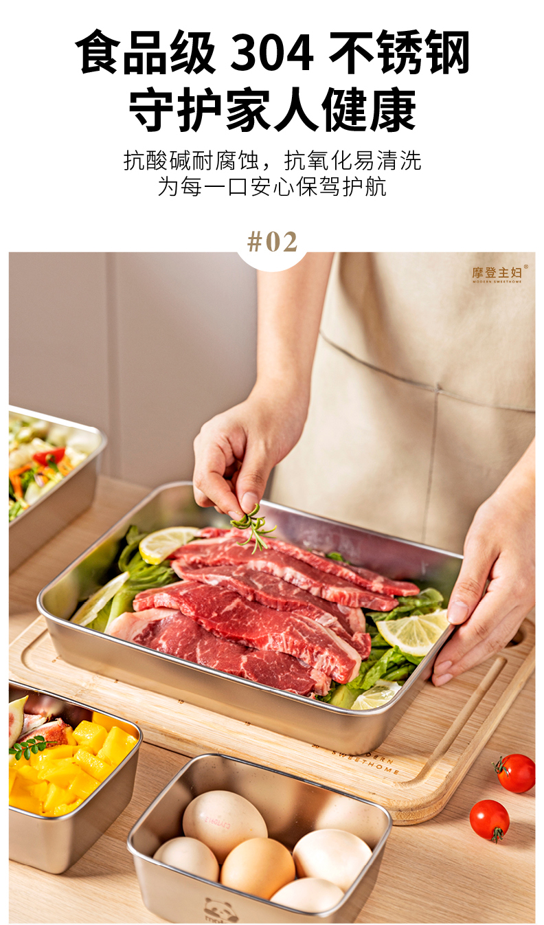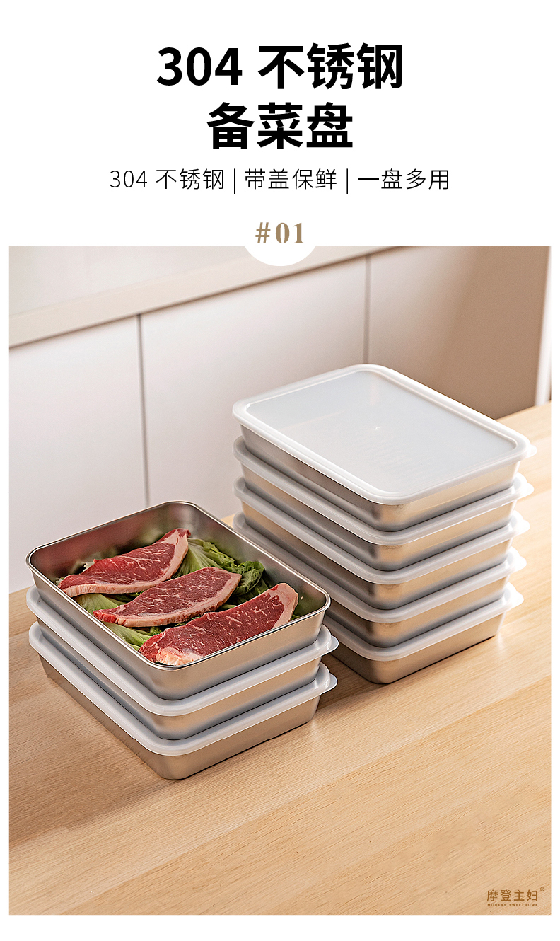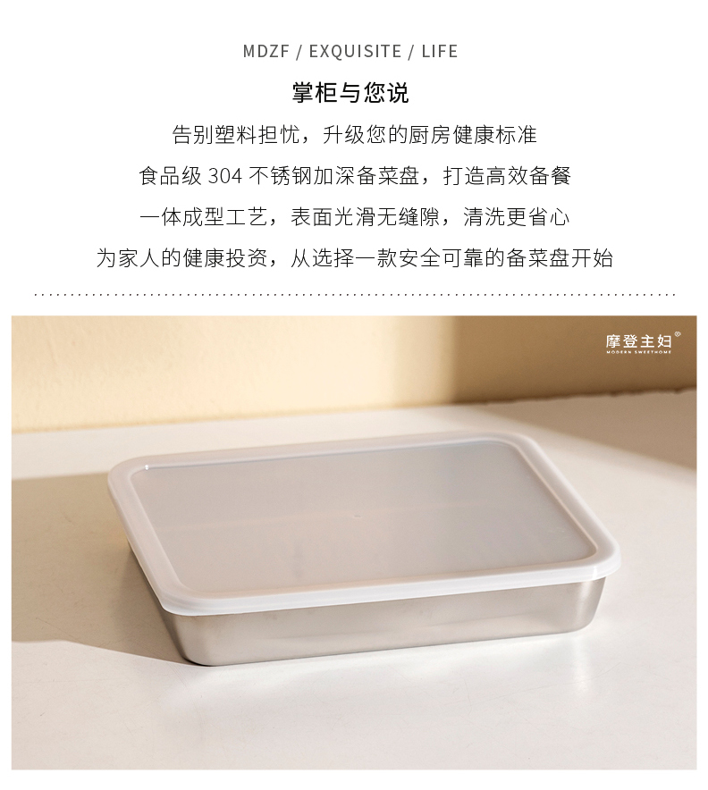 摩登主妇不锈钢备菜盘保鲜盒长方形盘子家用餐具托盘火锅配菜餐盘