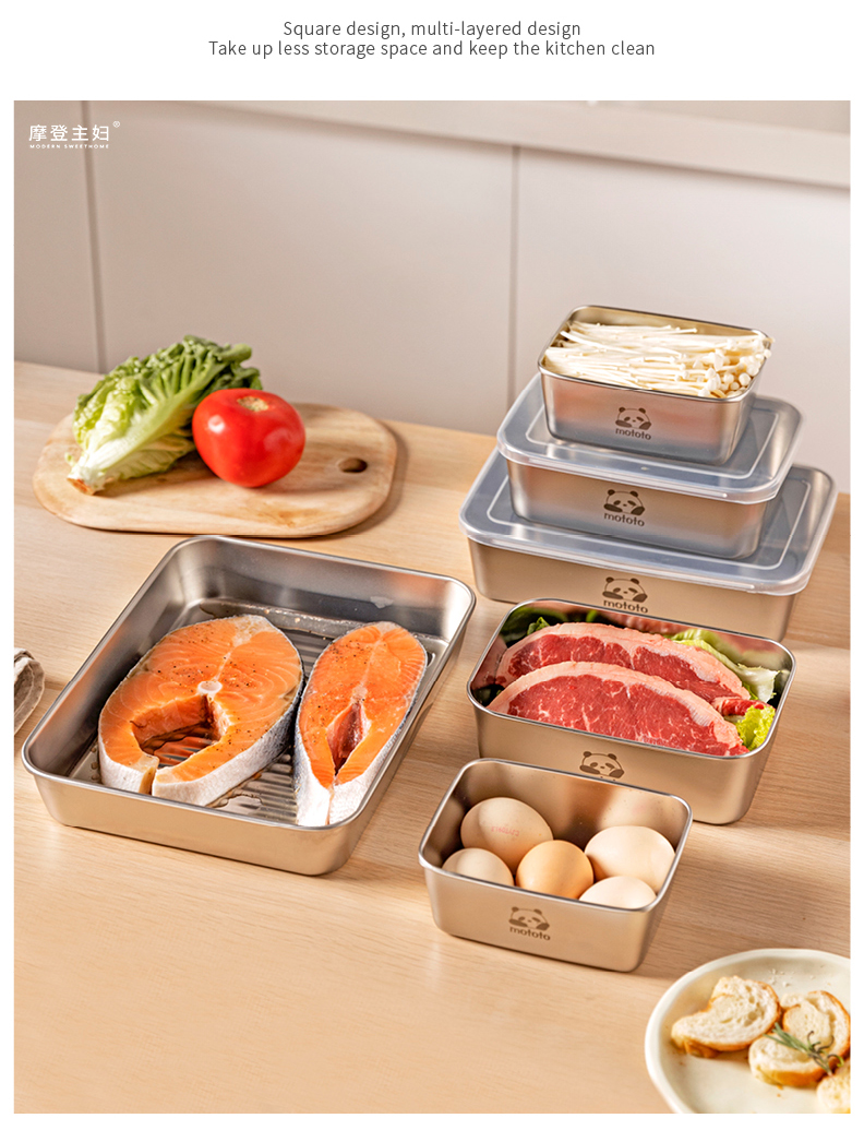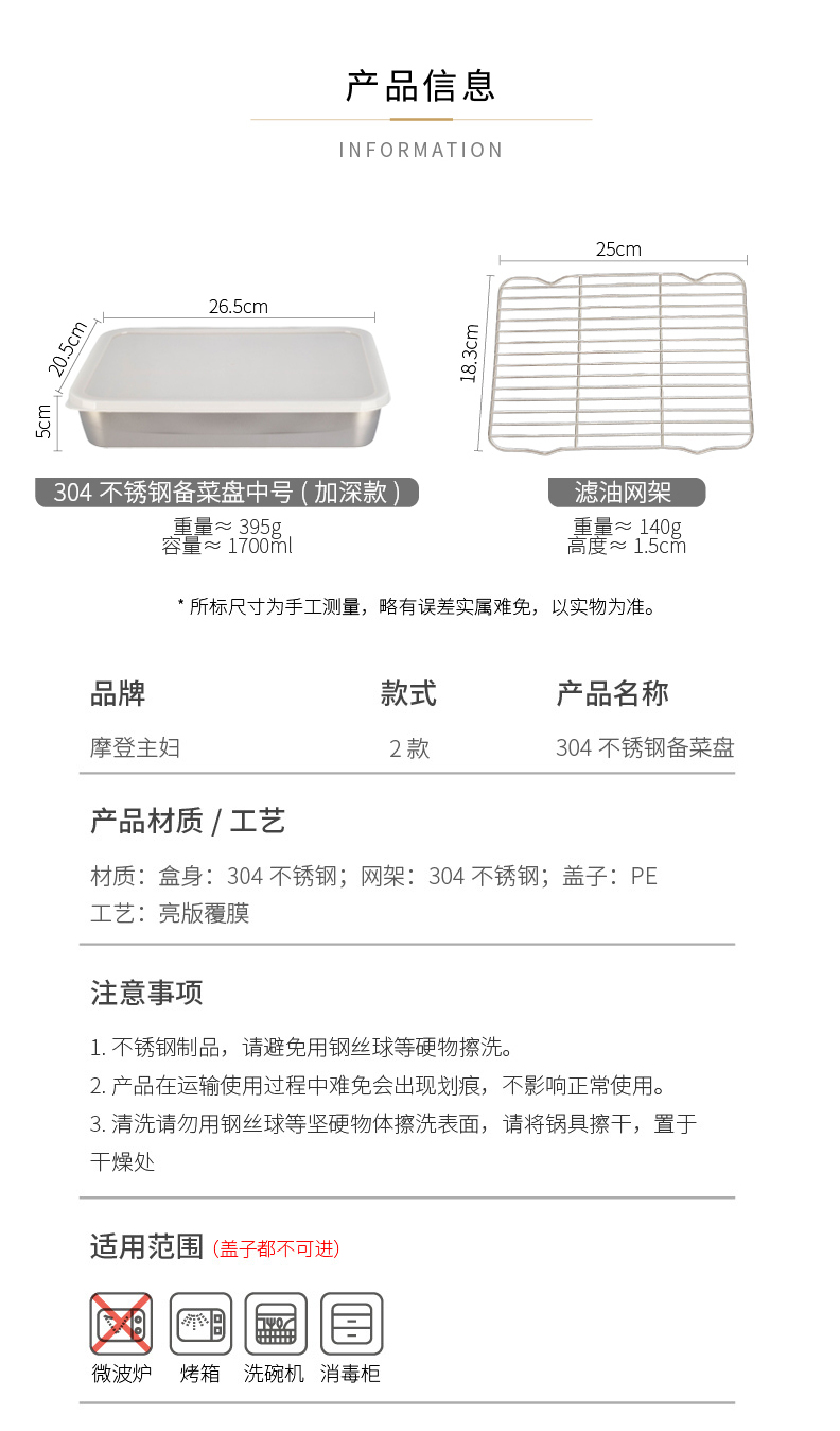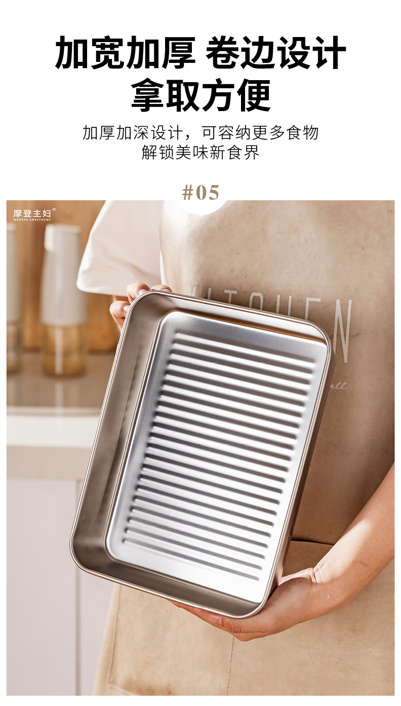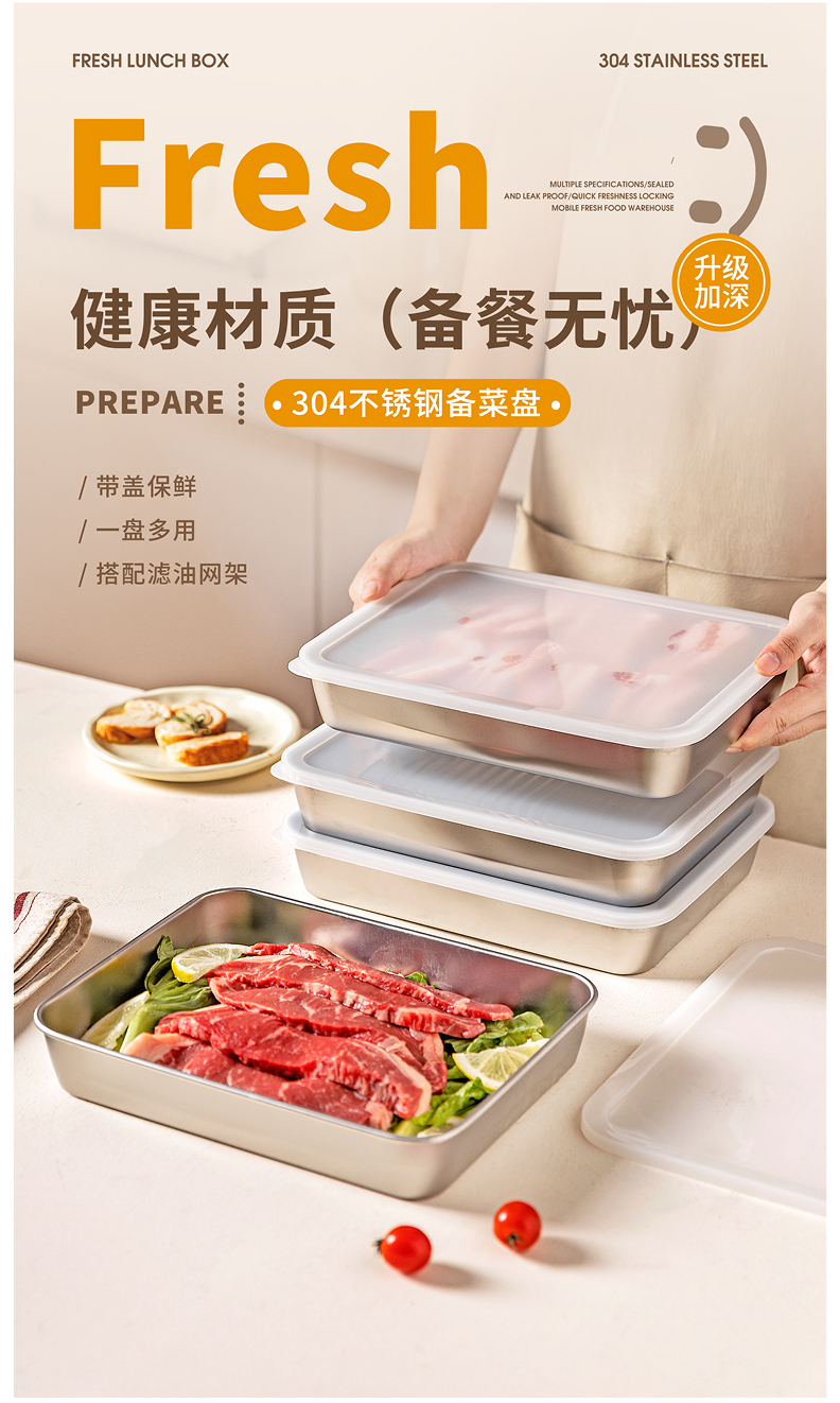 摩登主妇不锈钢备菜盘保鲜盒长方形盘子家用餐具托盘火锅配菜餐盘