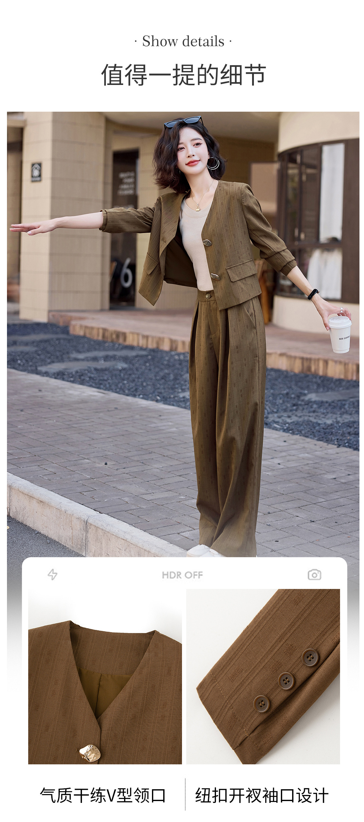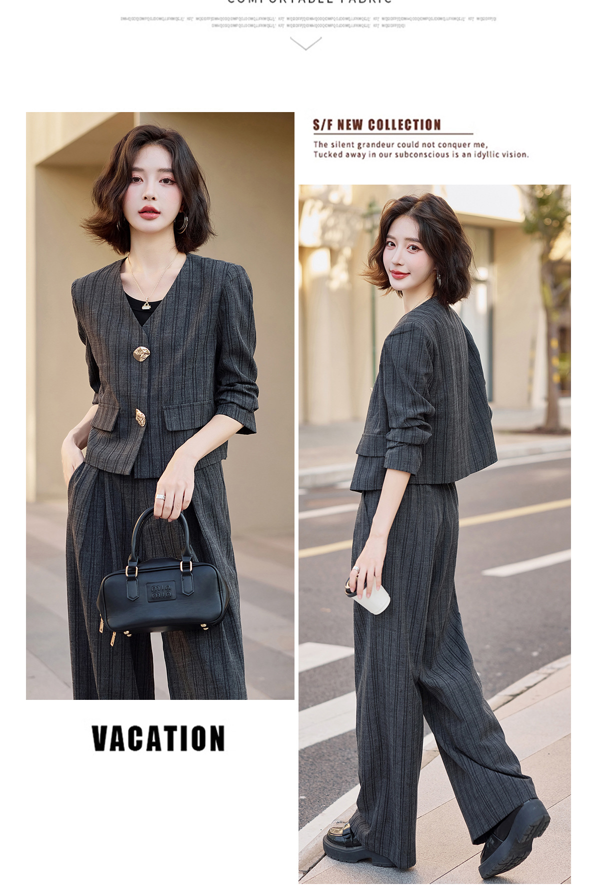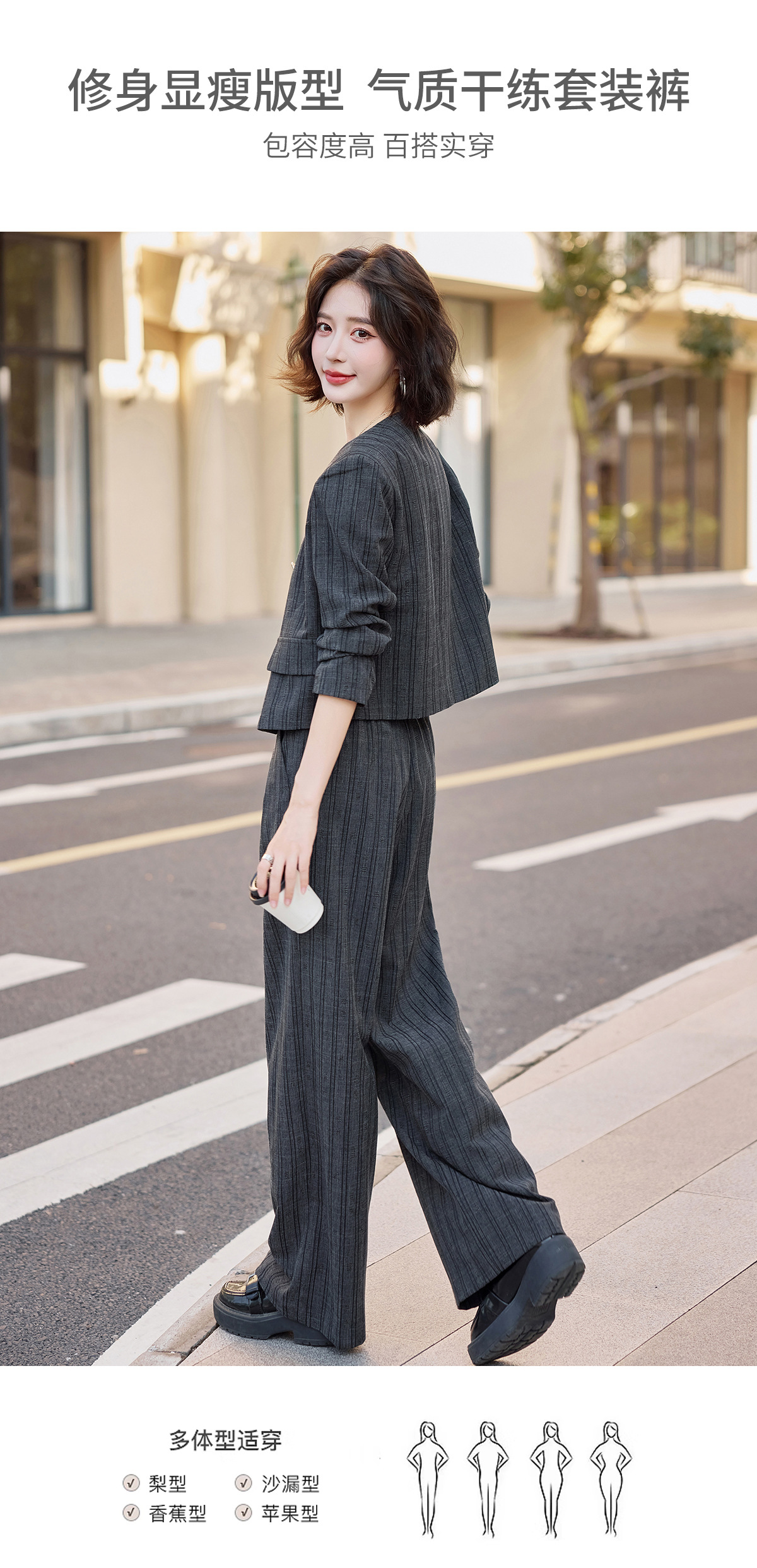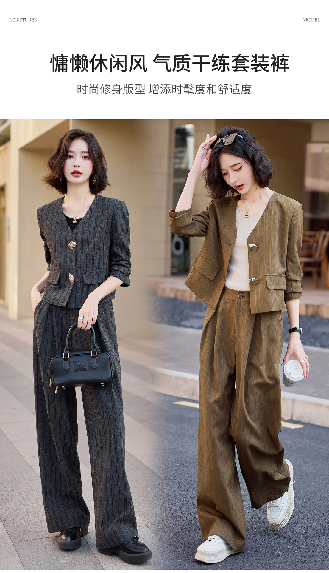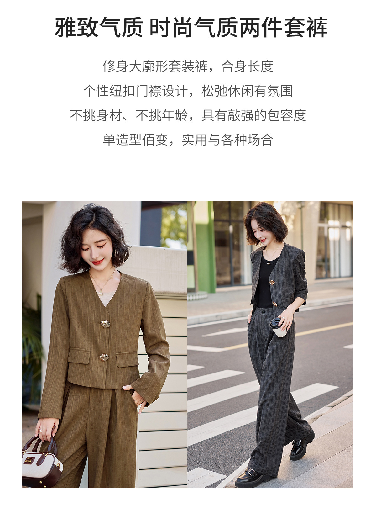 气质简约高级套装裤潮,洋气减龄显瘦职业两件套HR-ZYQQ2