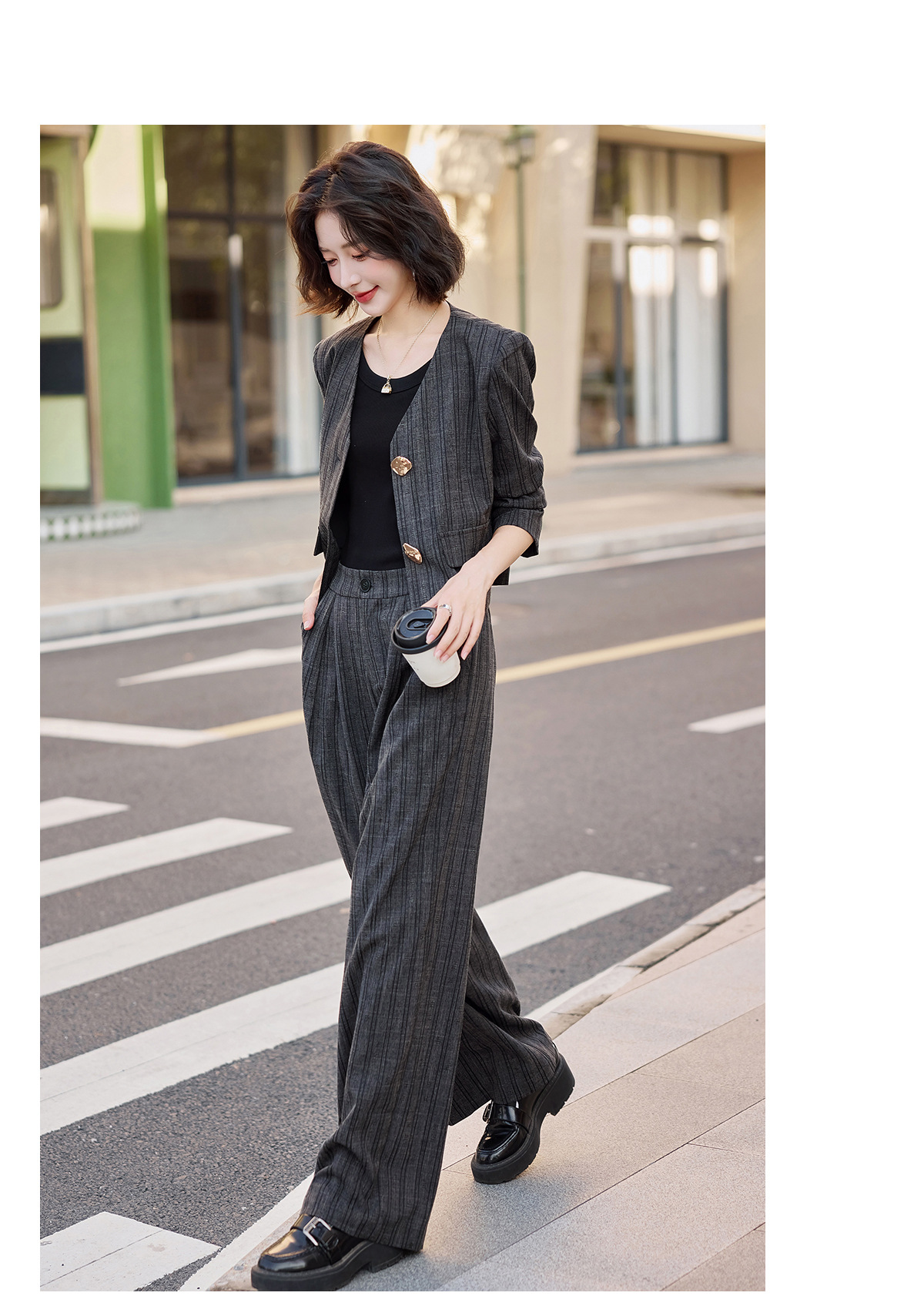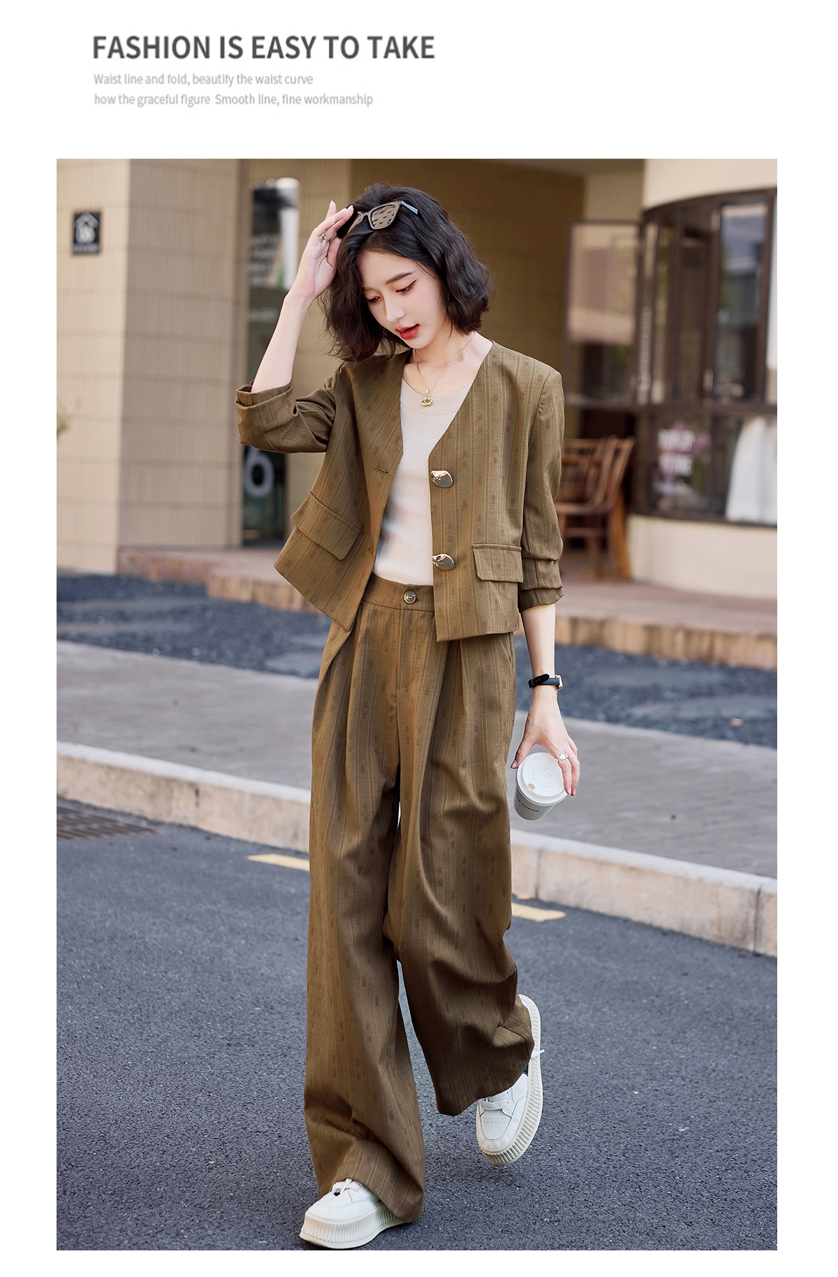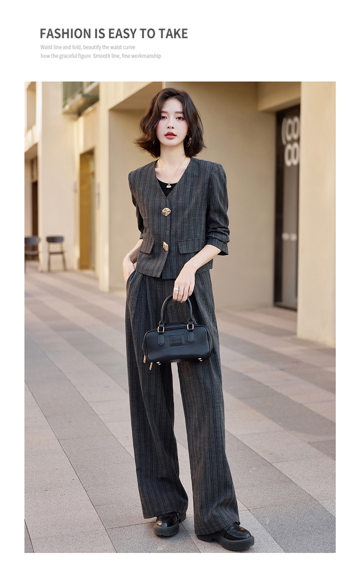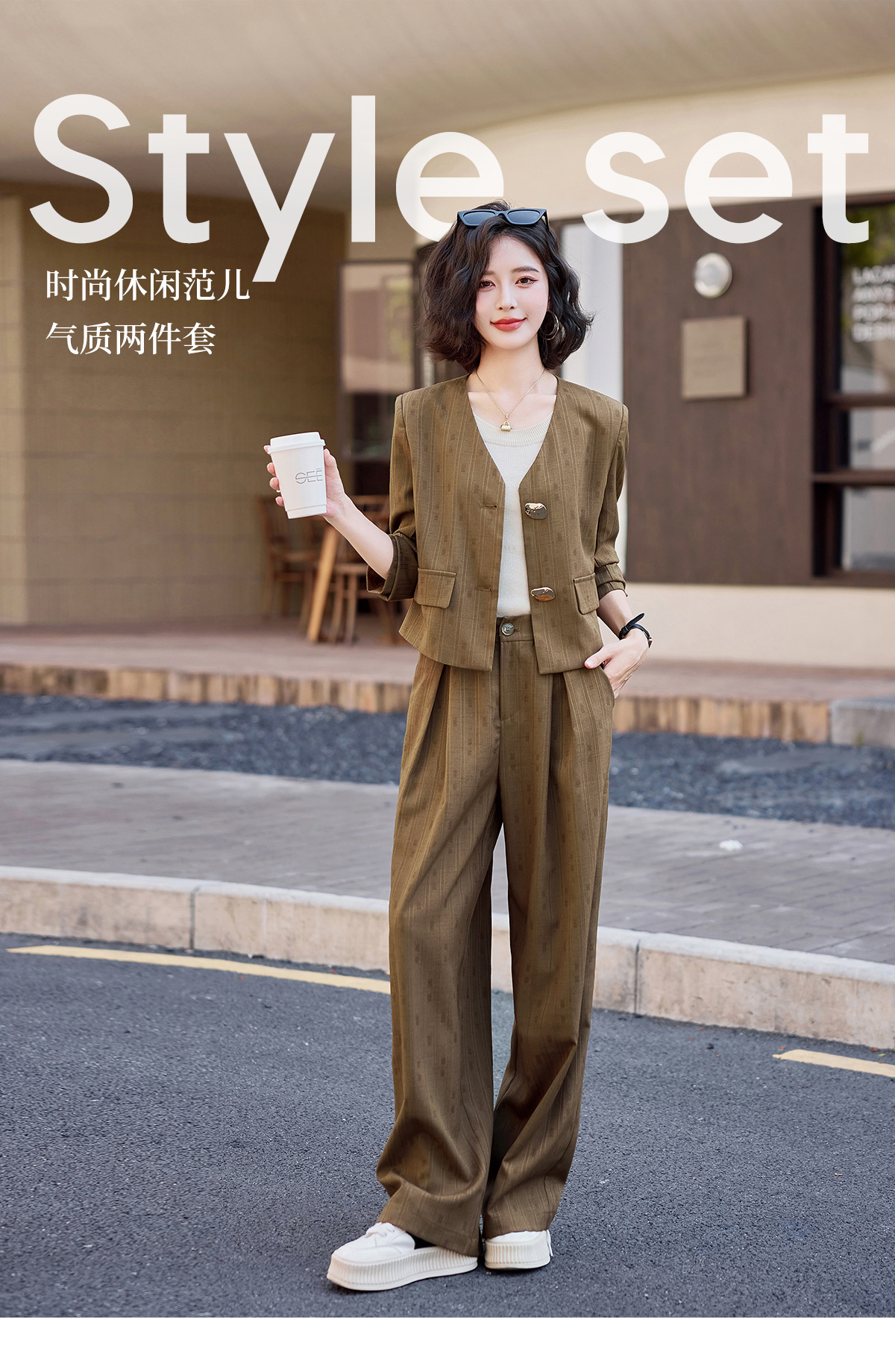 气质简约高级套装裤潮,洋气减龄显瘦职业两件套HR-ZYQQ2