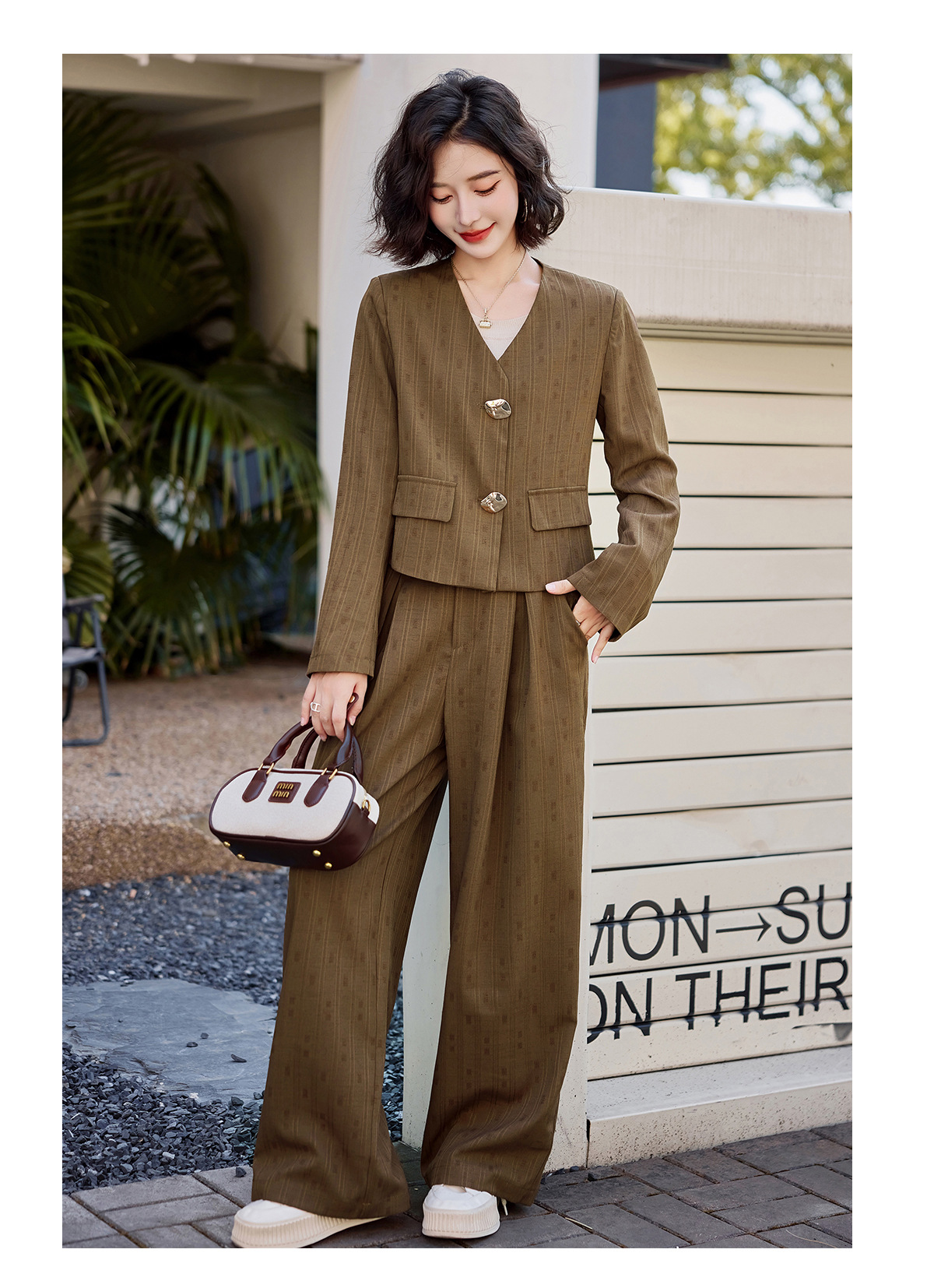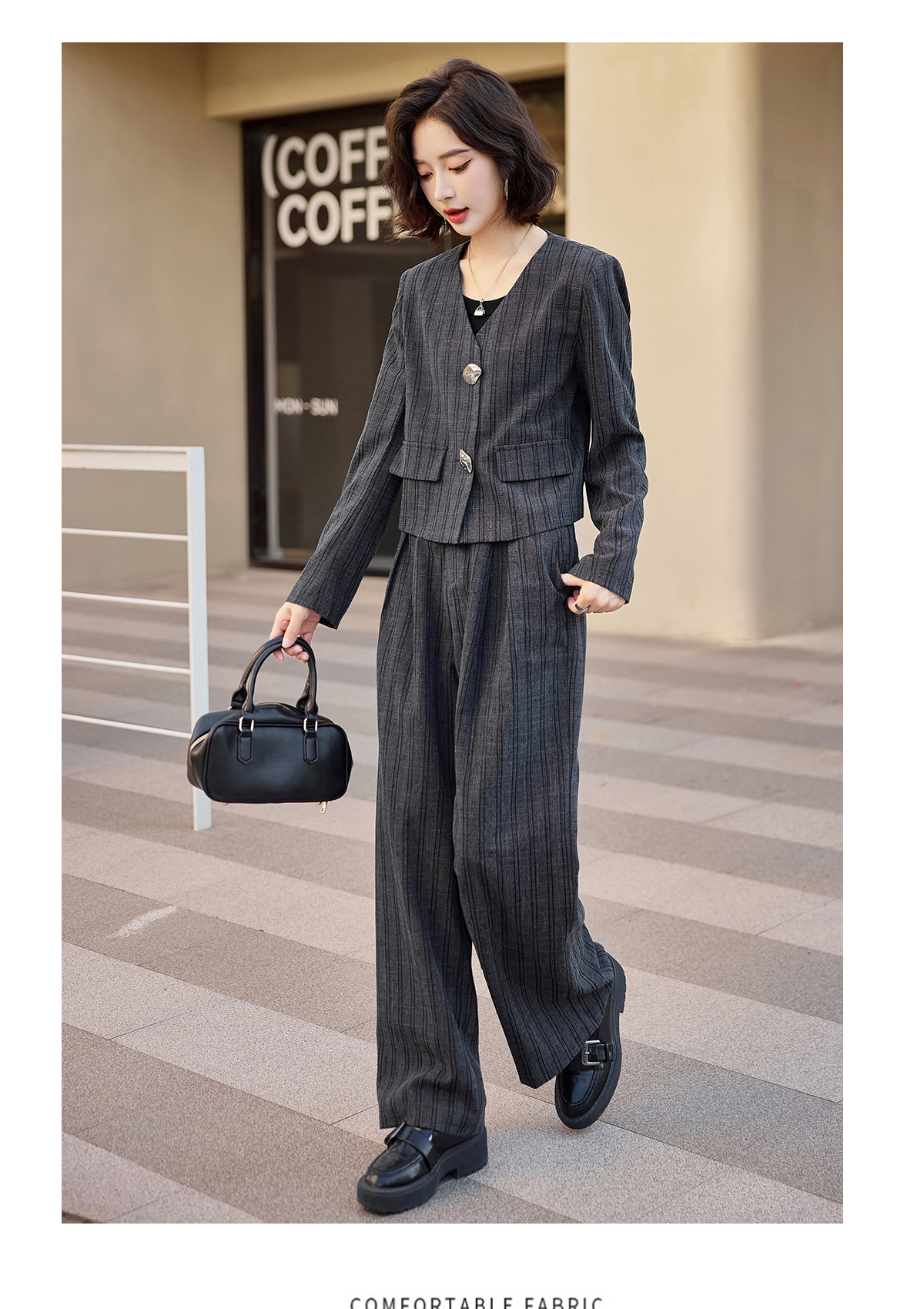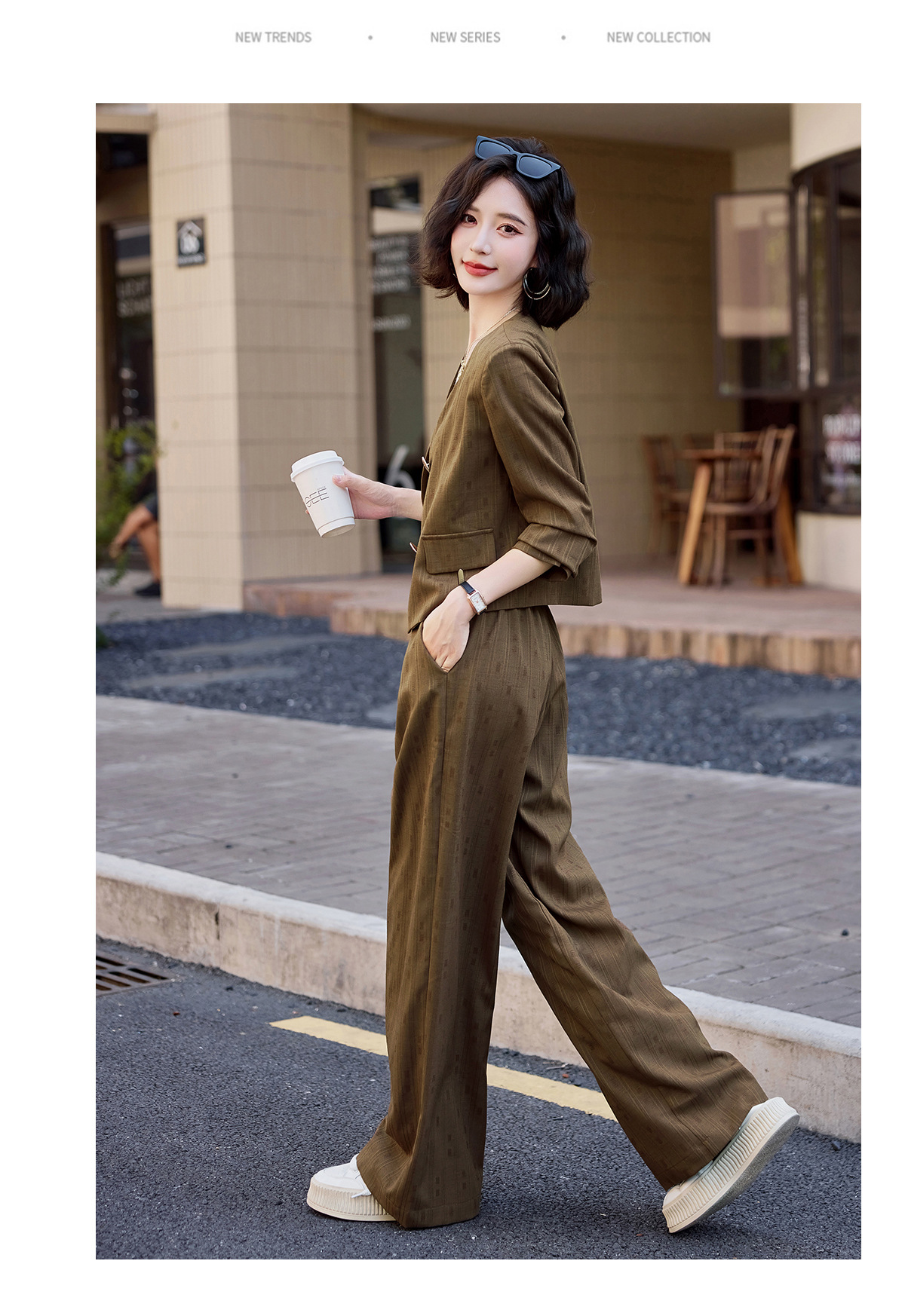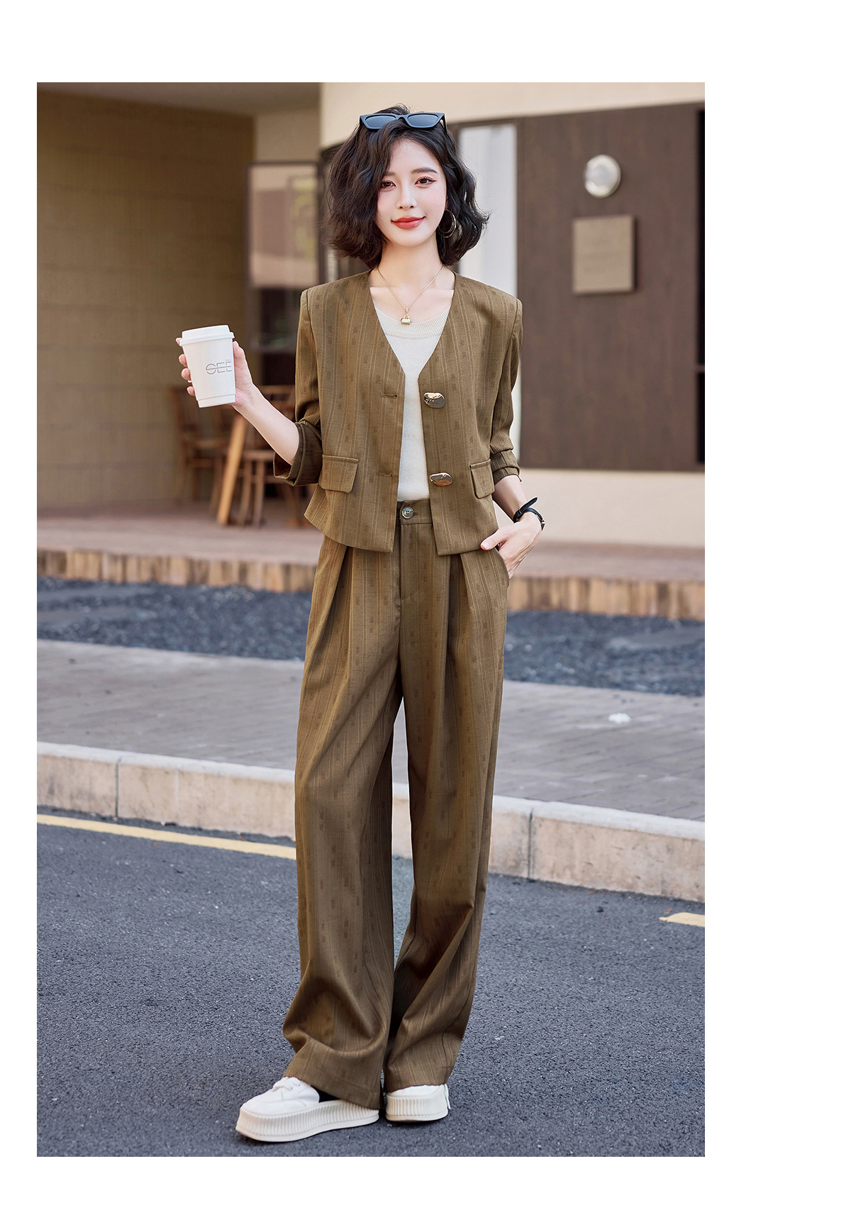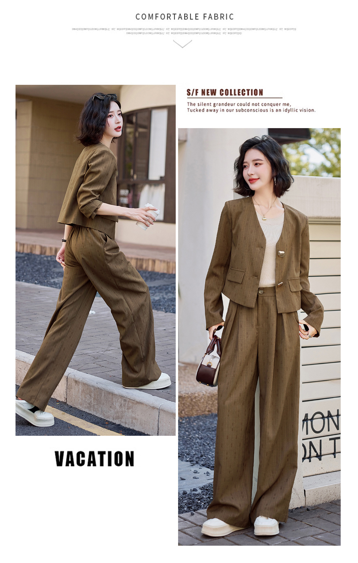 气质简约高级套装裤潮,洋气减龄显瘦职业两件套HR-ZYQQ2