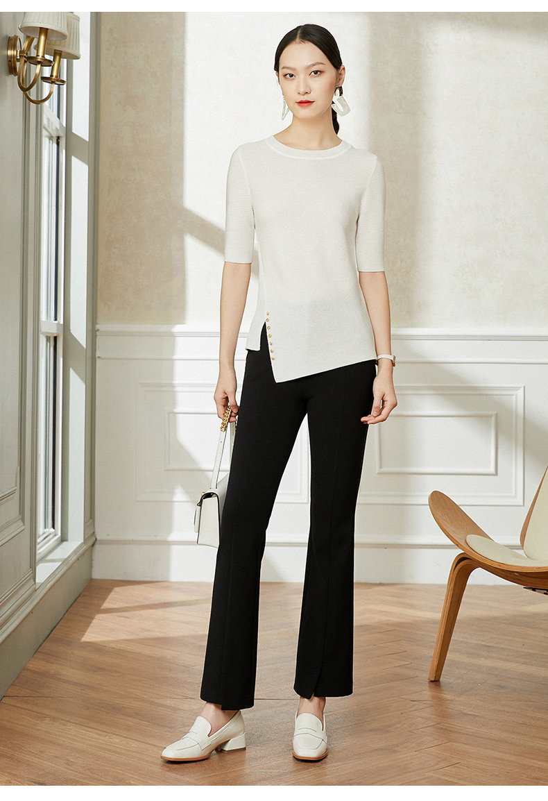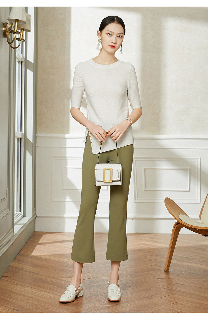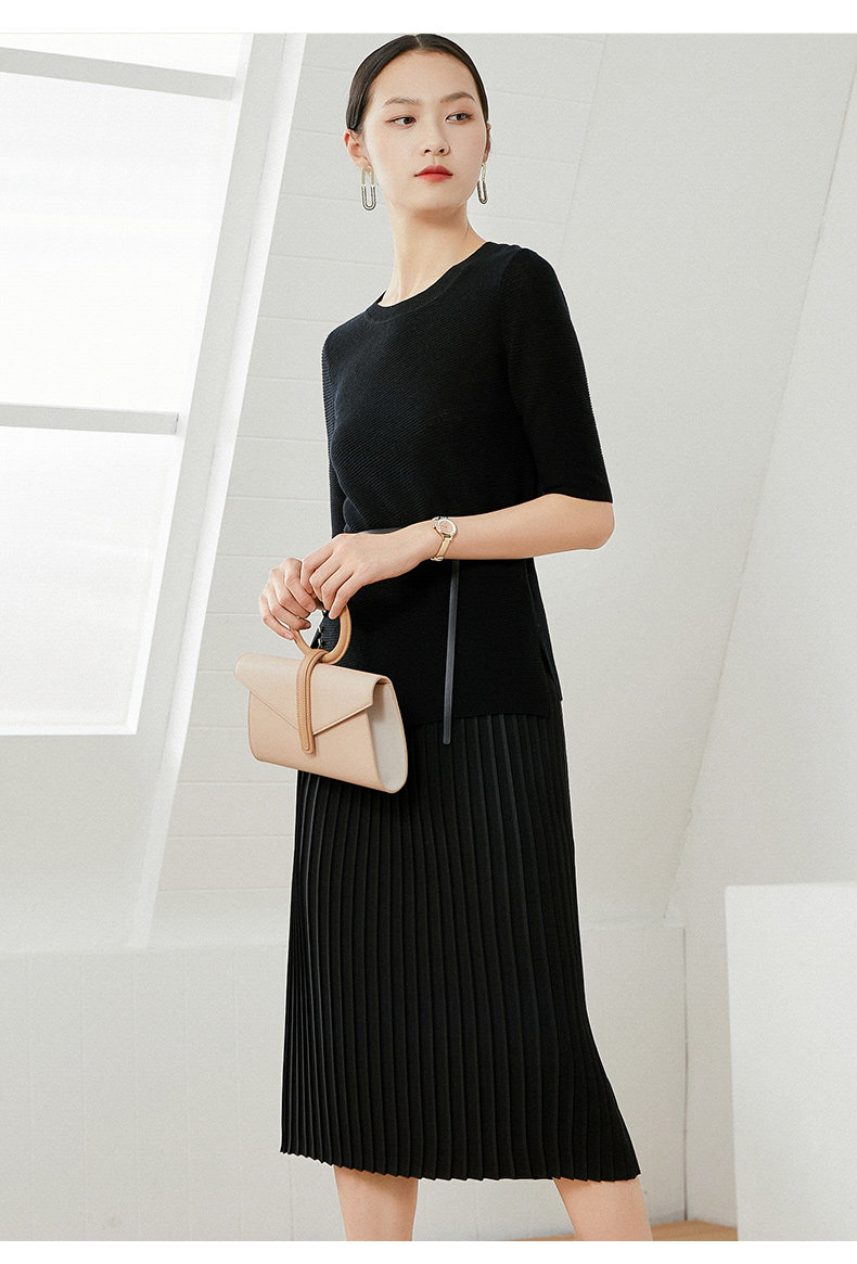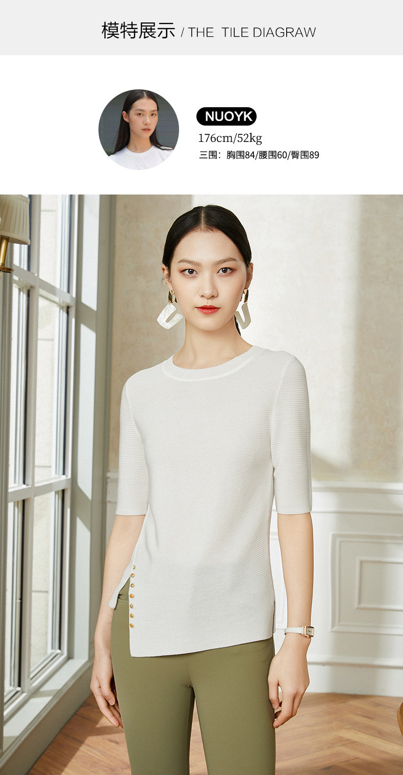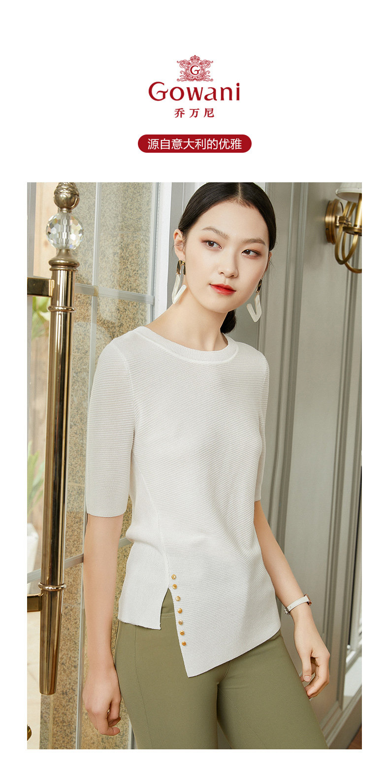 【两色可选】乔万尼冰丝打底针织衫女薄款小香风设计感圆领夏款中袖EI2M812