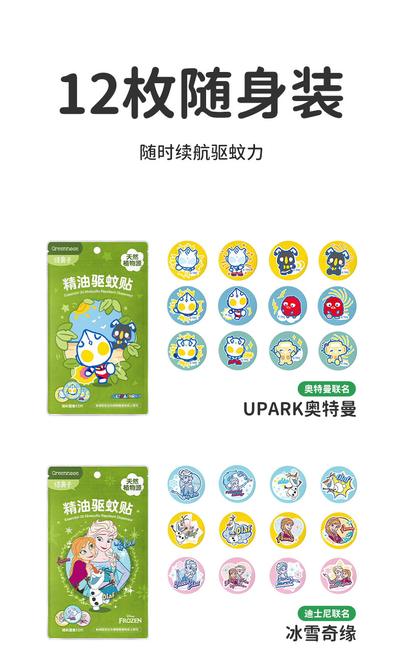 绿鼻子 迪士尼爱莎驱蚊贴户外夏季蚊子叮咬驱蚊防蚊