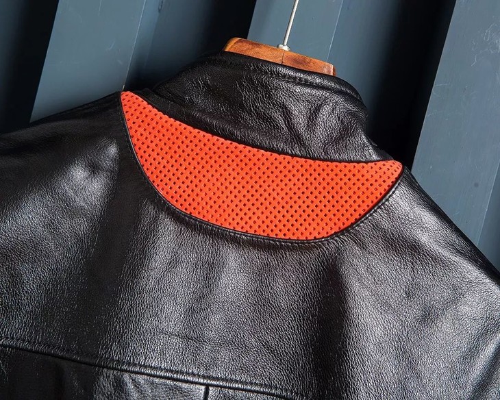 内里口袋,后领的镂空皮料用的也全部都是头层牛皮